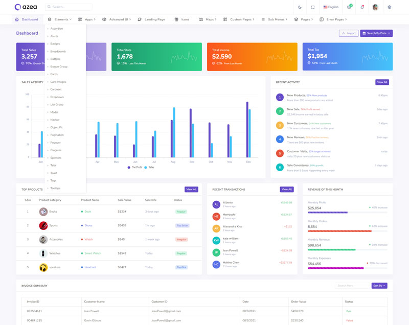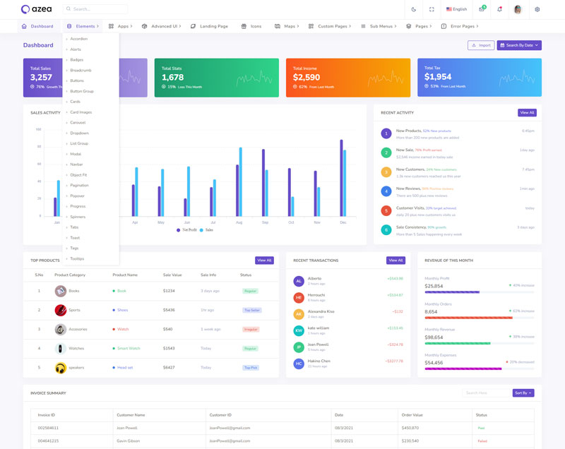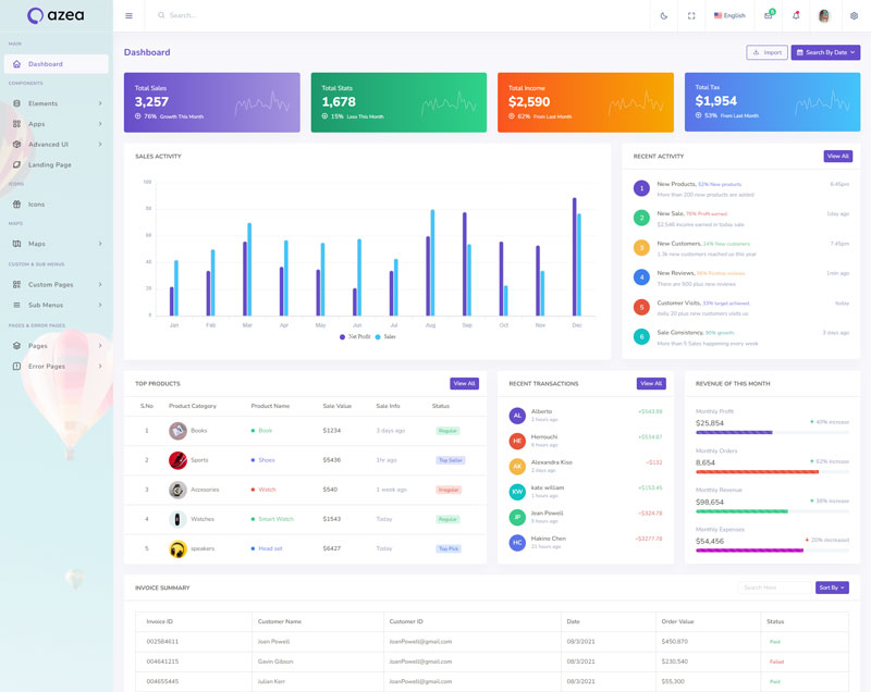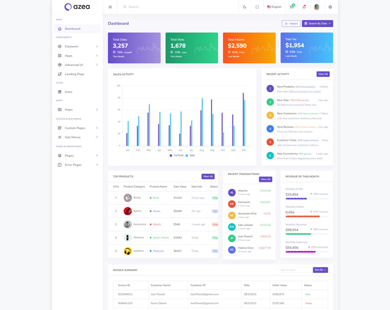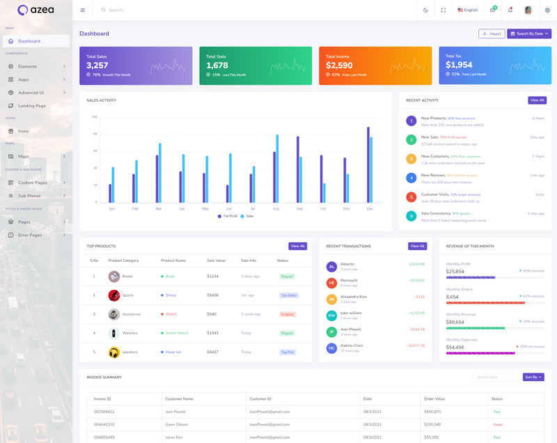 Azea Admin Template Main Features