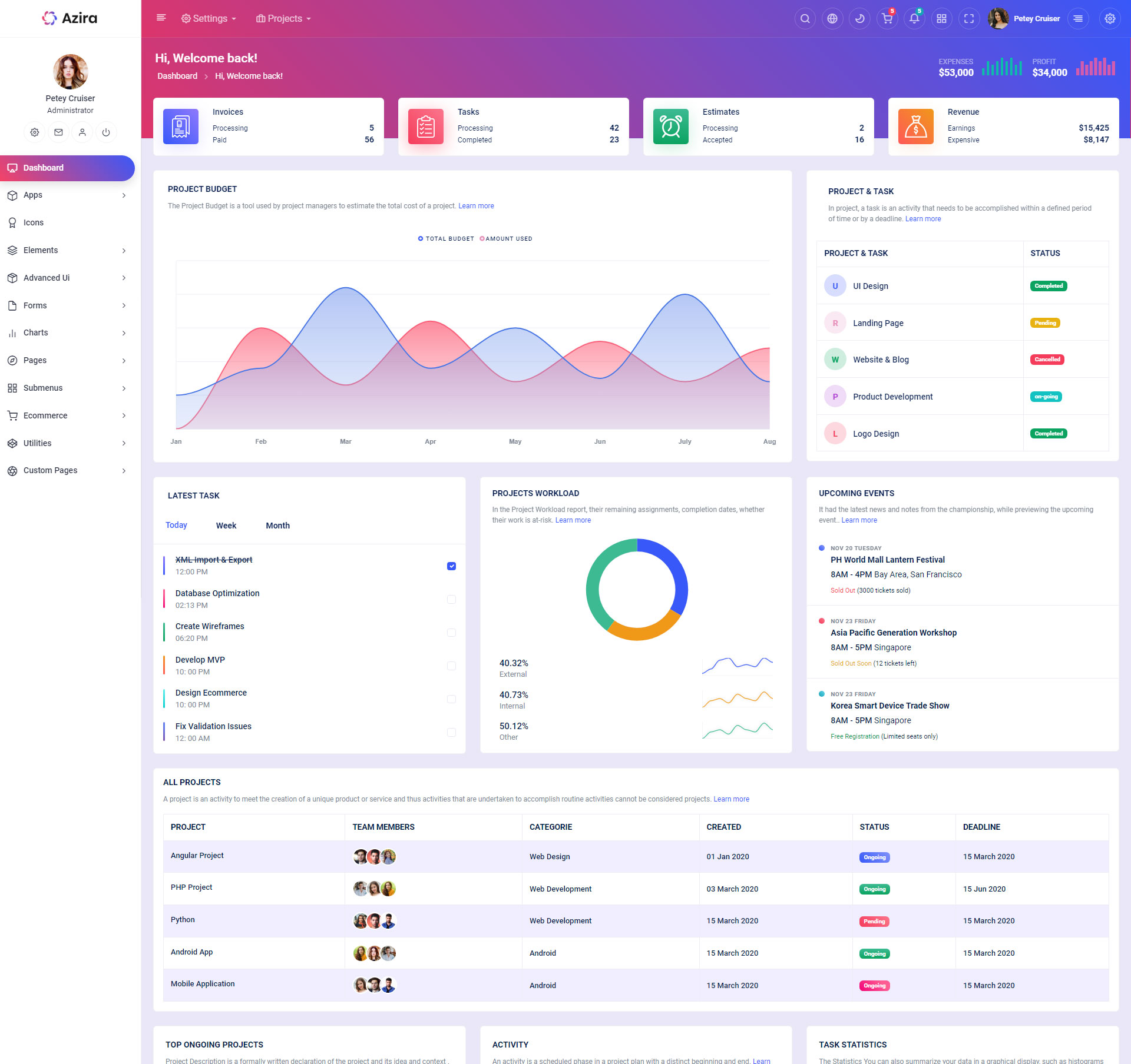 Azira React Javascript Admin Template Main Features
