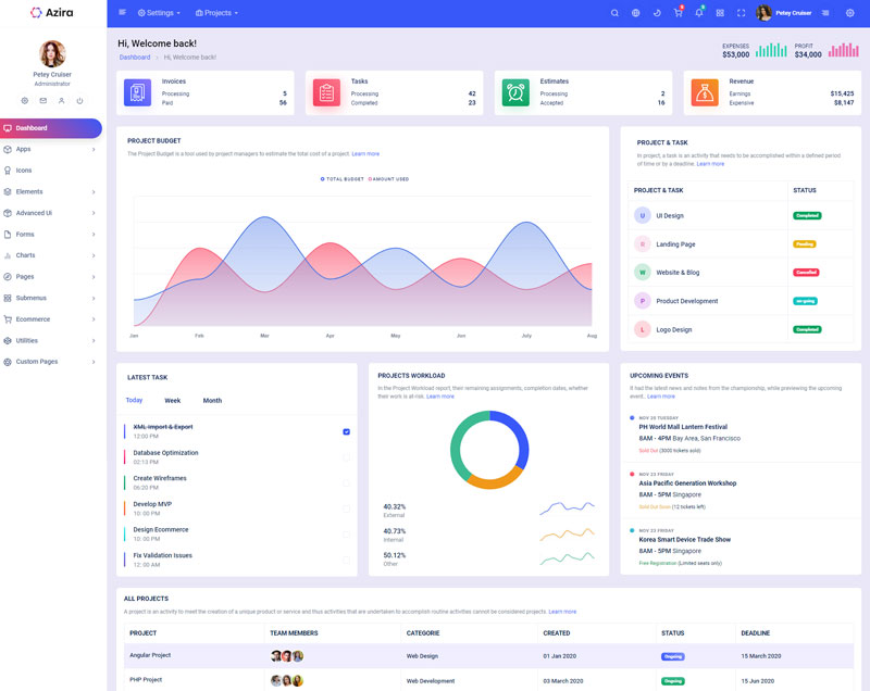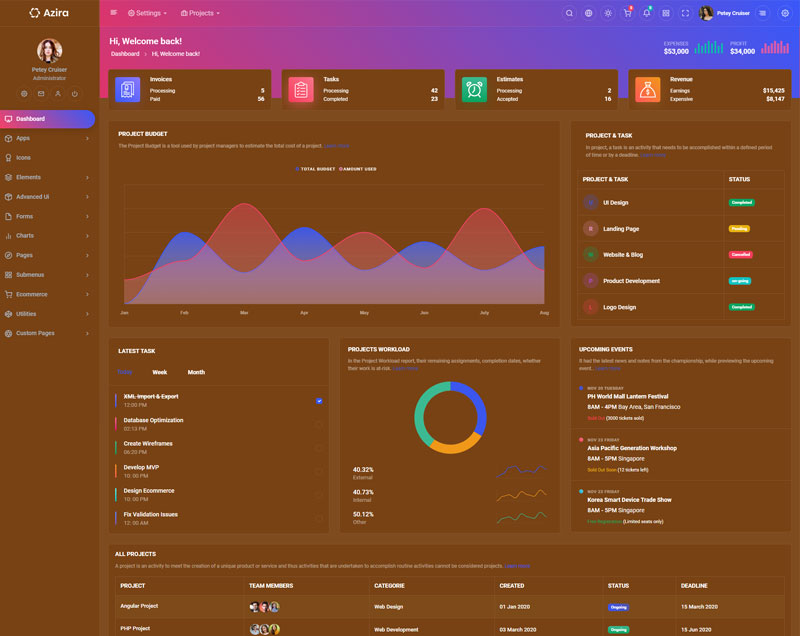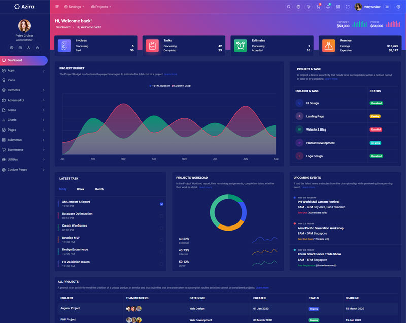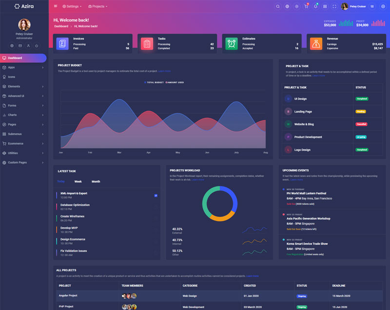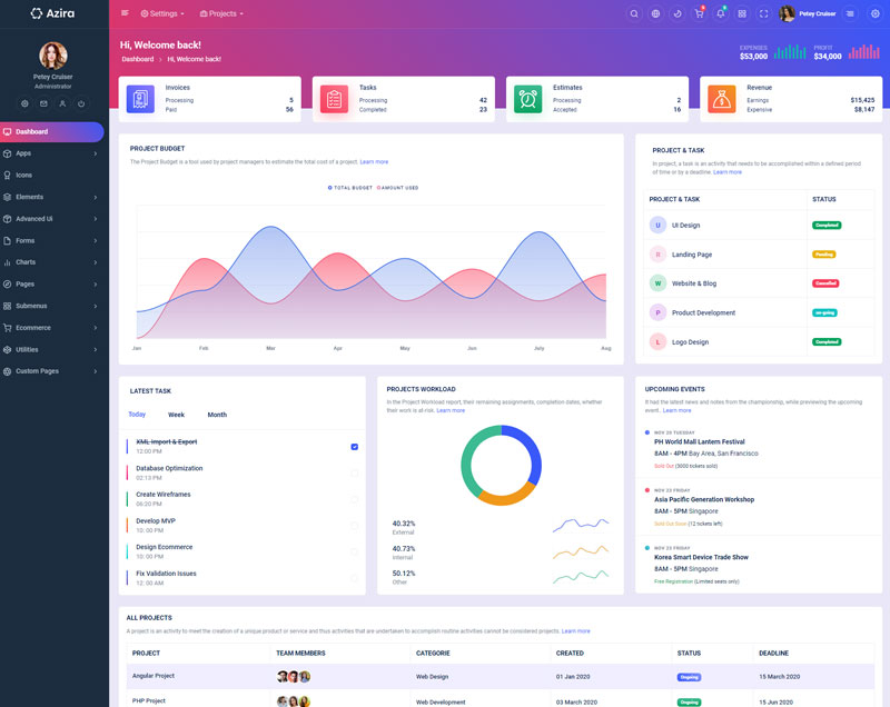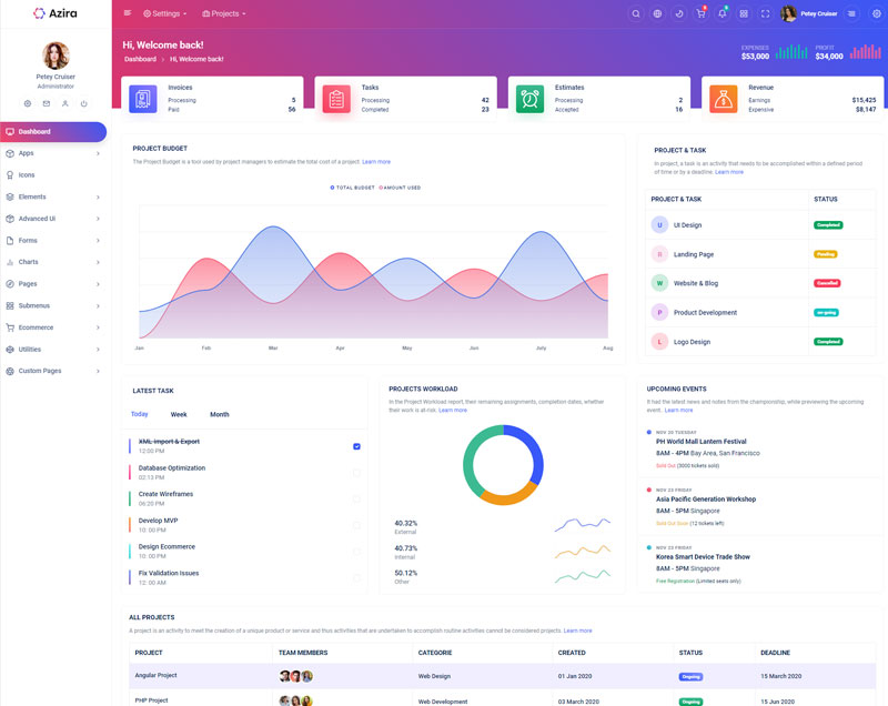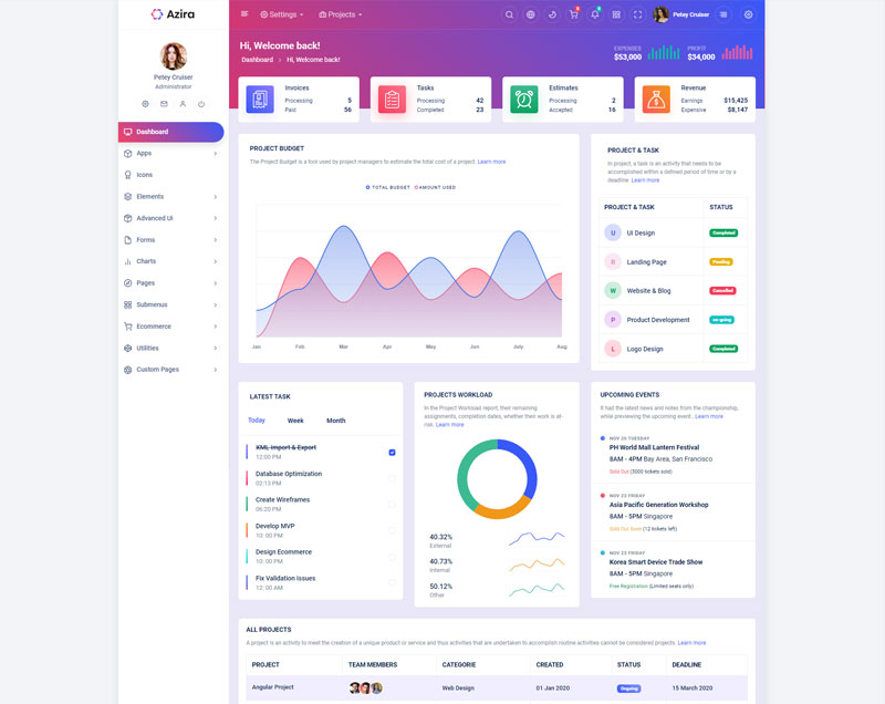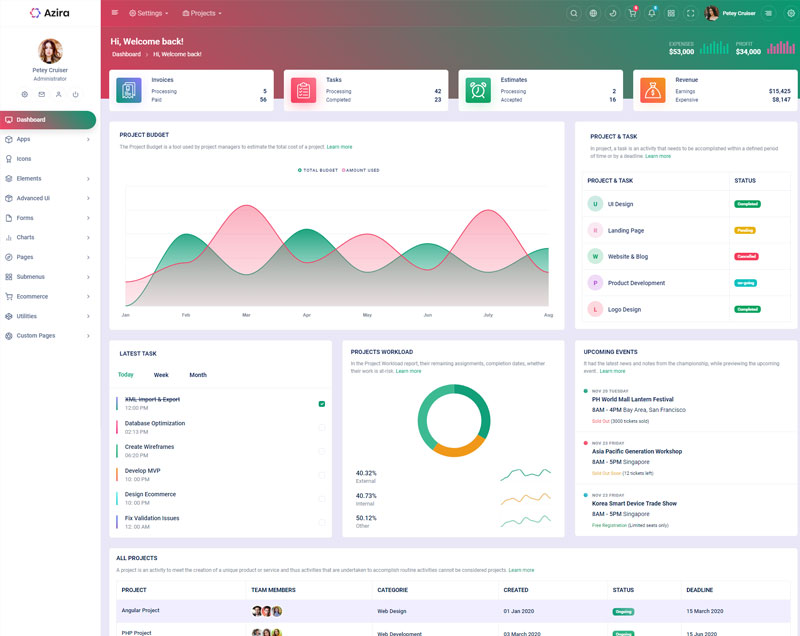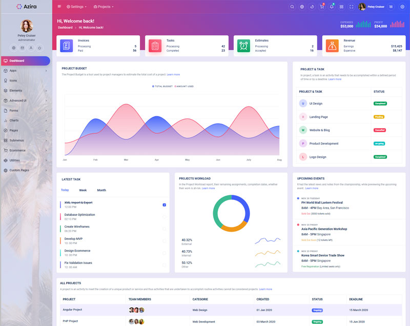Have a look at the numerous versions we integrated in Azira React Javascript admin and dashboard template,where you can customize theme in unlimited ways.