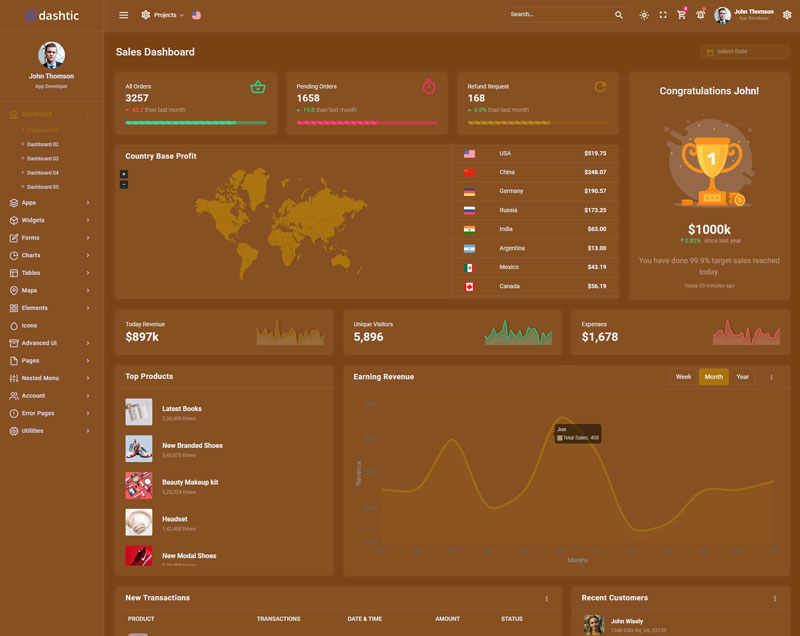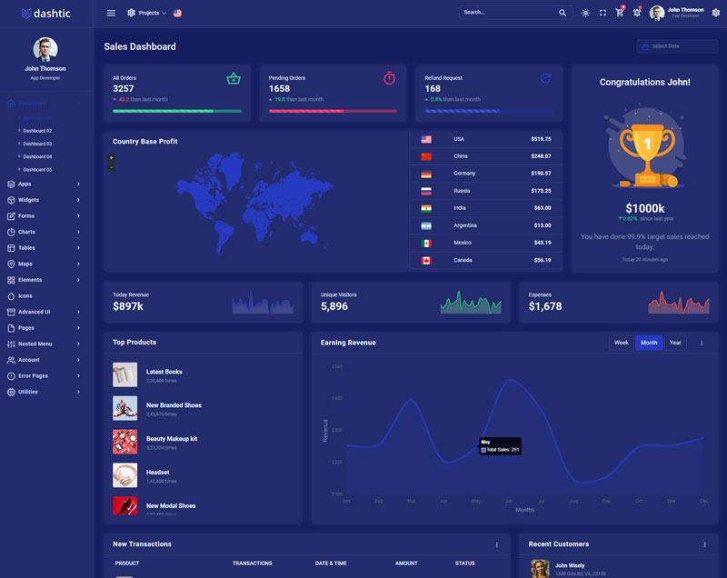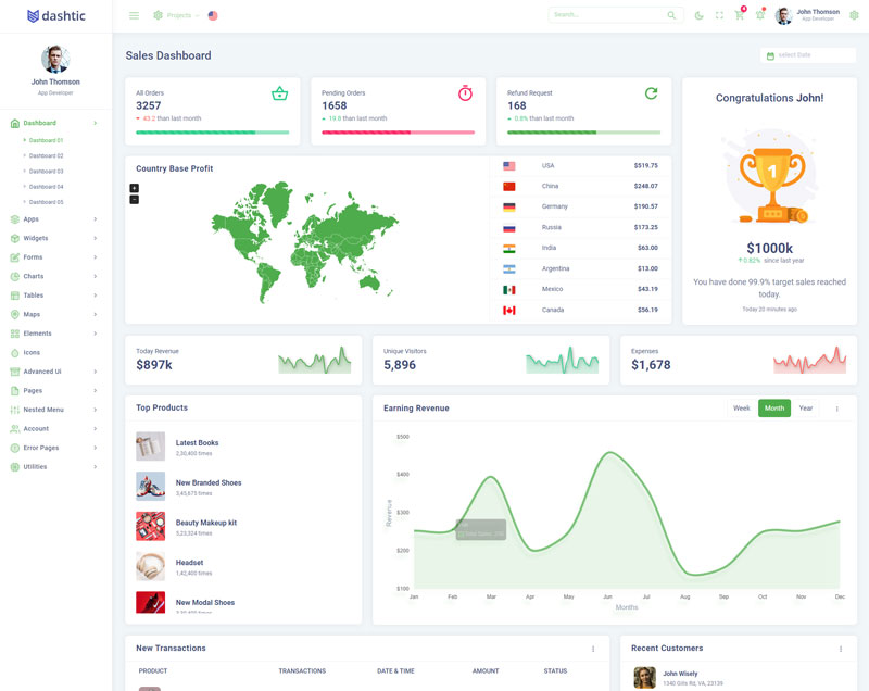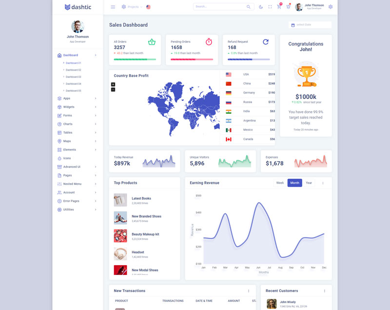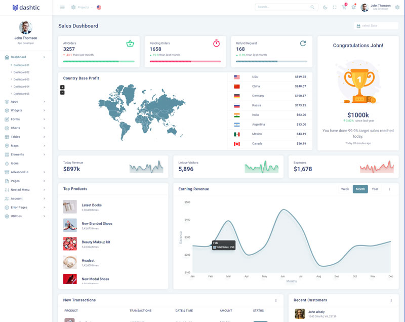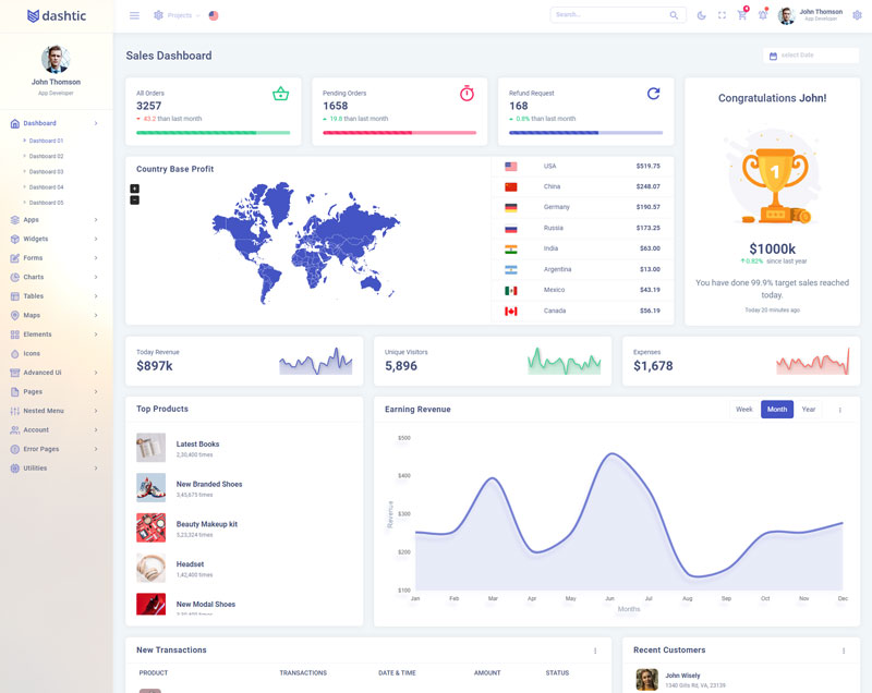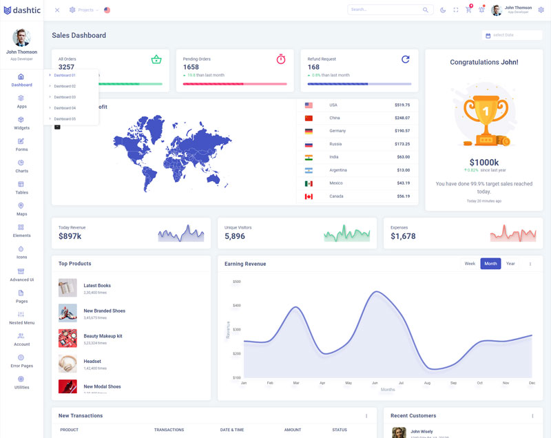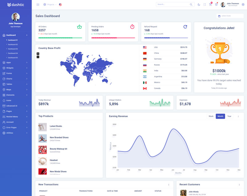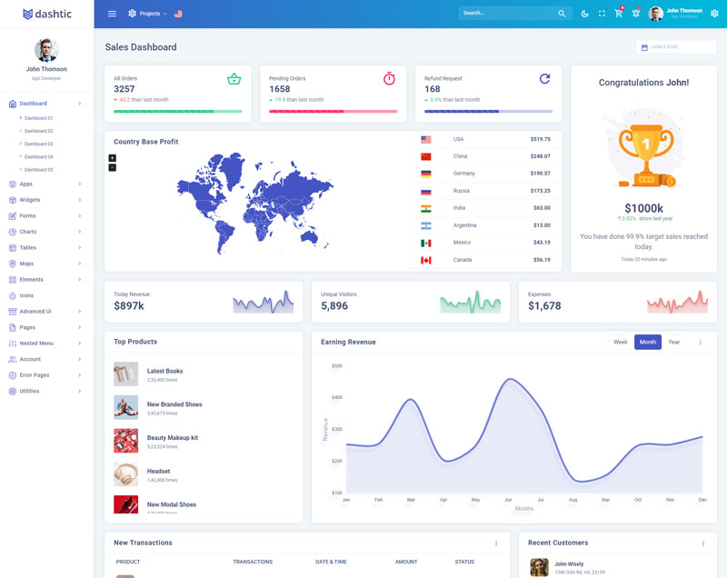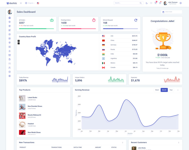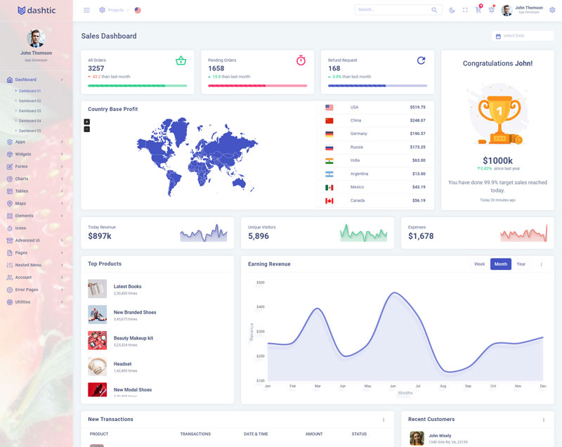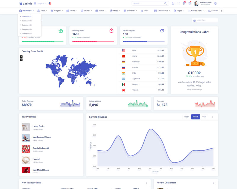 Dashtic admin template comes with of ready to use feature. It has lots of premade functionality which completely ready for any projects