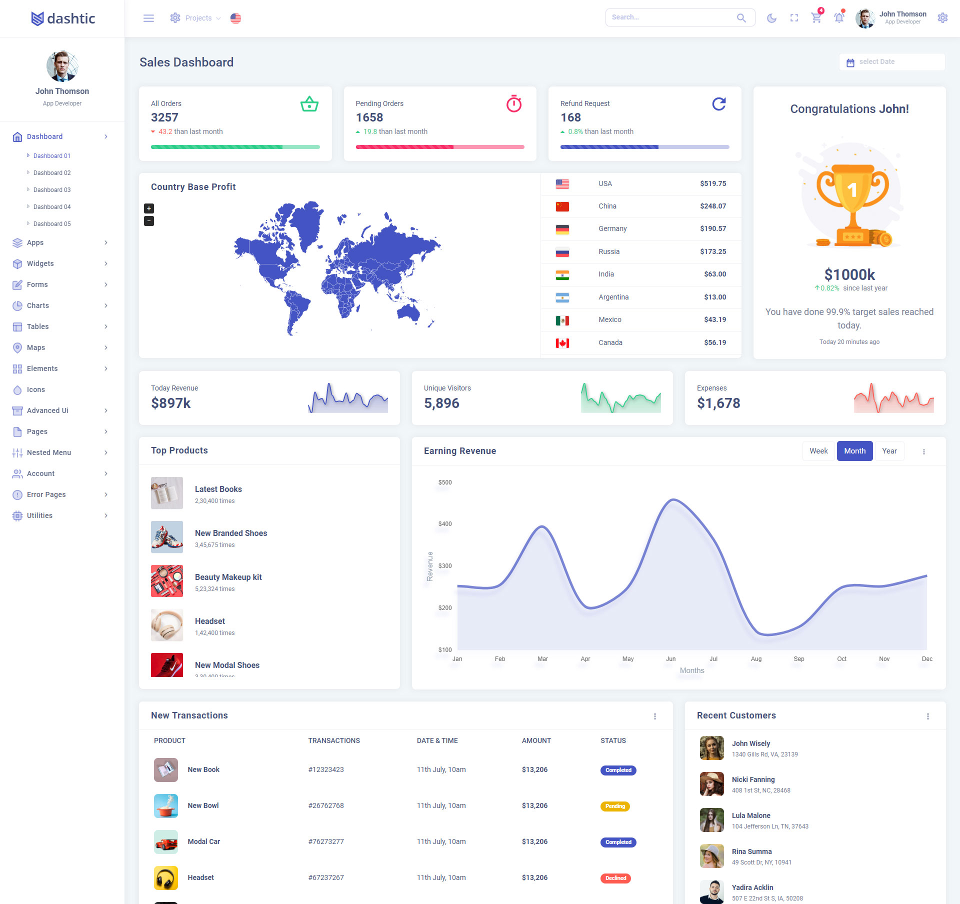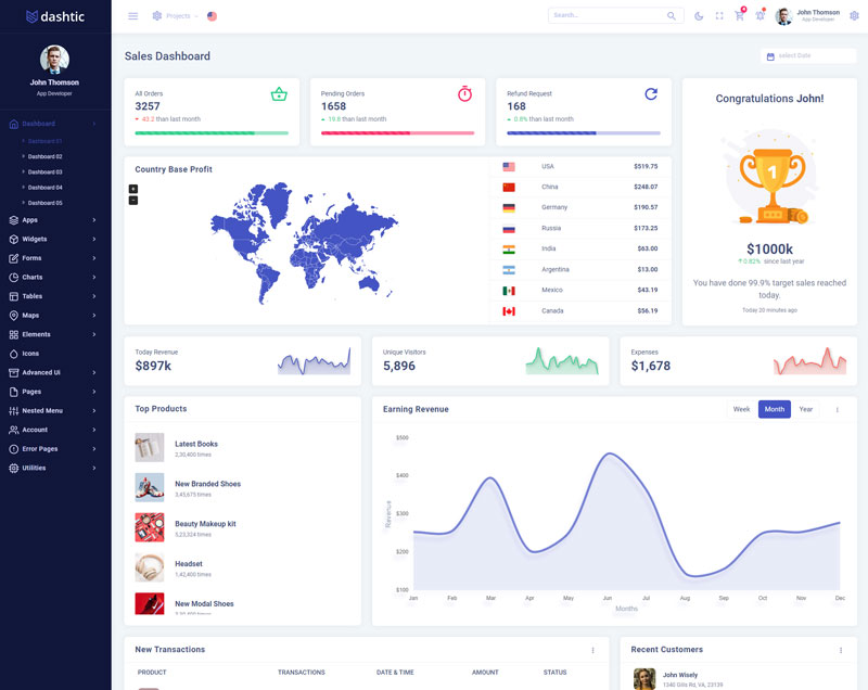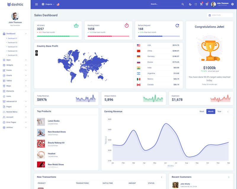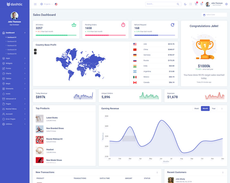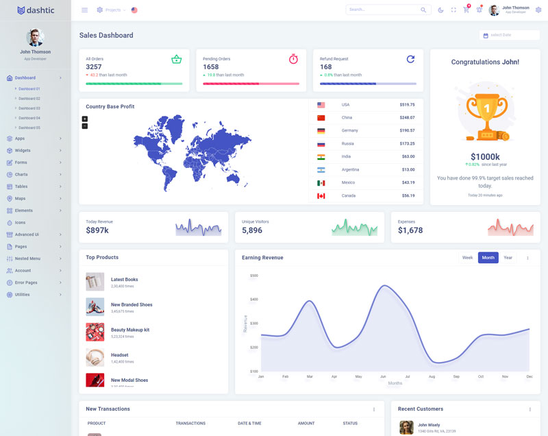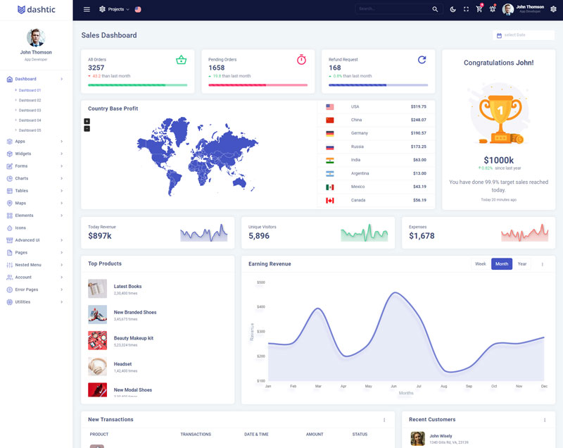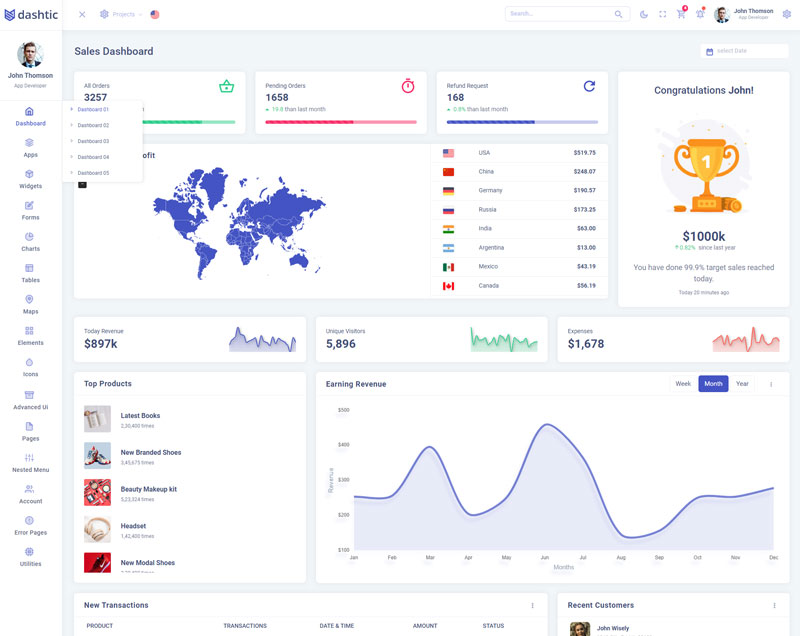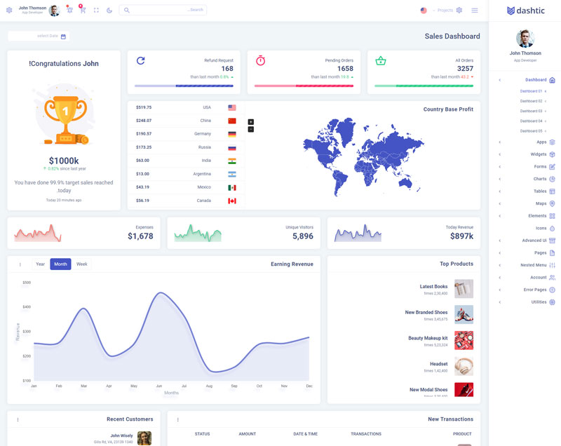 Dashtic Admin Template Main Features