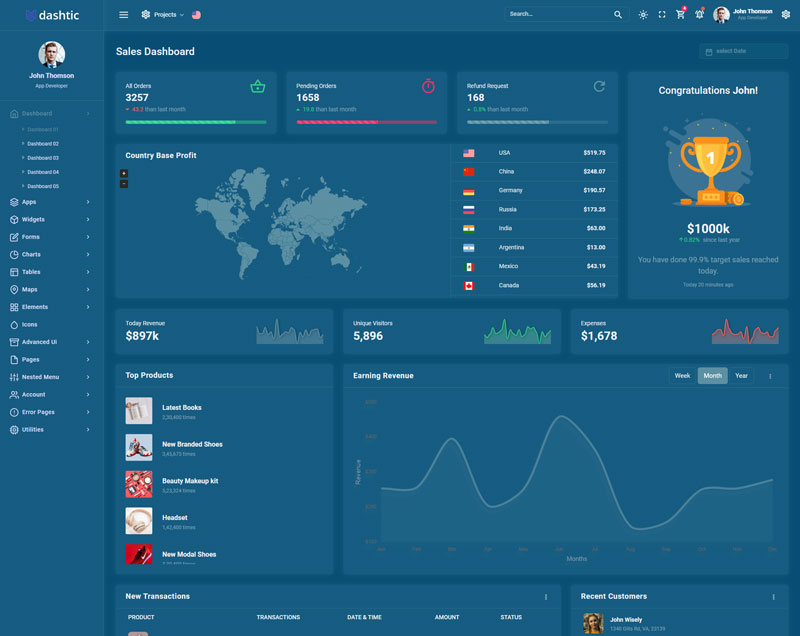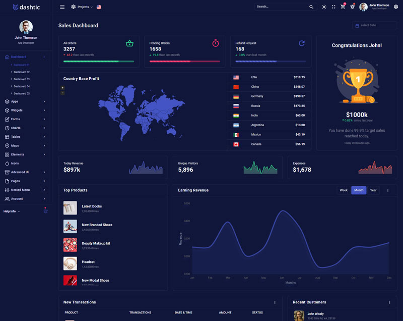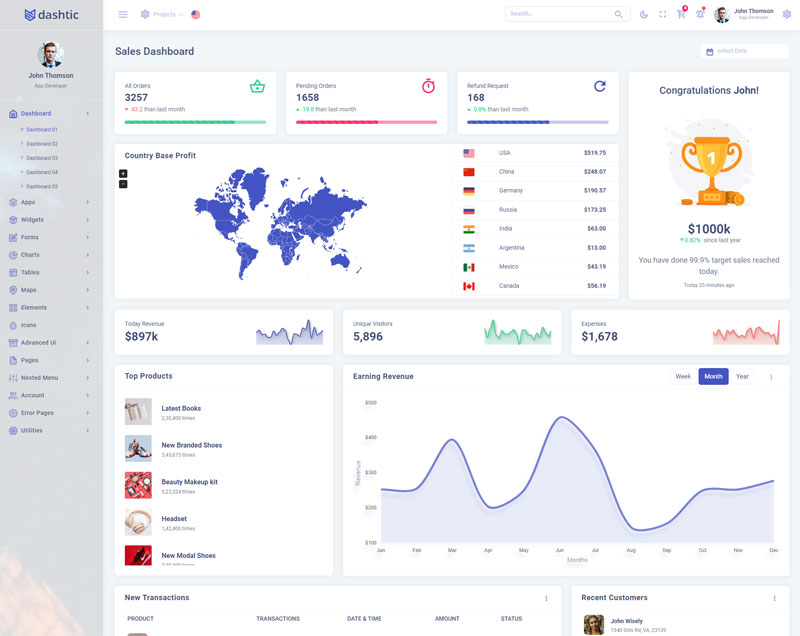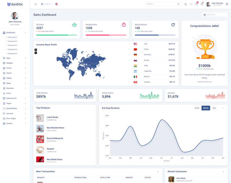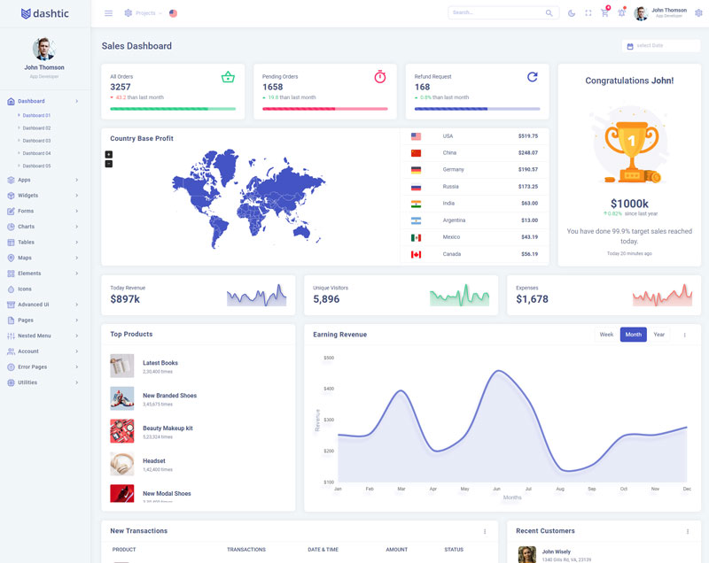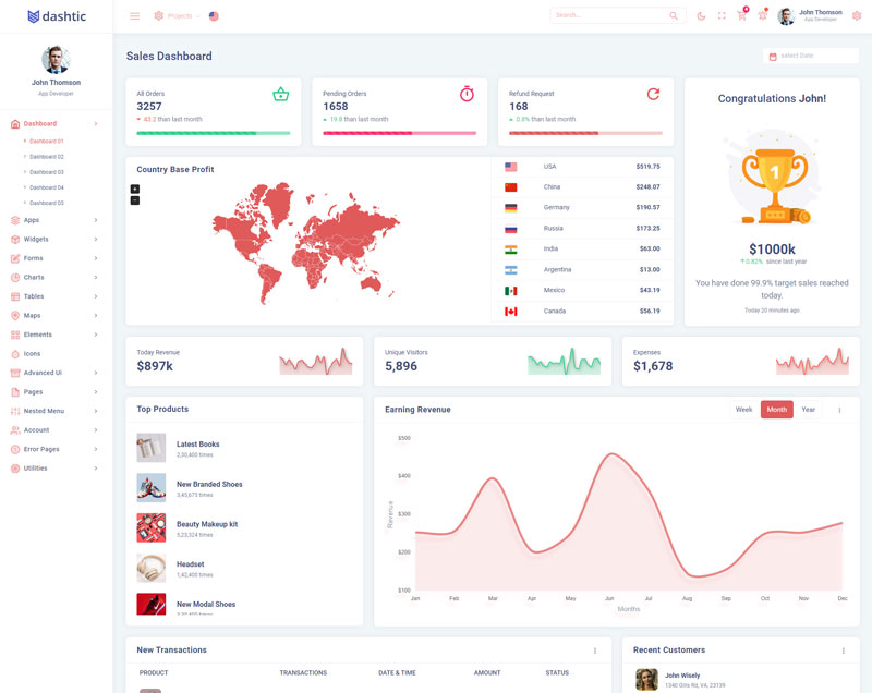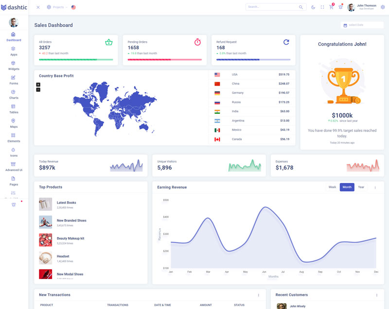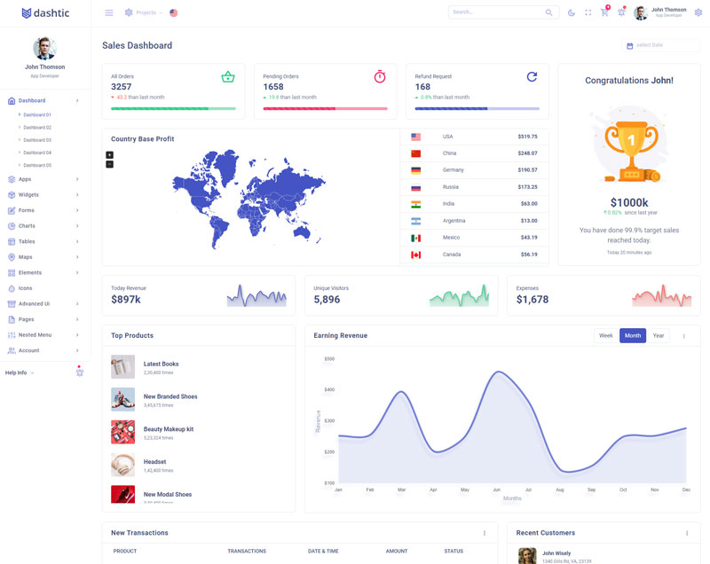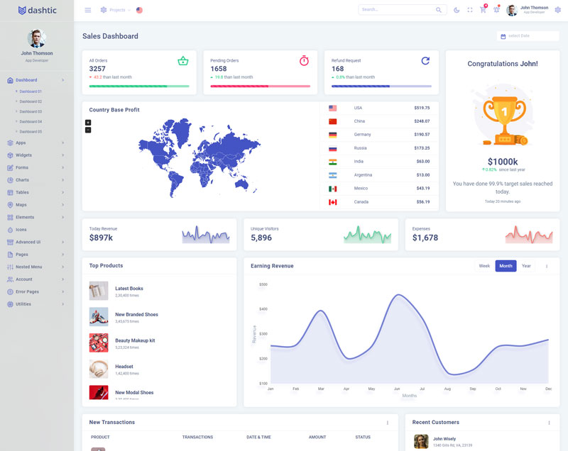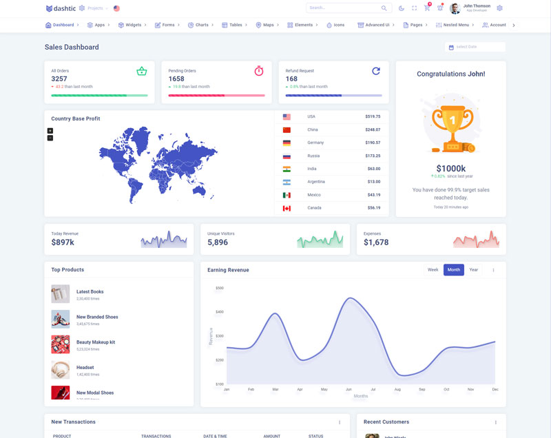 Dashtic admin template comes with of ready to use feature. It has lots of premade functionality which completely ready for any projects