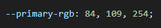 colorPrimary: "", // Default primary color (space-separated RGB values)
