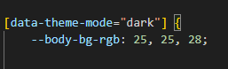 Also Change the following variable colors to the desired theme background accordingly in [data-theme-mode="dark"]