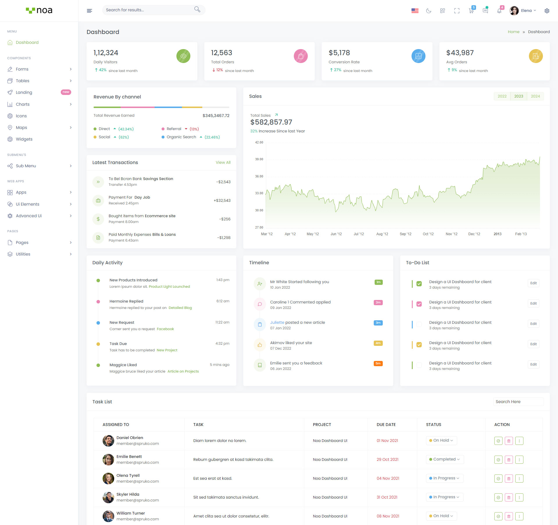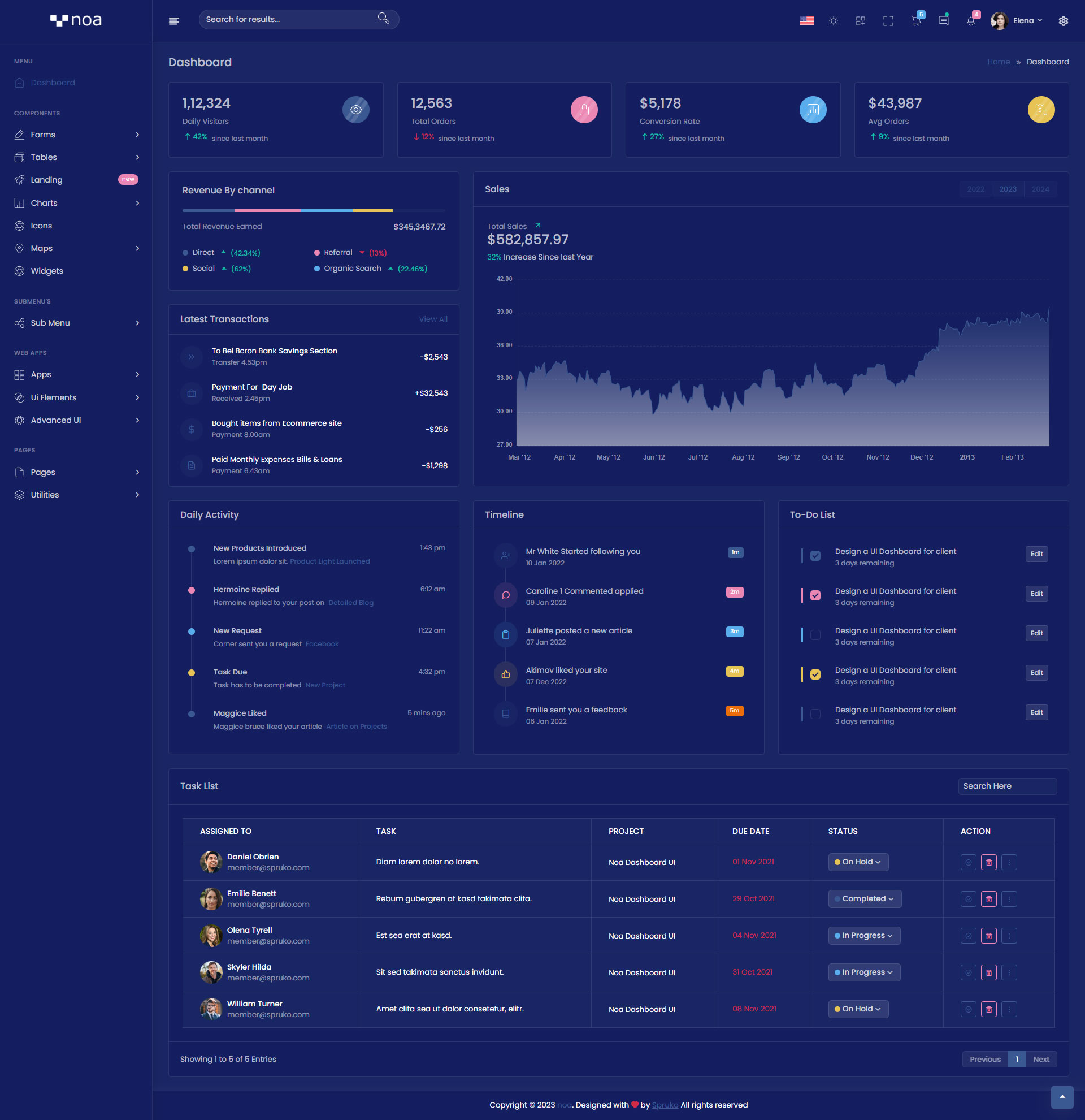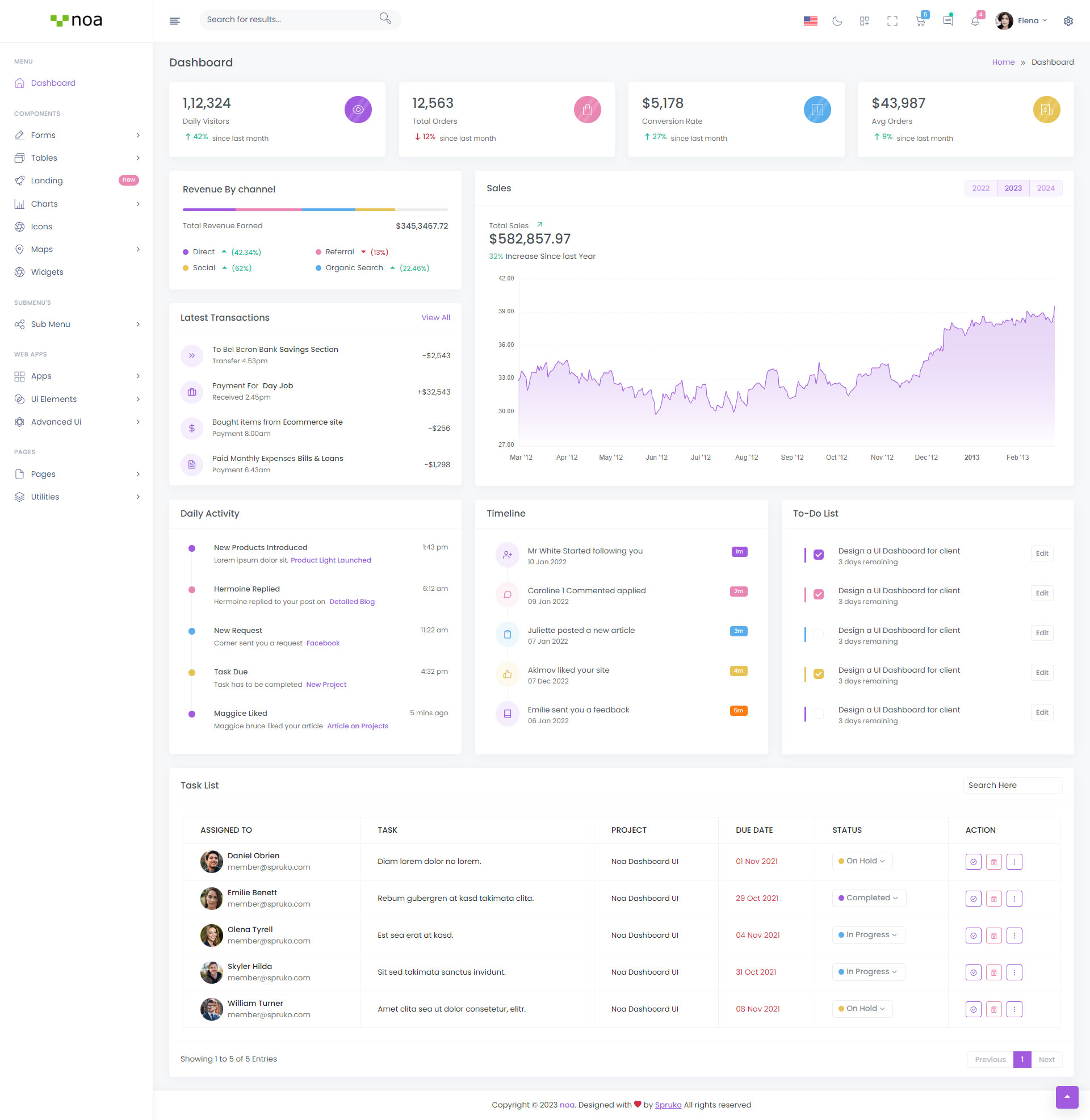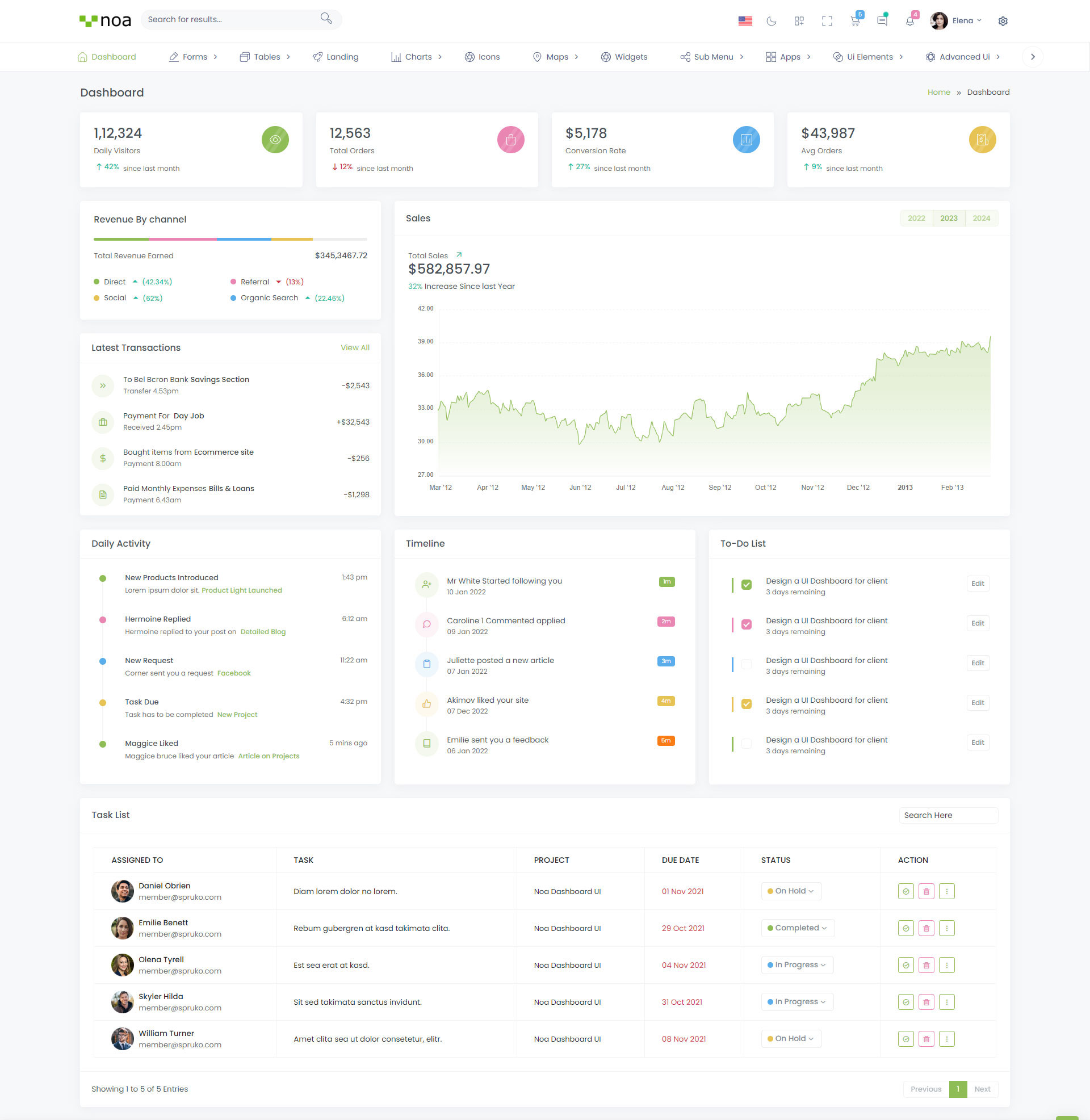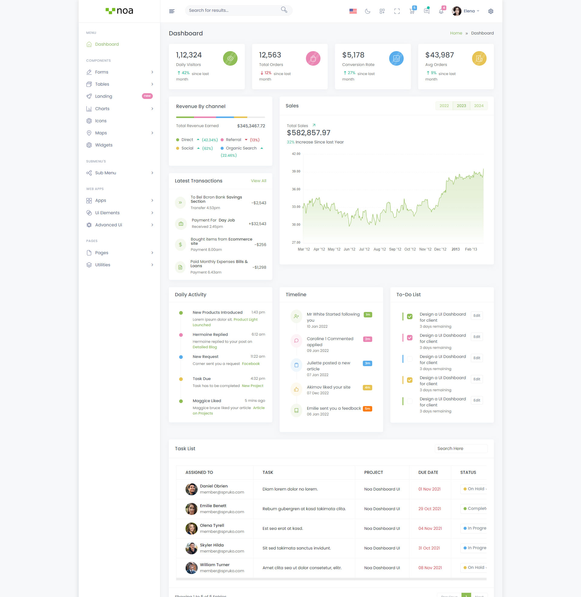 Explore the latest trending features incorporated into the Noa React Javascript Admin Dashboard Template, showcasing how we have enhanced and designed our template.