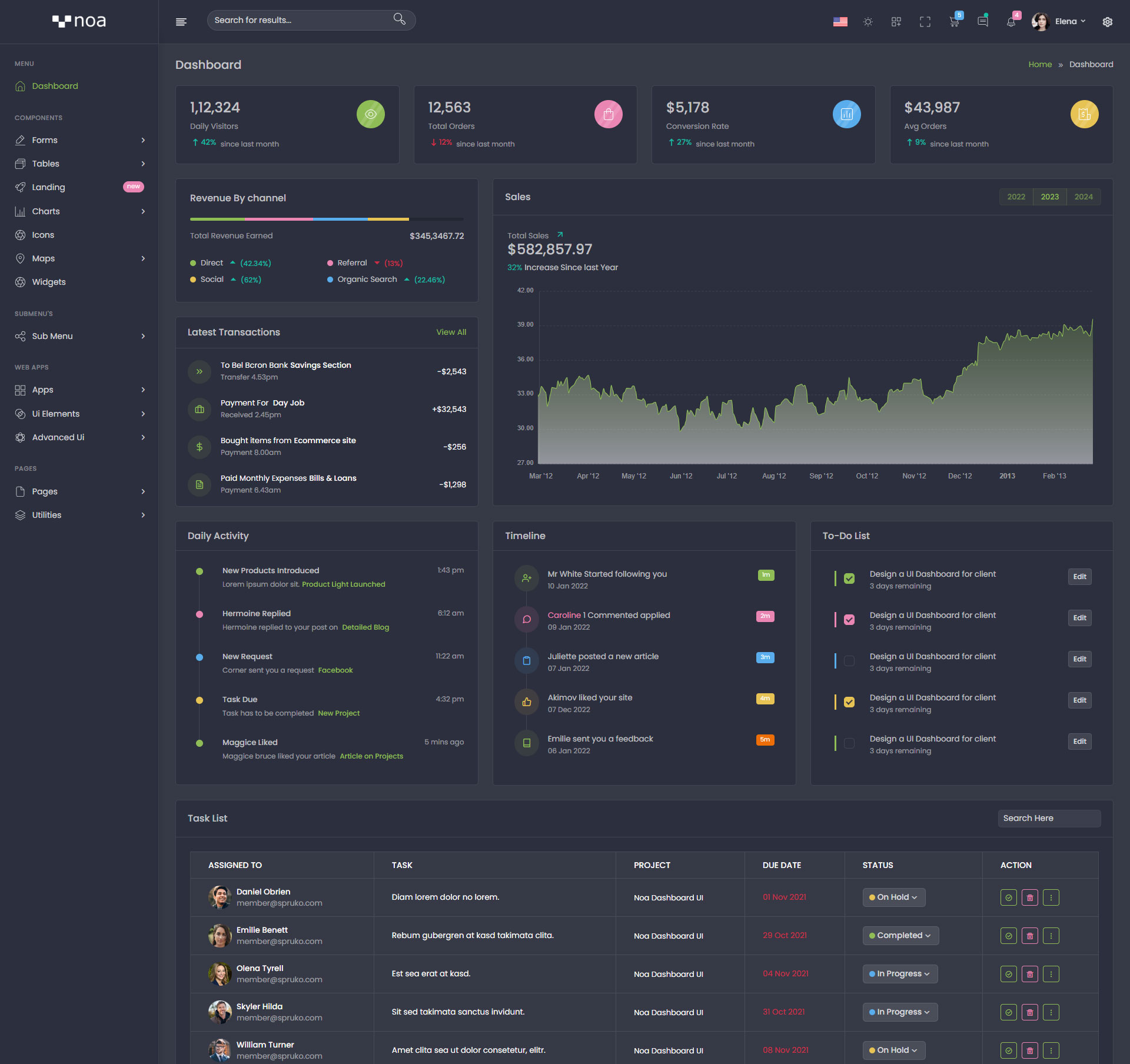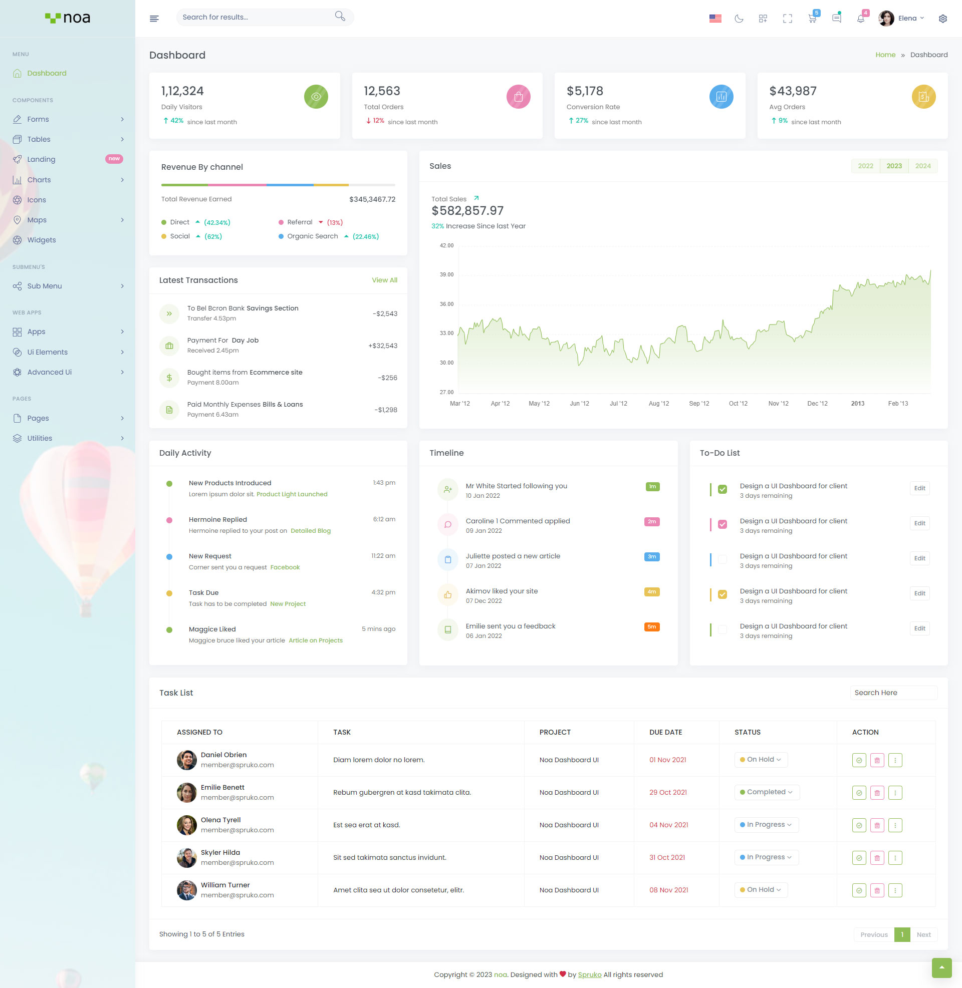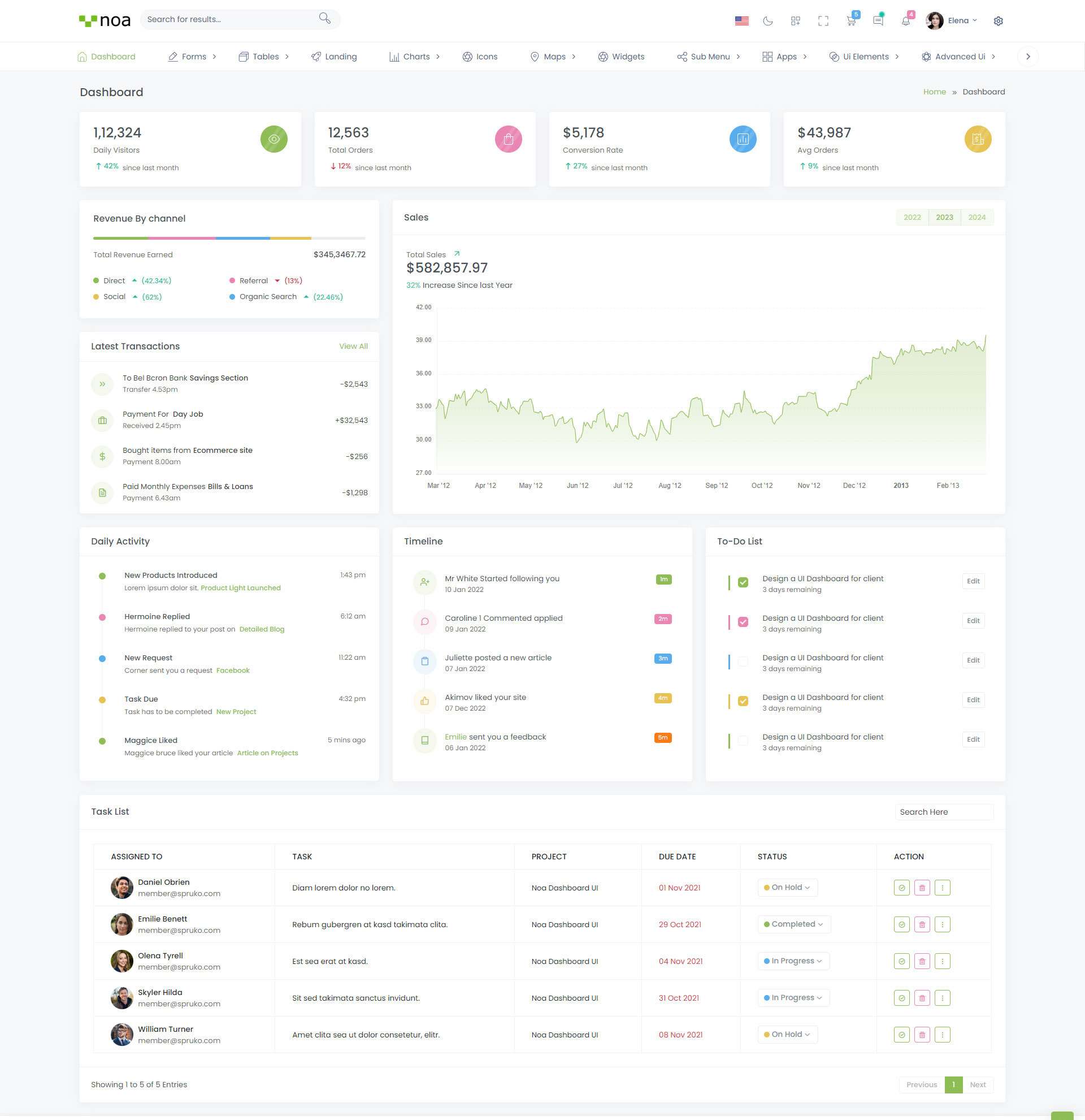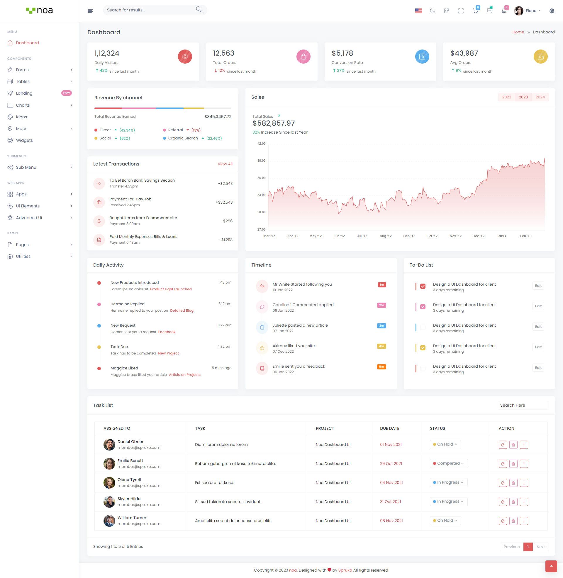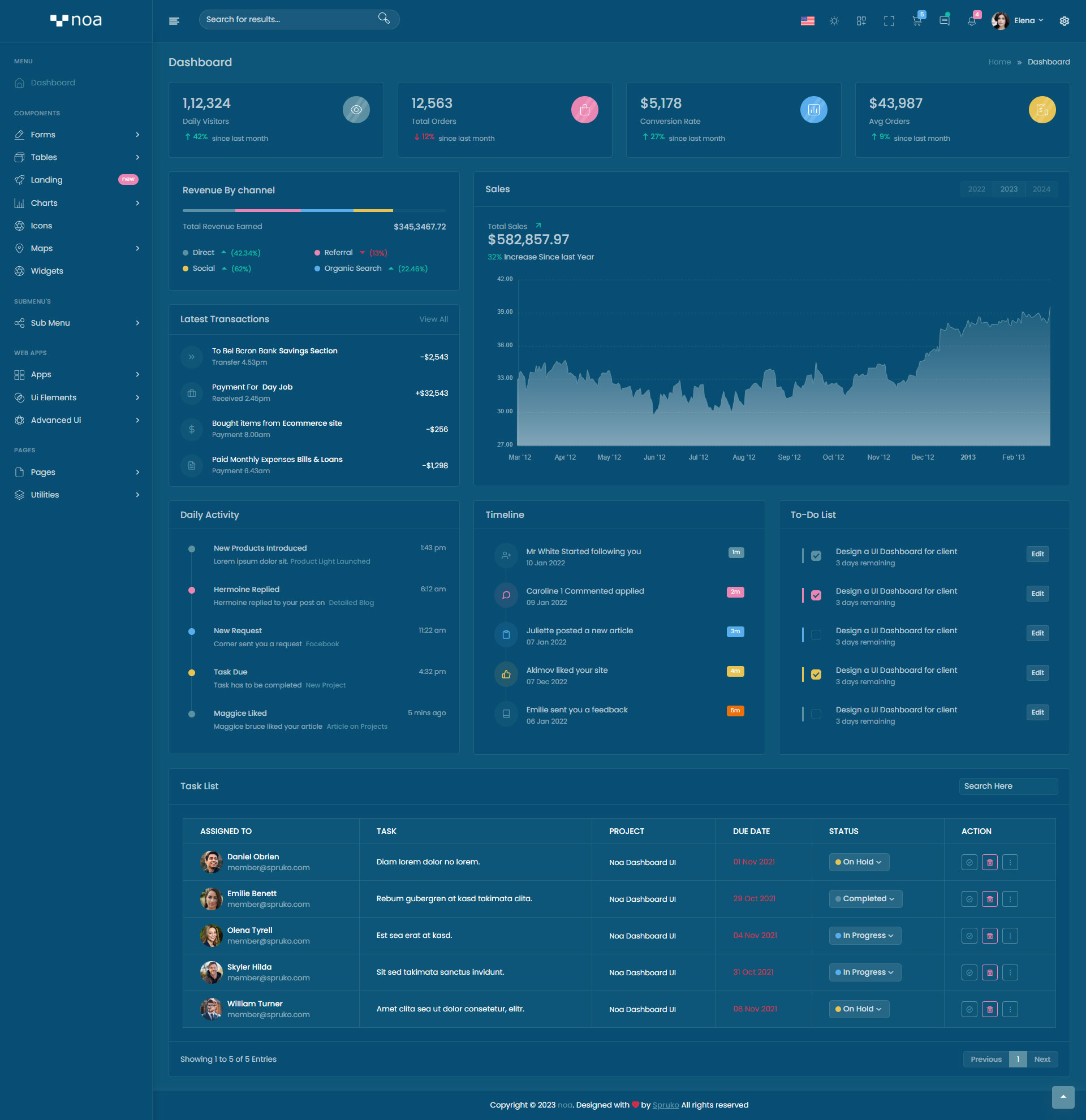 Explore the latest trending features incorporated into the Noa React Javascript Admin Dashboard Template, showcasing how we have enhanced and designed our template.