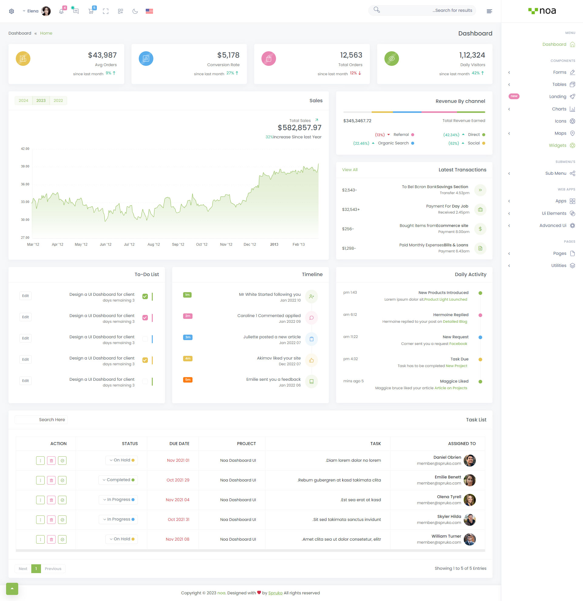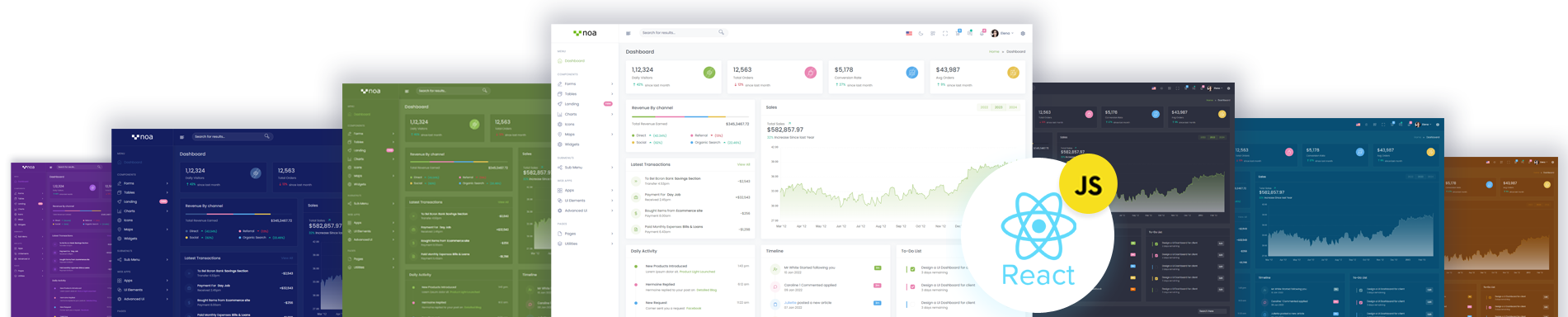 Take a look at the numerous versions we've integrated into the Noa React Javascript Admin & Dashboard Template, where you can customize it in countless ways.