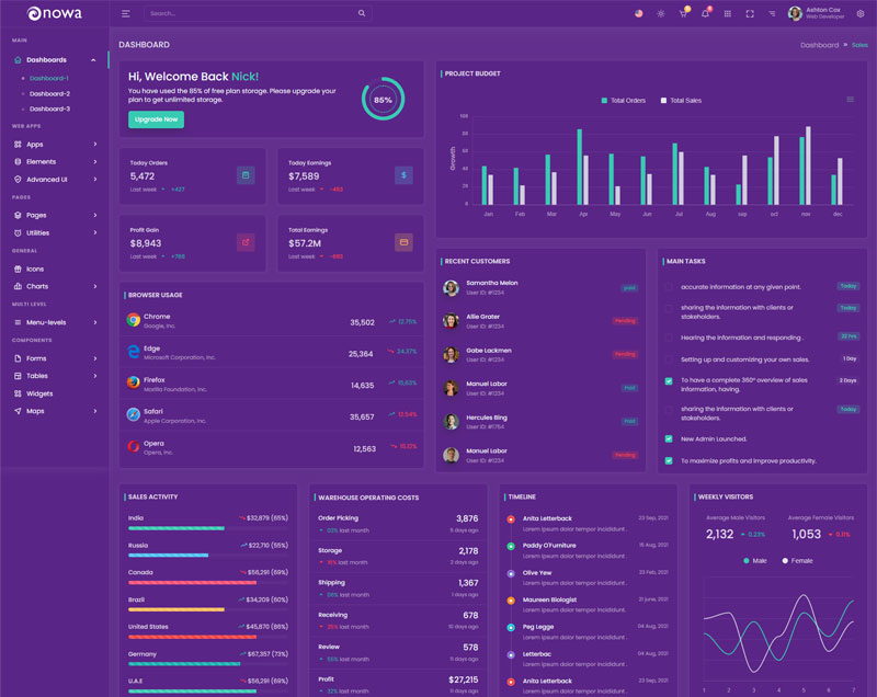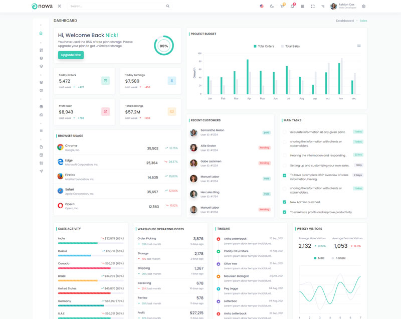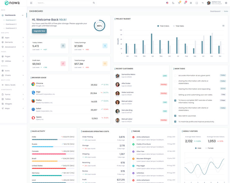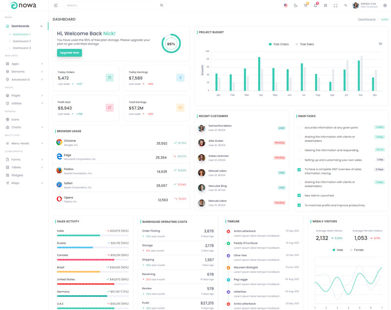 Nowa – React Typescript Admin & Dashboard Template boasts essential features such as design quality, compatibility with your front-end framework, responsiveness, ease of customization, comprehensive documentation, and dedicated support. Additionally, it includes integrated plugins and other supplementary features.