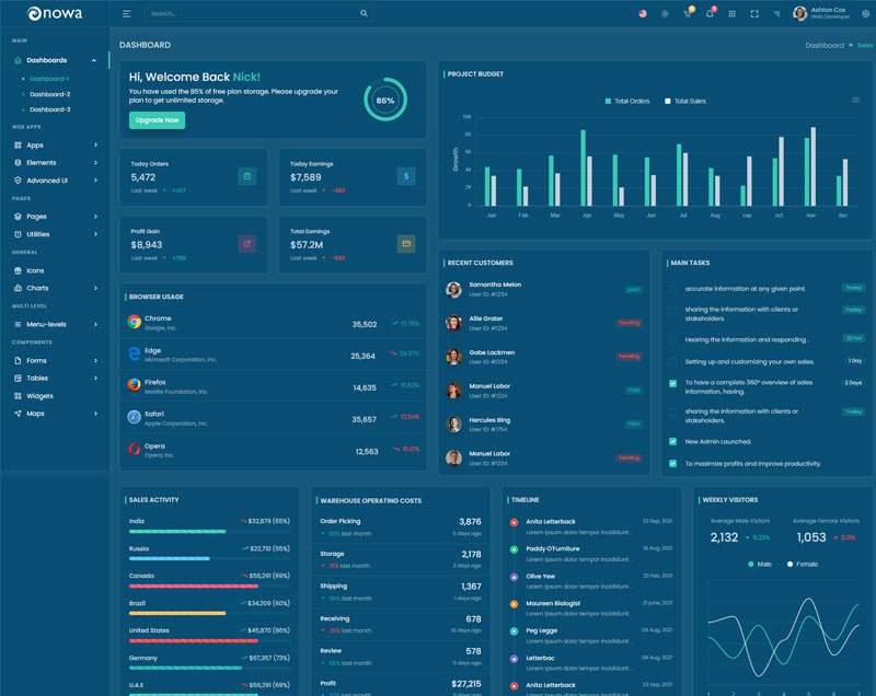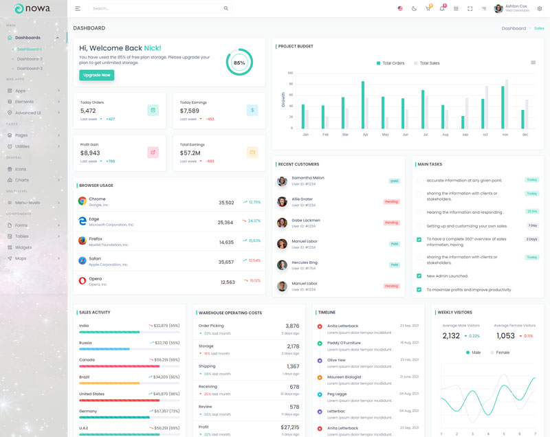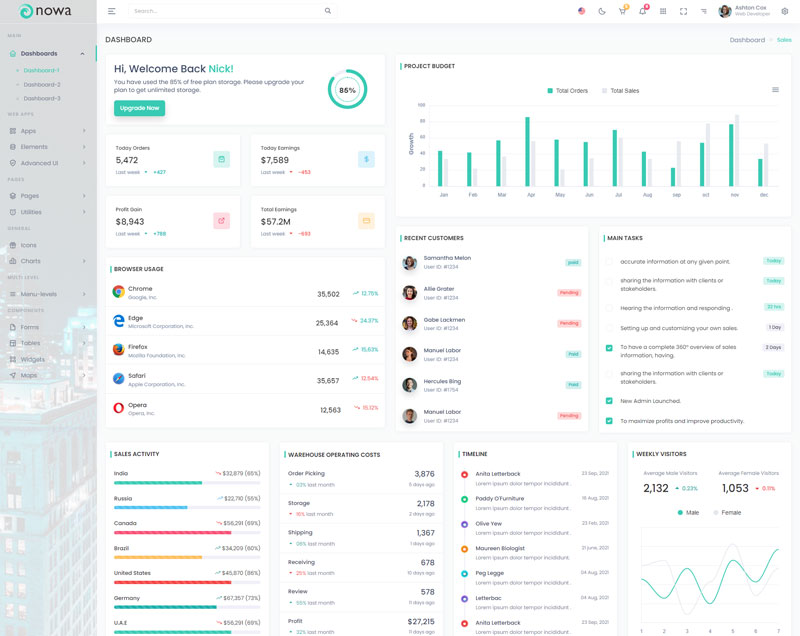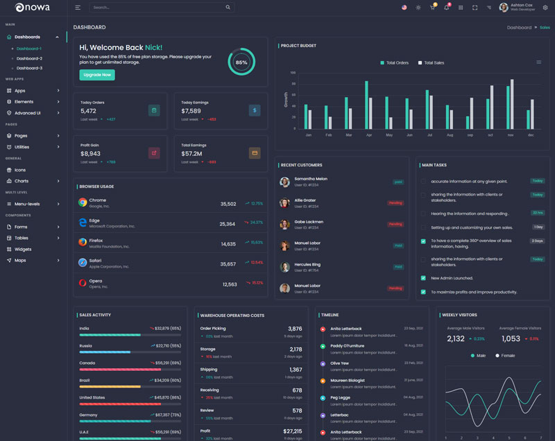 Explore the latest trending features incorporated into the Nowa-TS React Admin template, showcasing how we have enhanced and designed our template. When it comes to design, we always keep a close watch on the most trending features.
