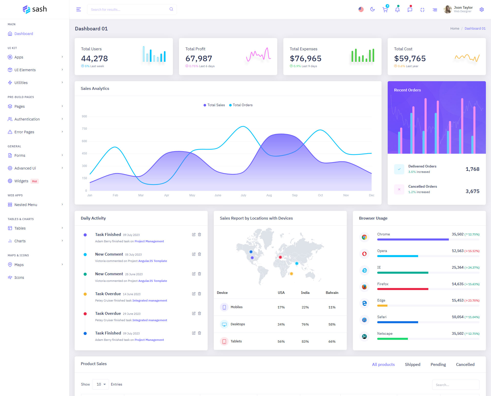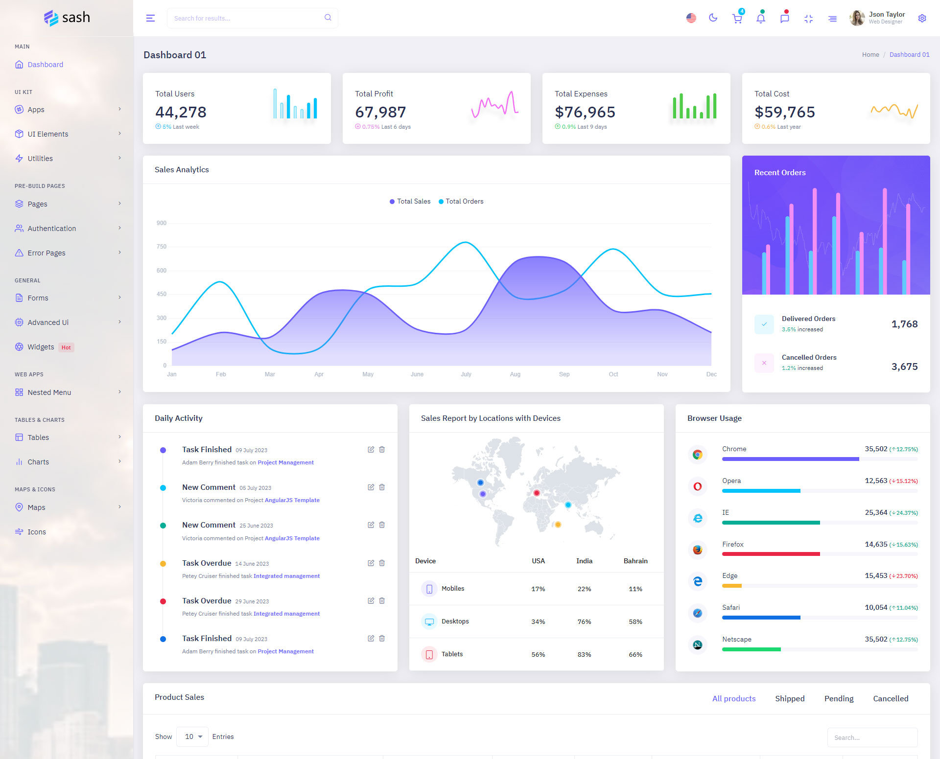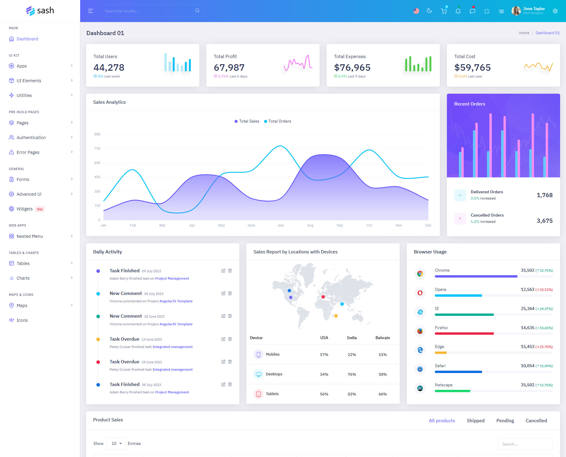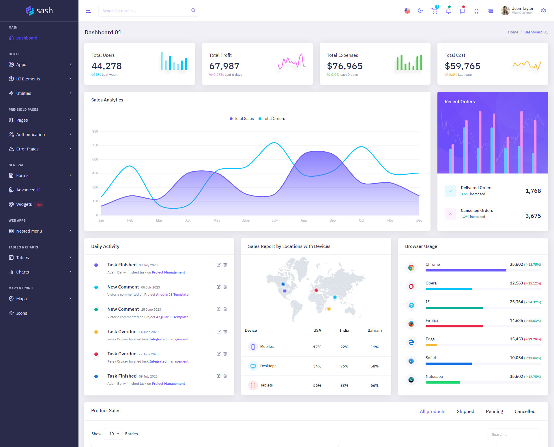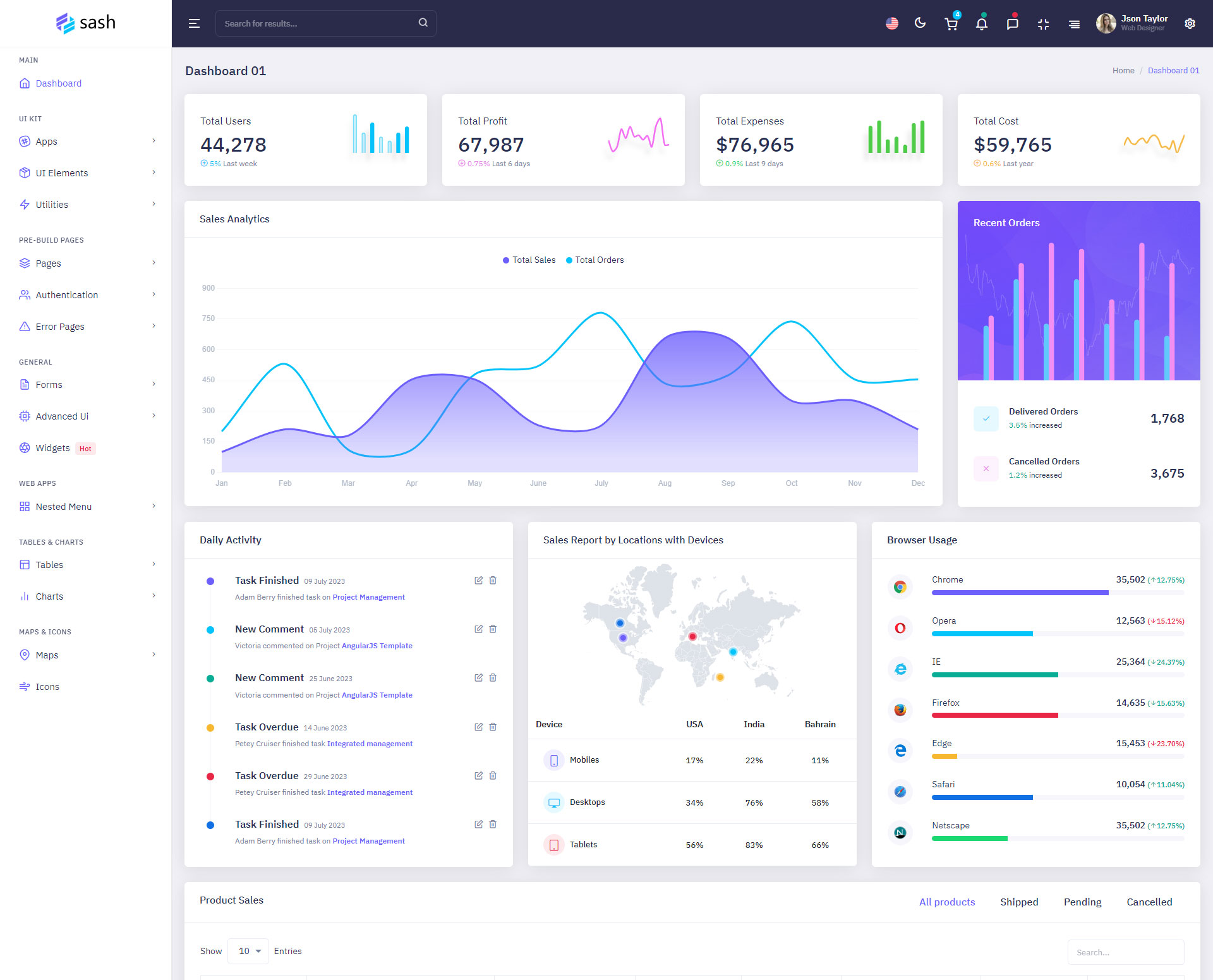 The Sash admin template comes with ready-to-use features that are completely easy-to-use for any user, even for a beginner.