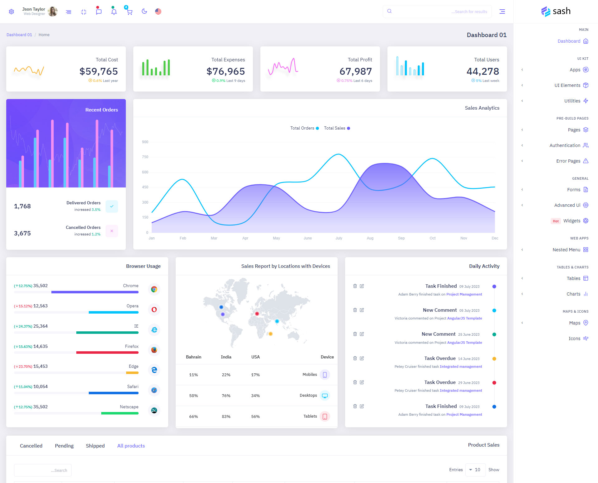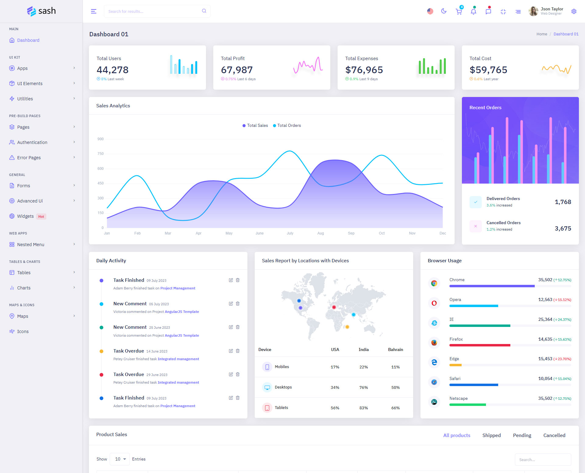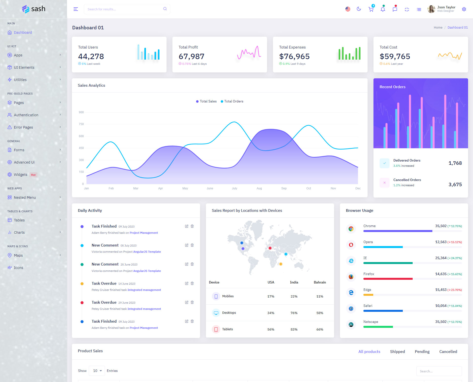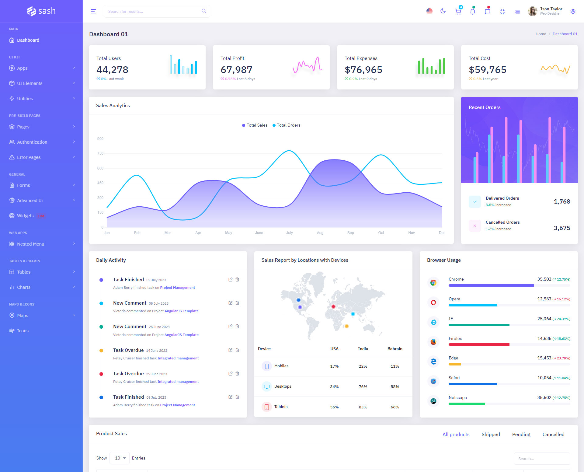 The Sash admin template comes with ready-to-use features that are completely easy-to-use for any user, even for a beginner.