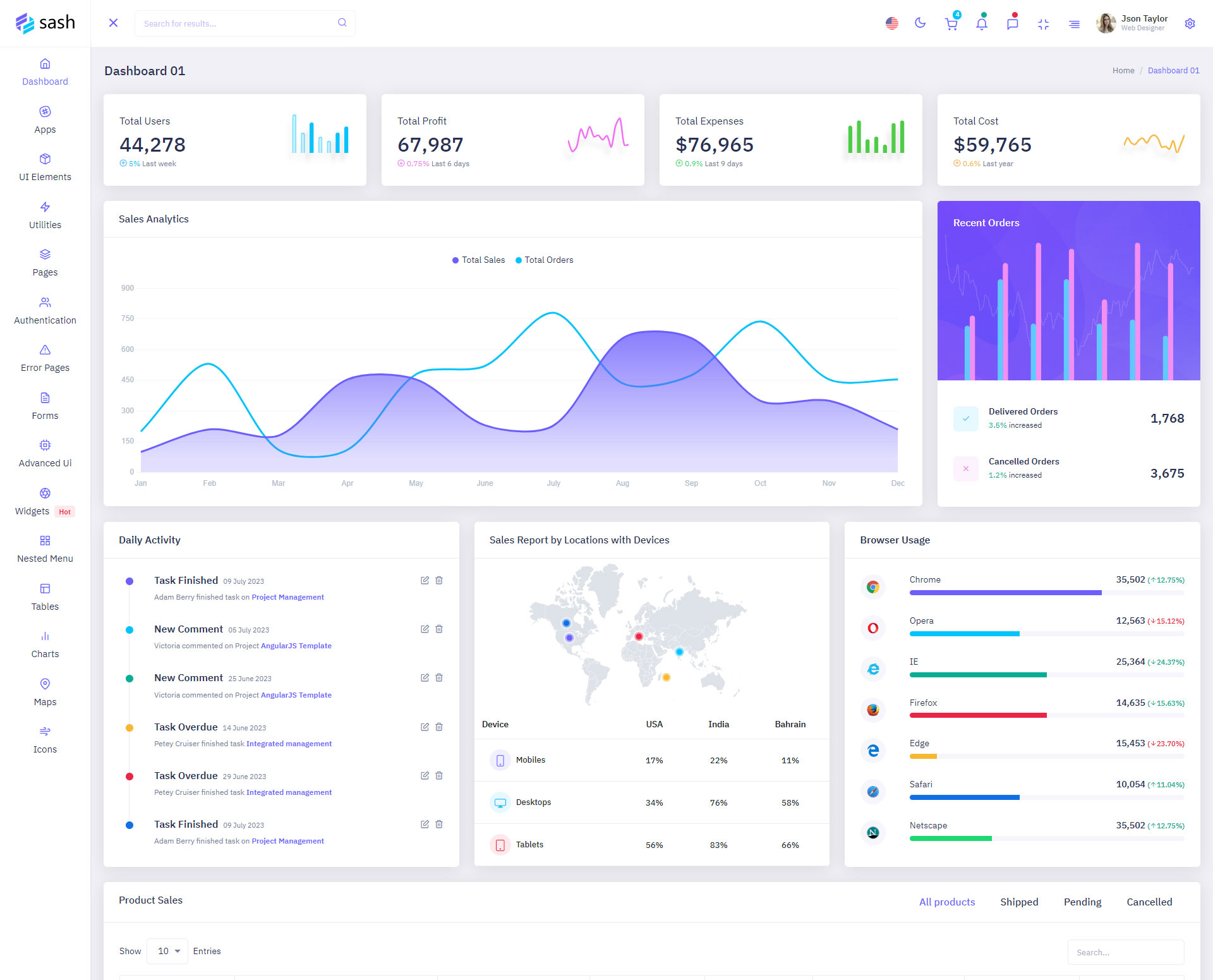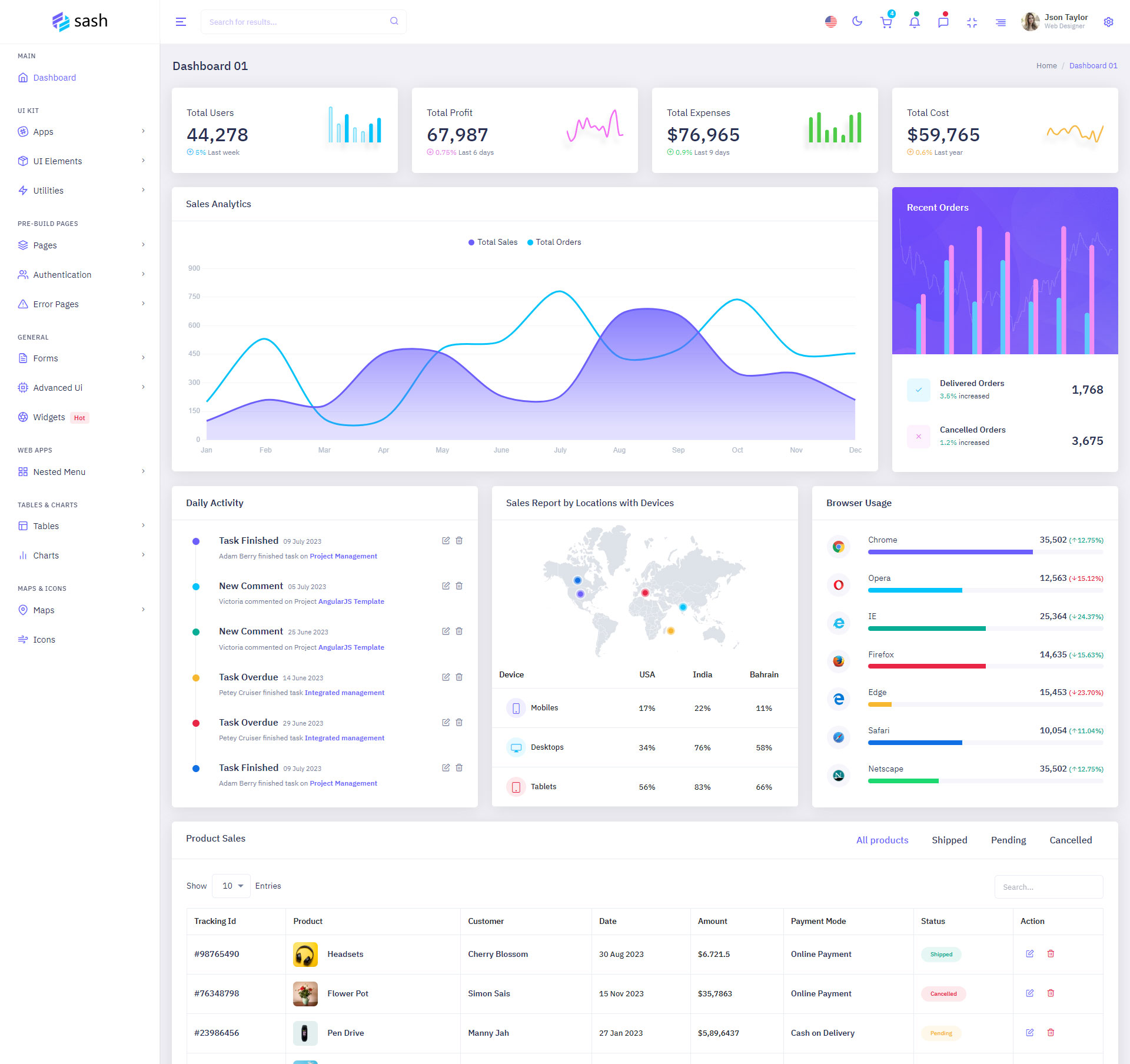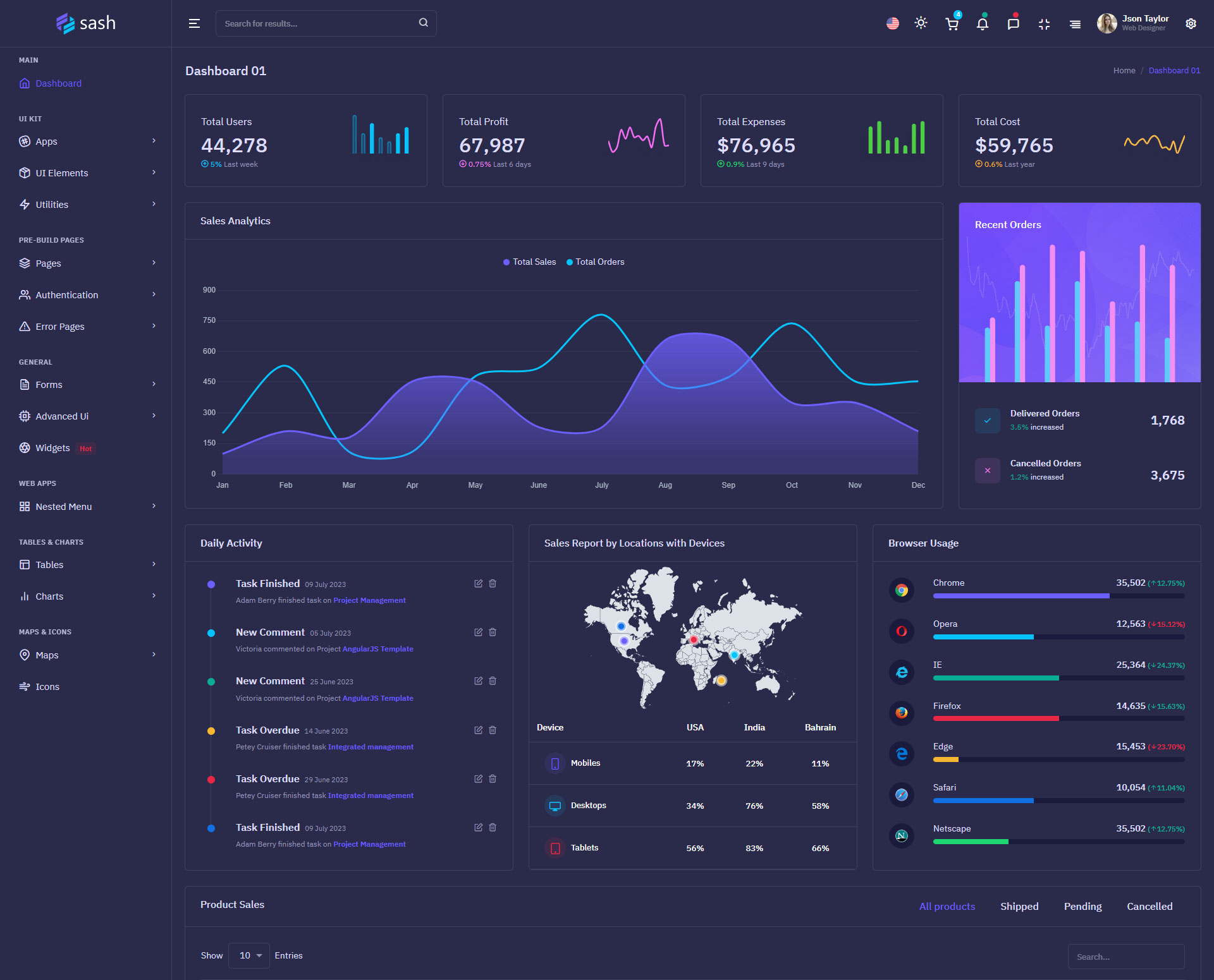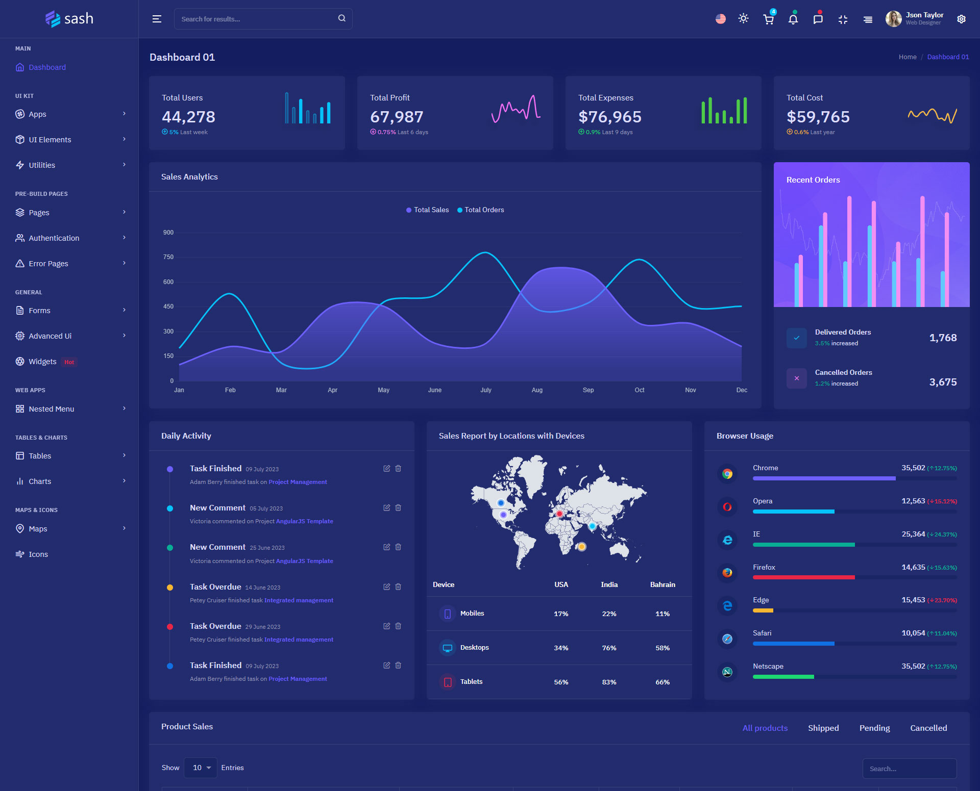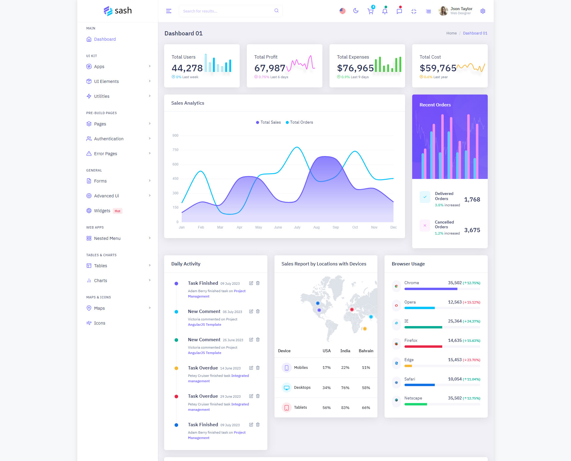 The Sash admin template comes with ready-to-use features that are completely easy-to-use for any user, even for a beginner.