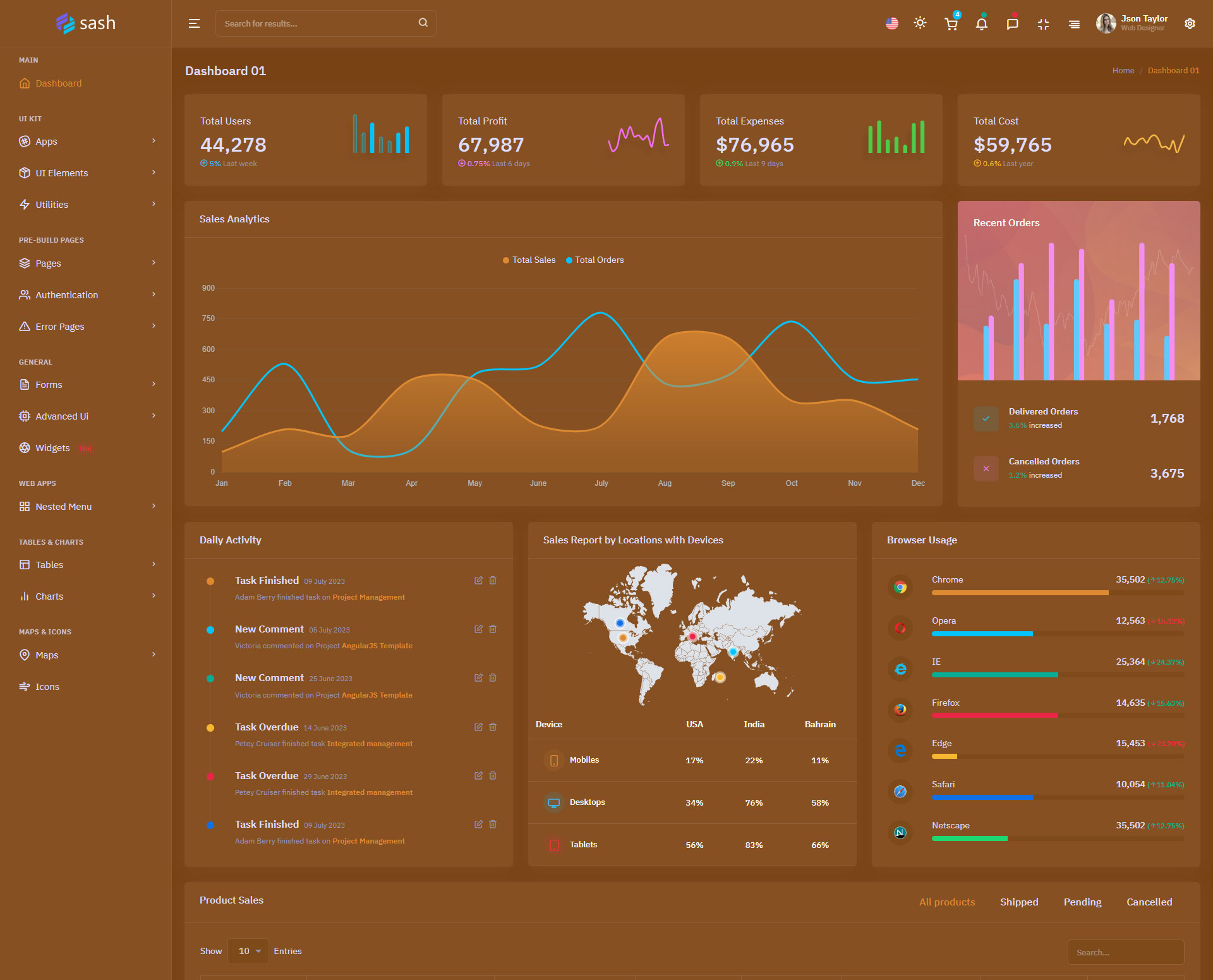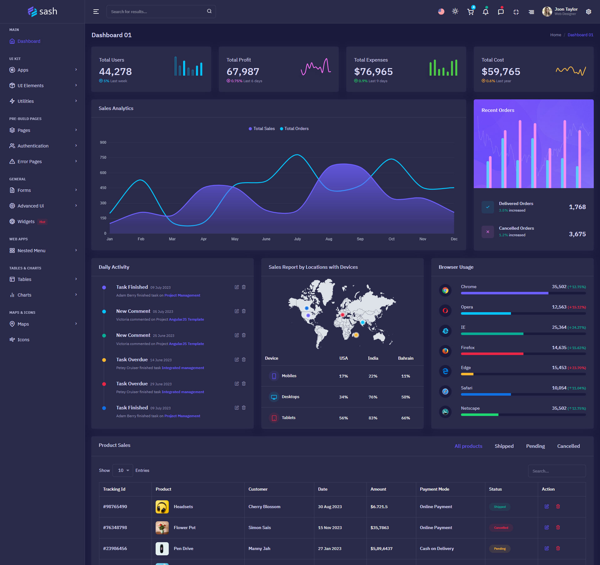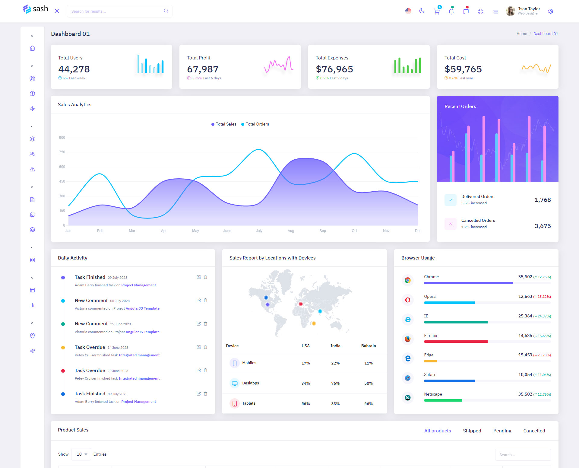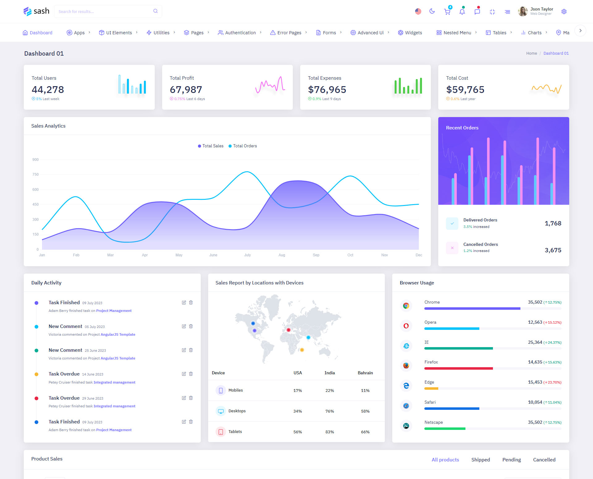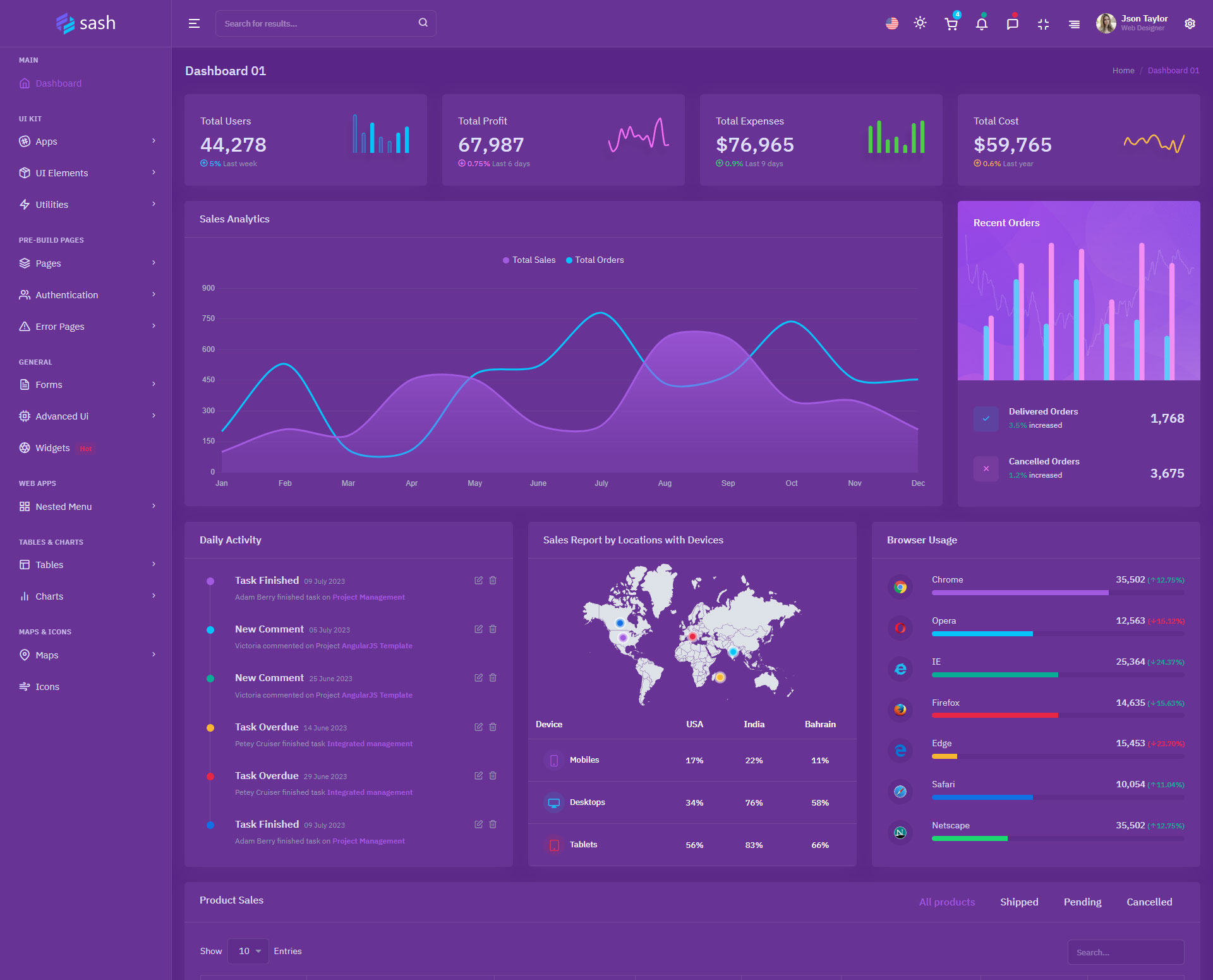 The Sash admin template comes with ready-to-use features that are completely easy-to-use for any user, even for a beginner.