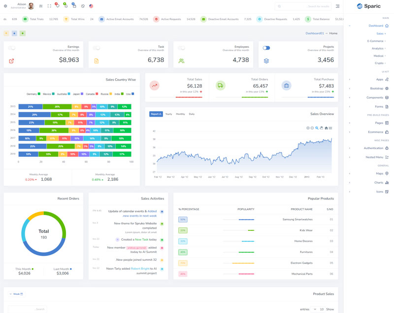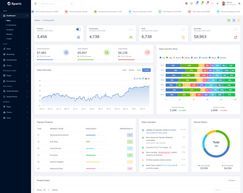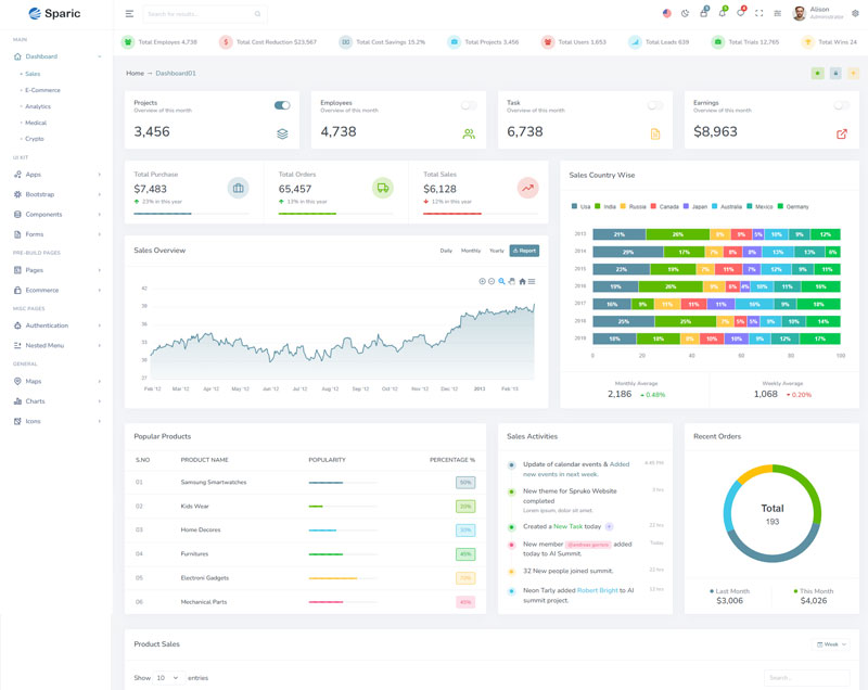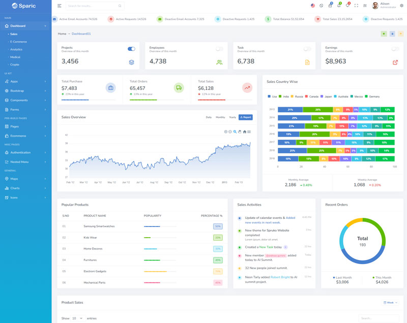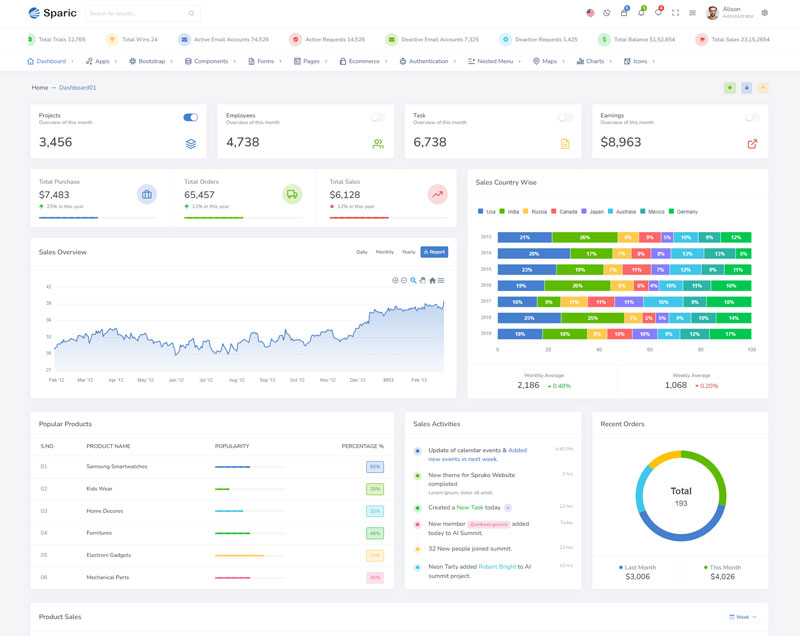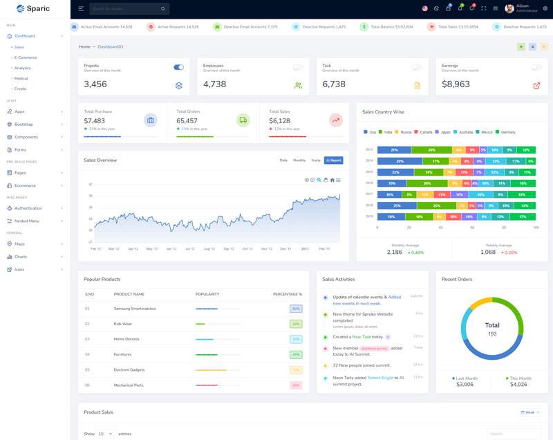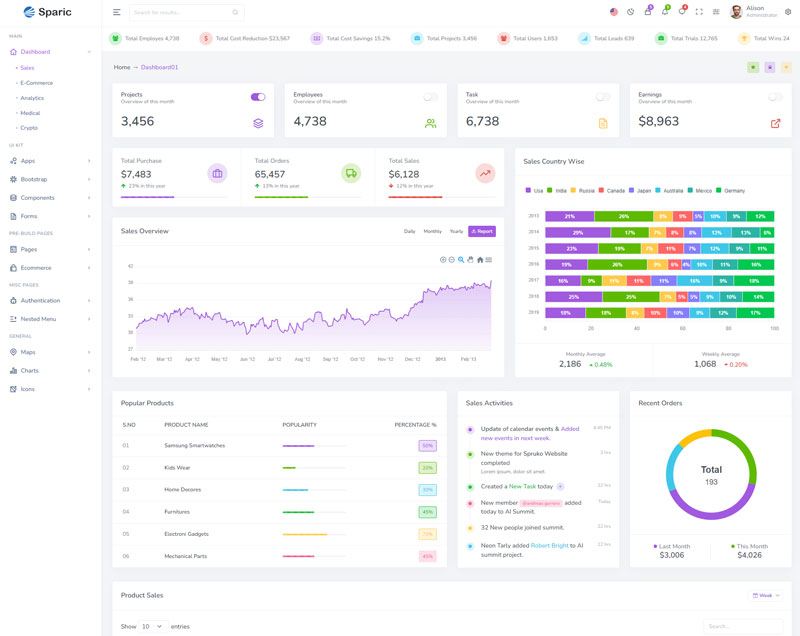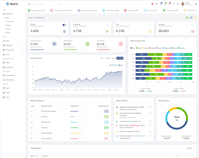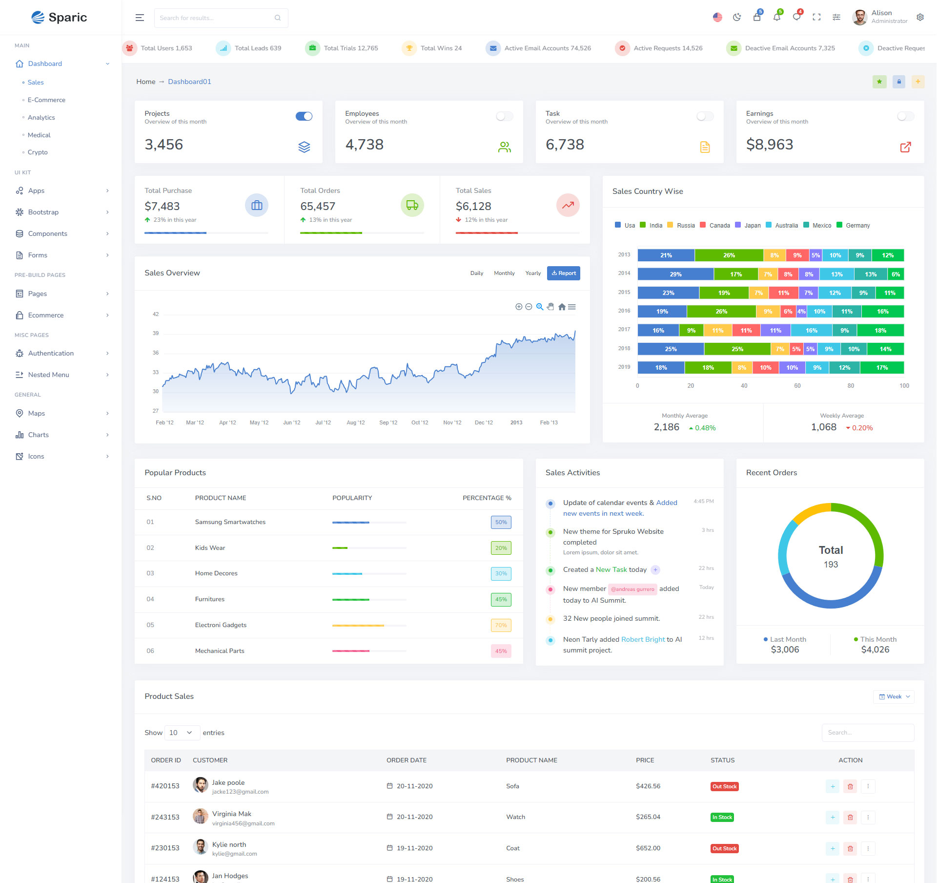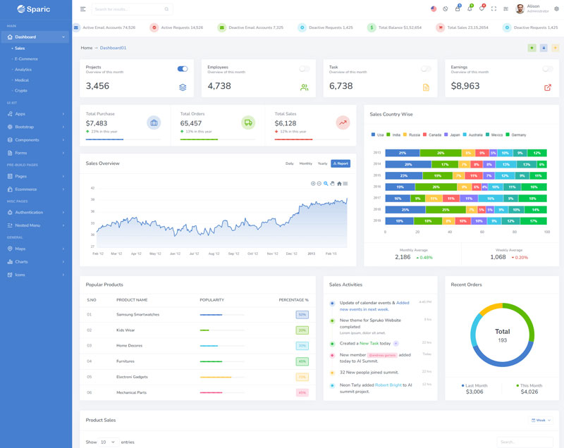 Sparic admin template comes with ready to use features. It has lots of ready-made features saves more time for developers.