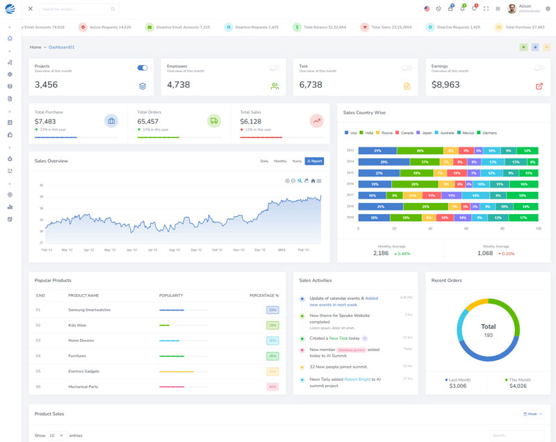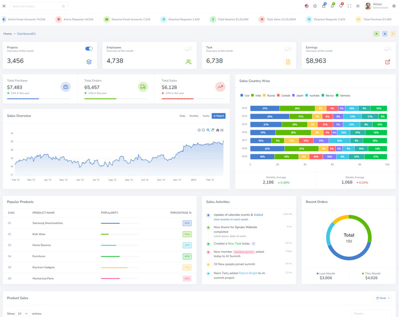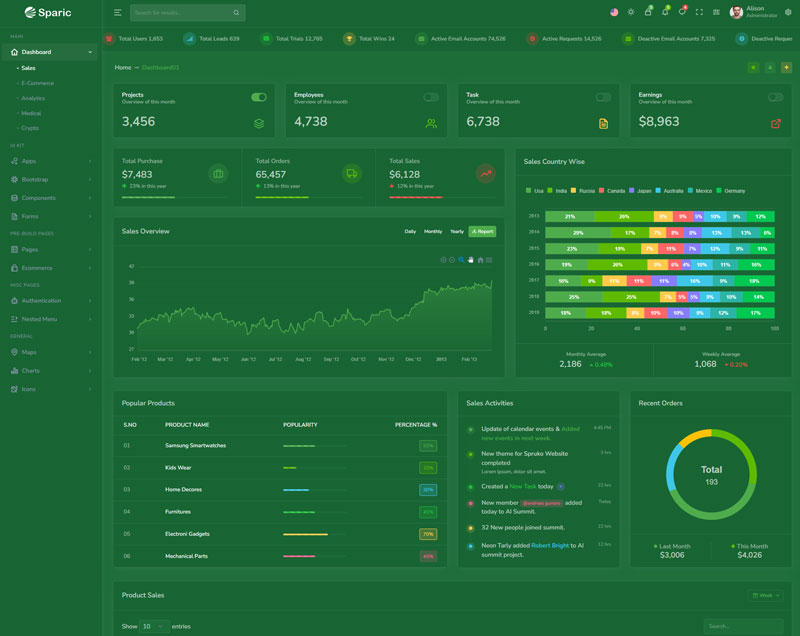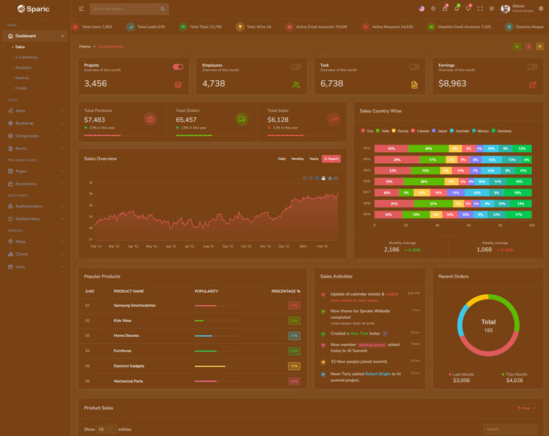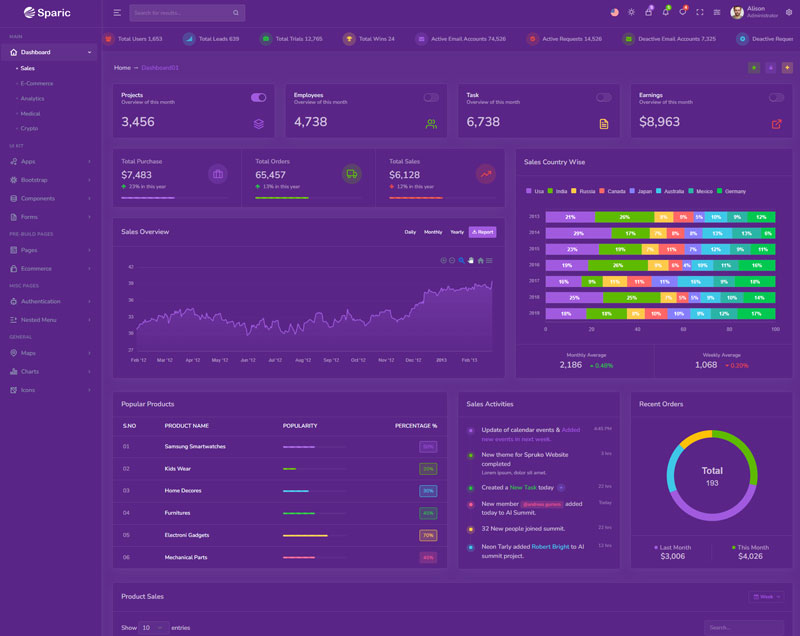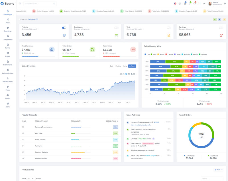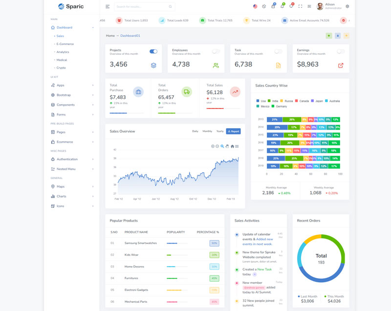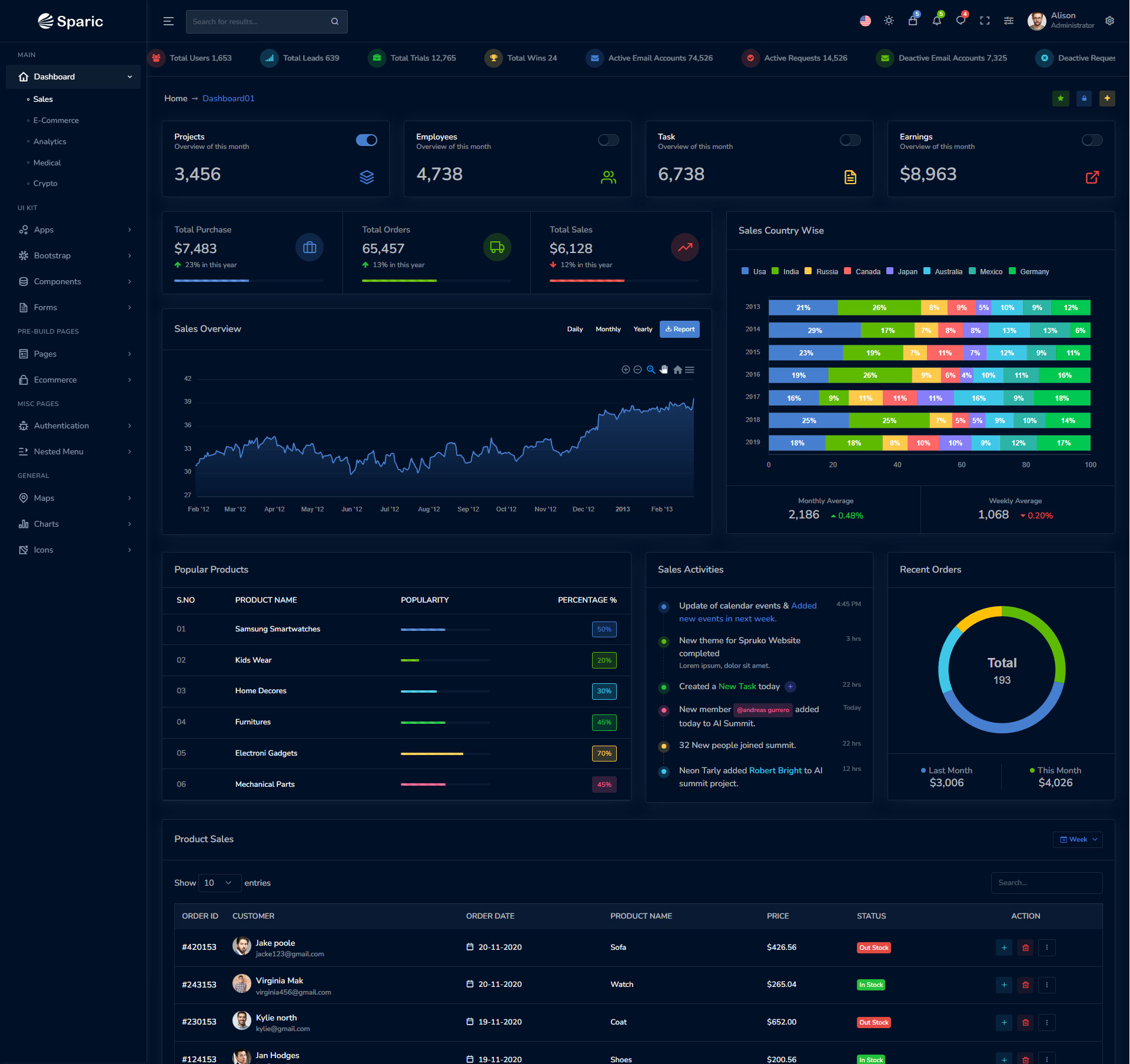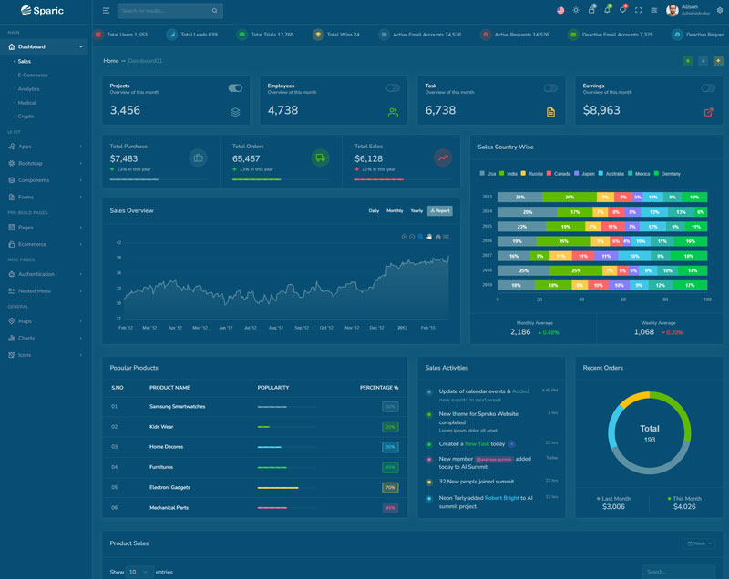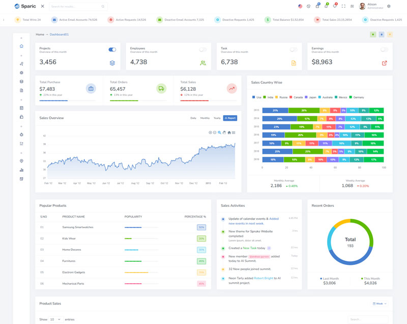 Sparic admin template comes with ready to use features. It has lots of ready-made features saves more time for developers.