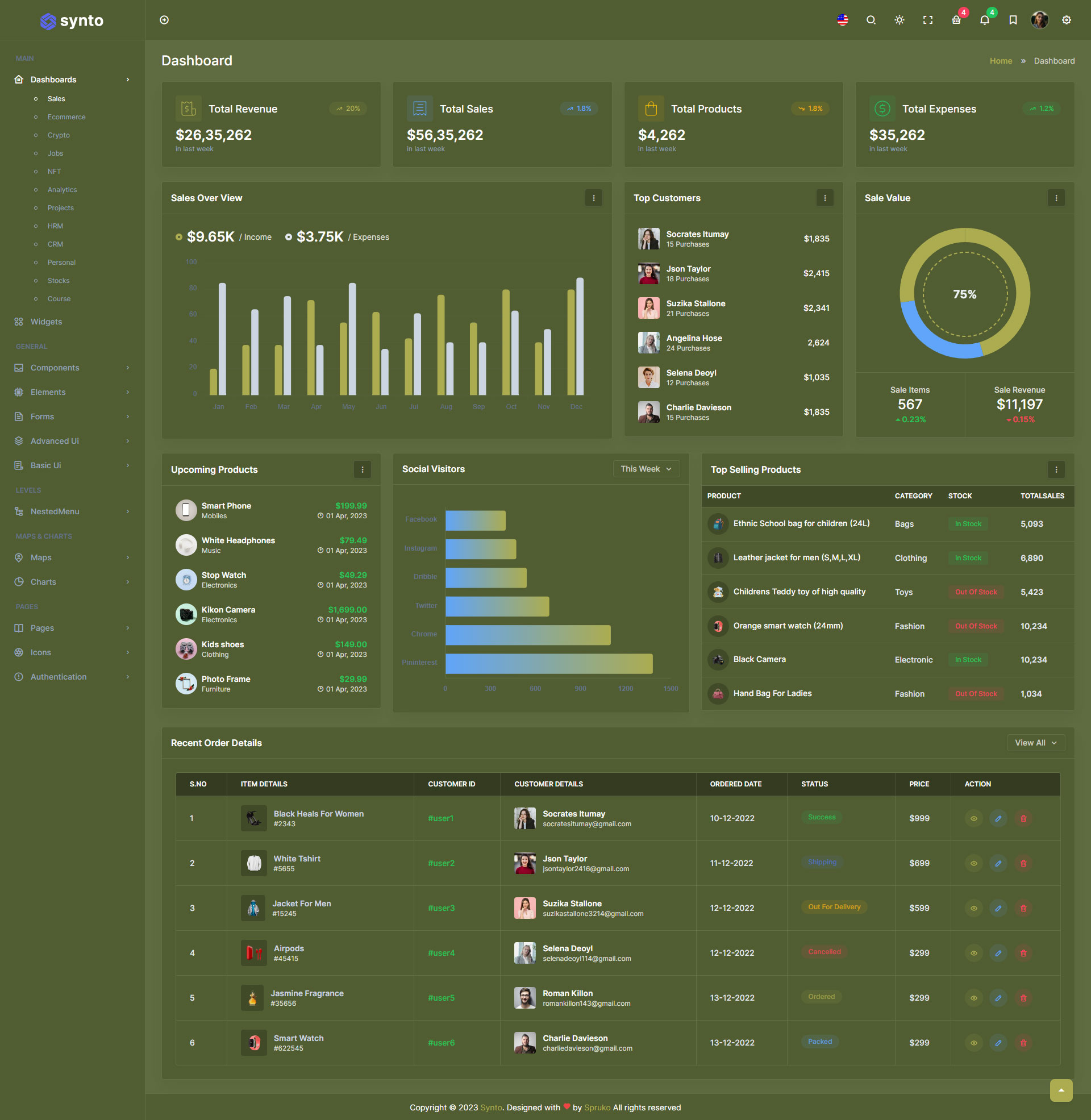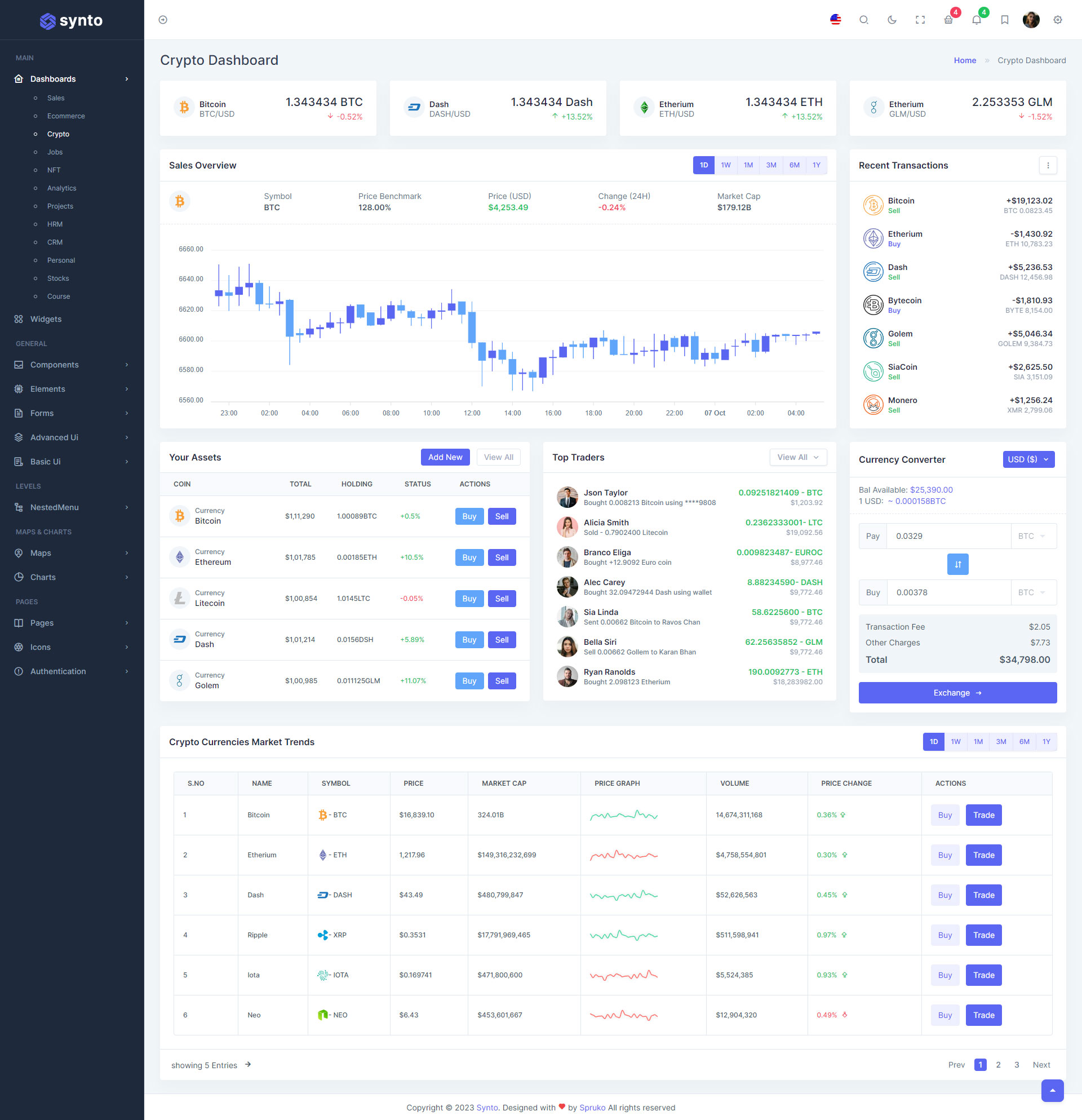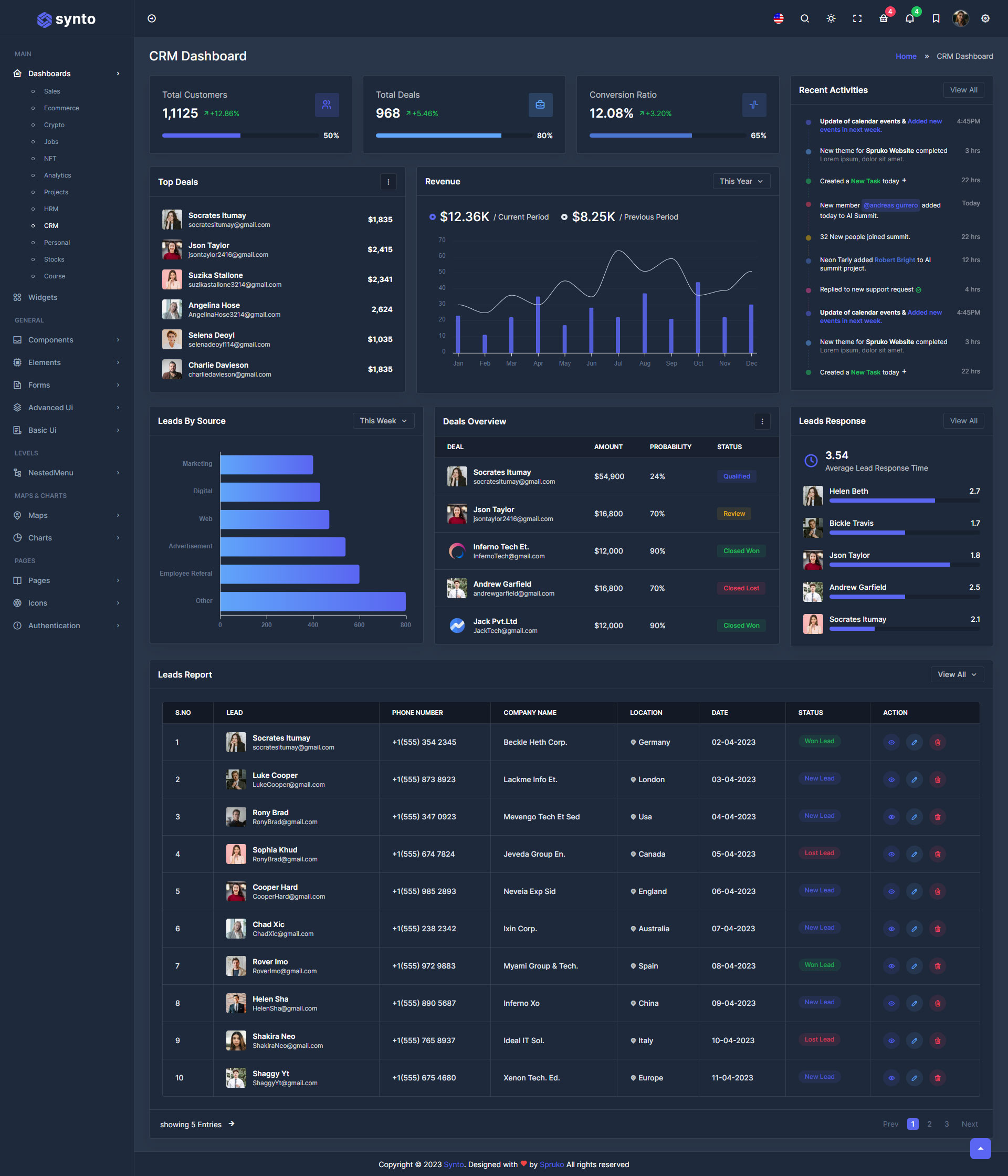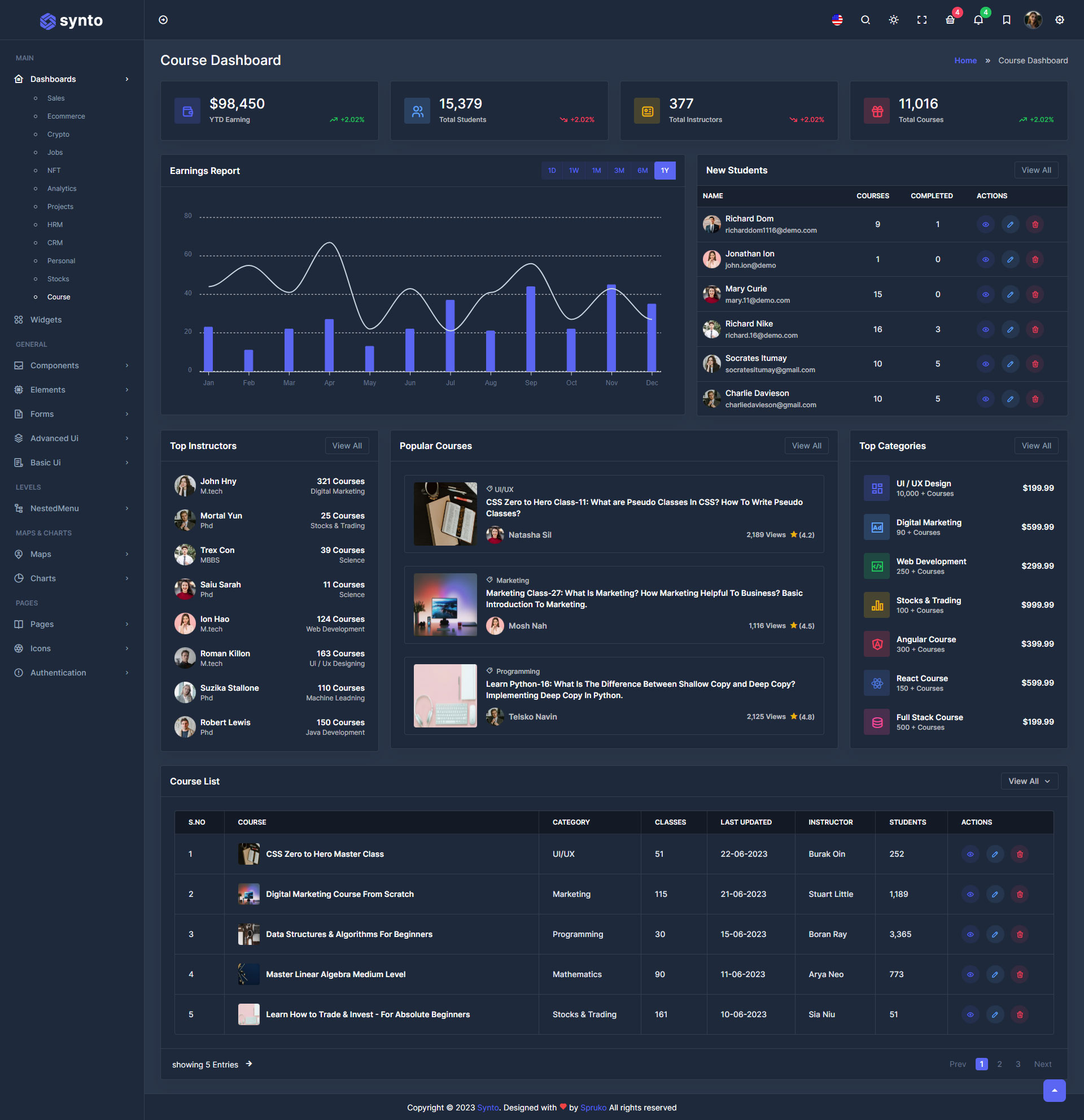 This Synto React TypeScript Admin template comes with 12 beautiful dashboards and different types of themes. So that users can choose their best theme and customize the template according to their choice.