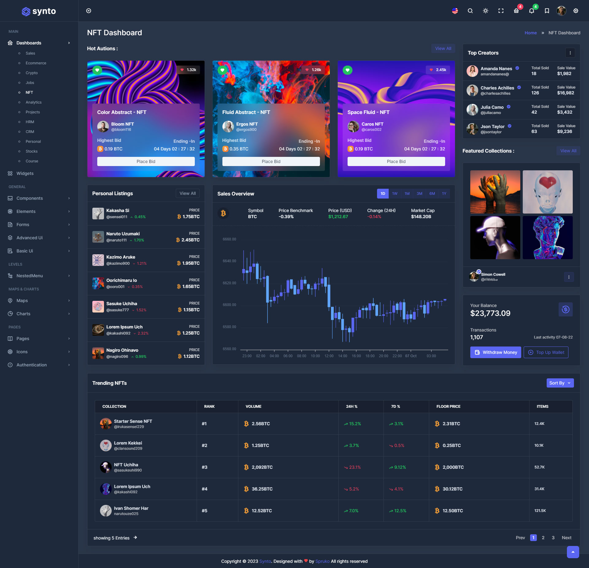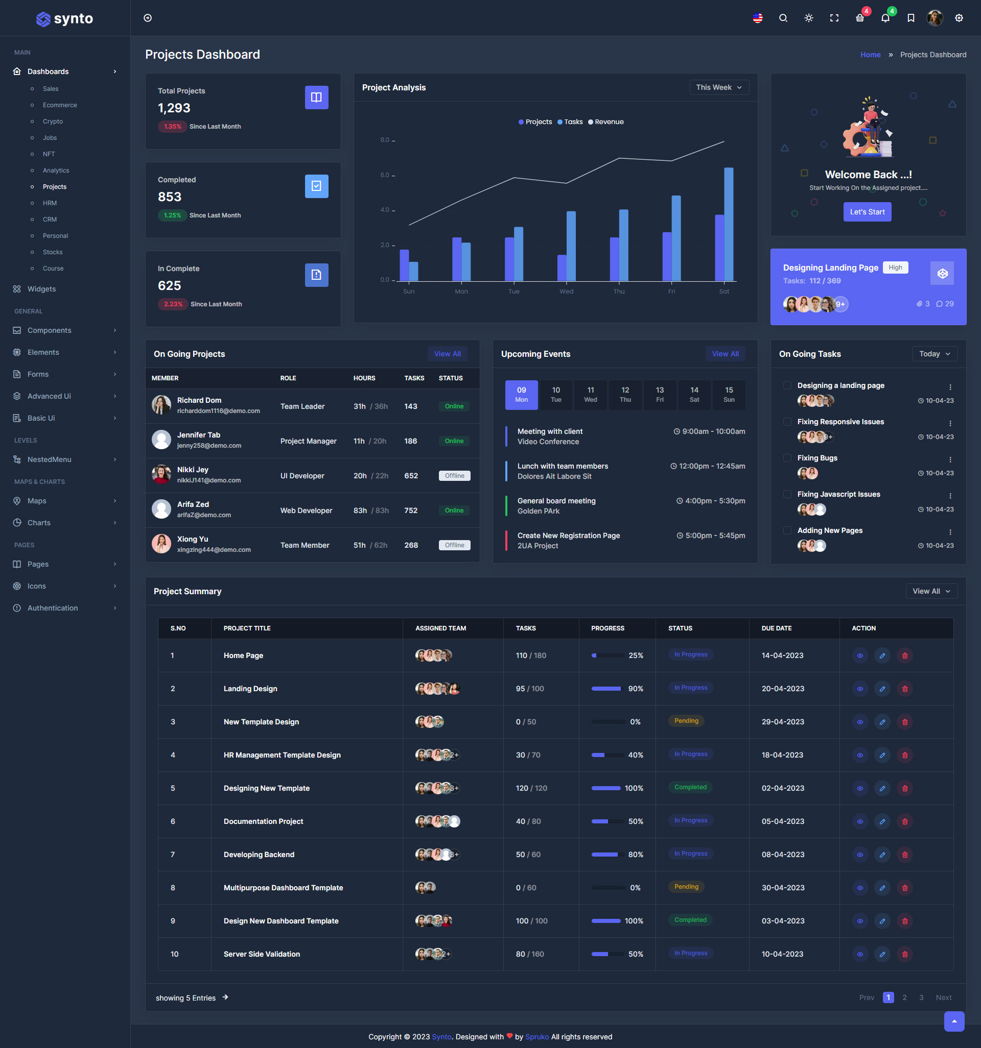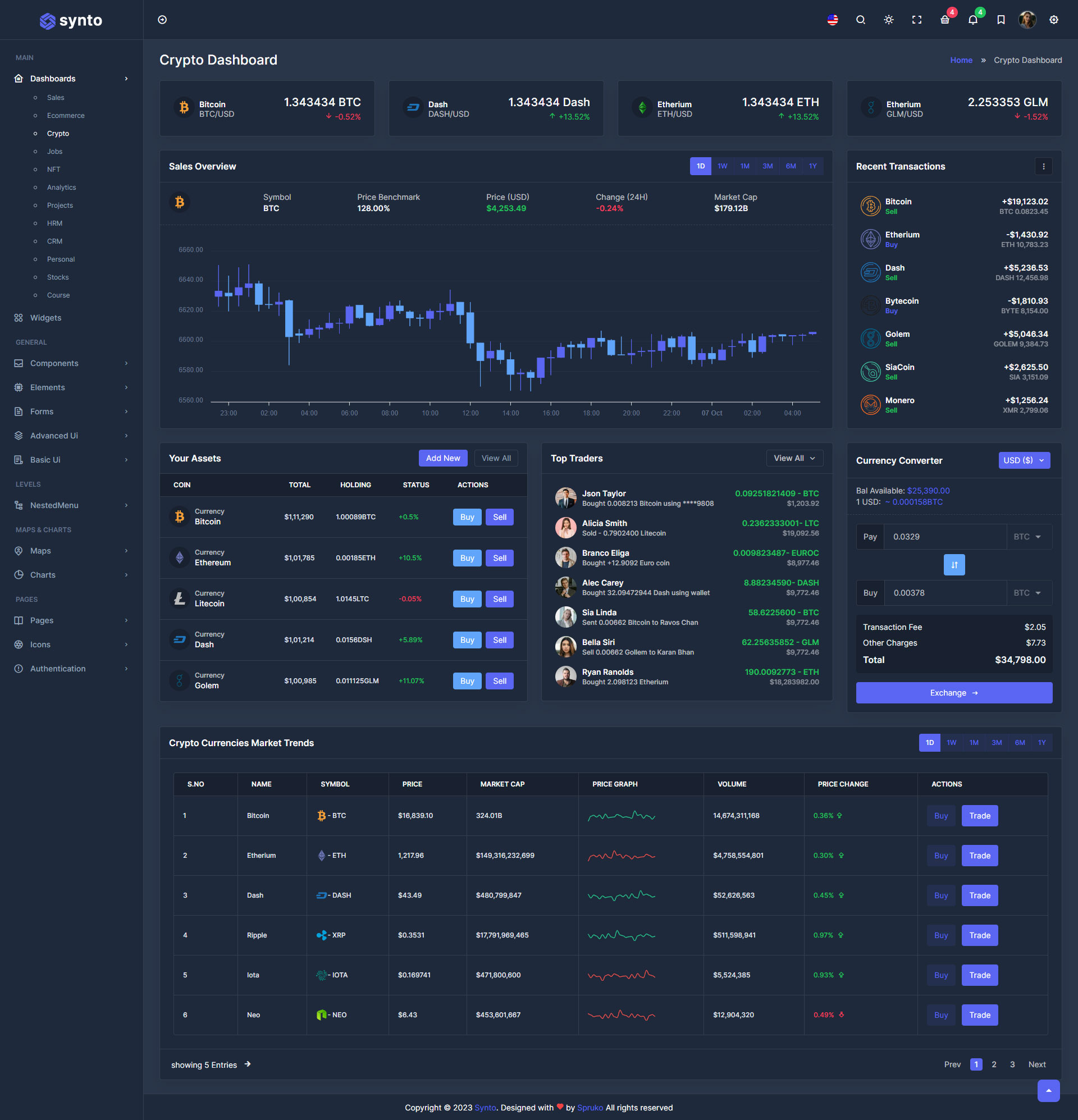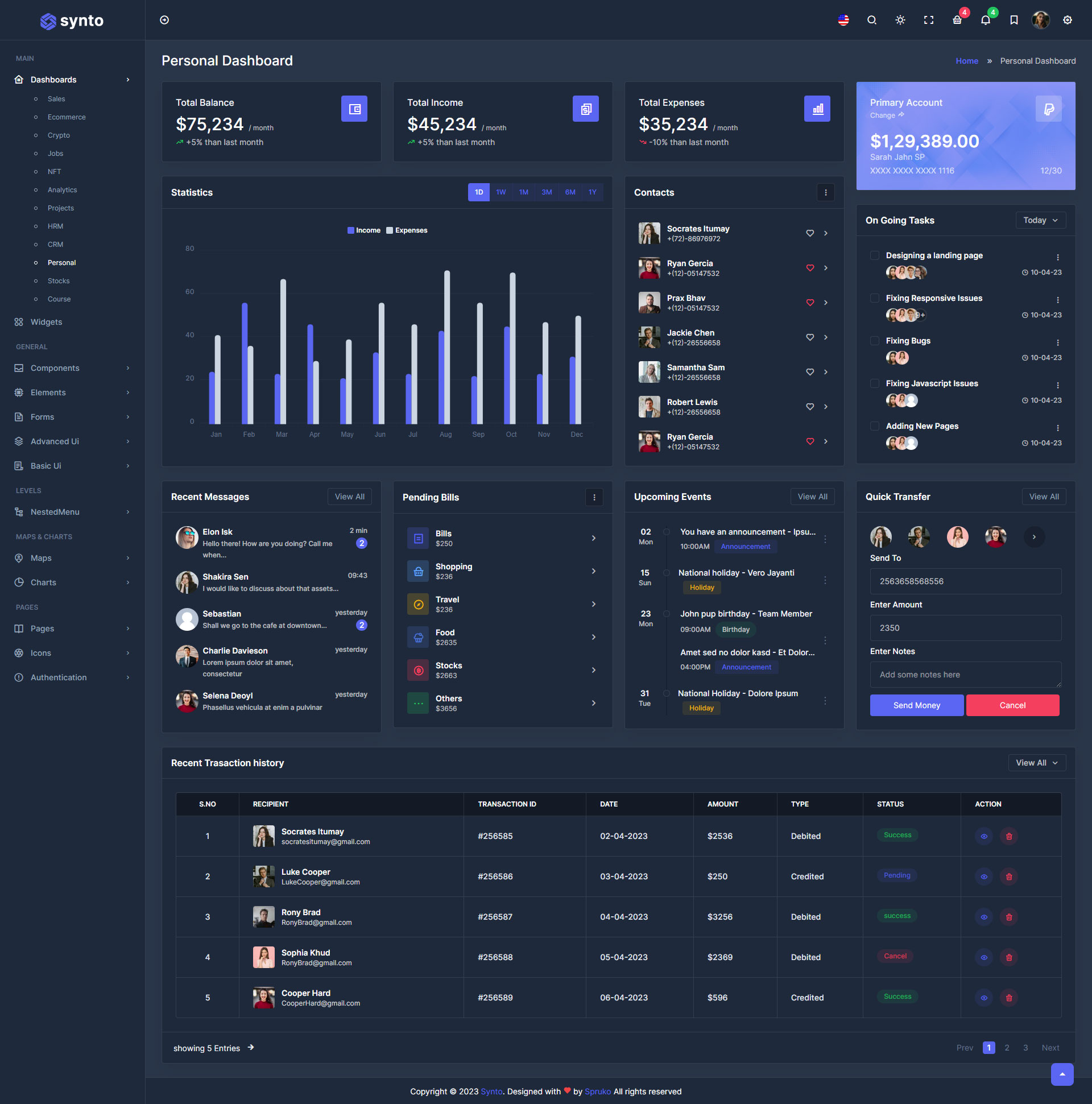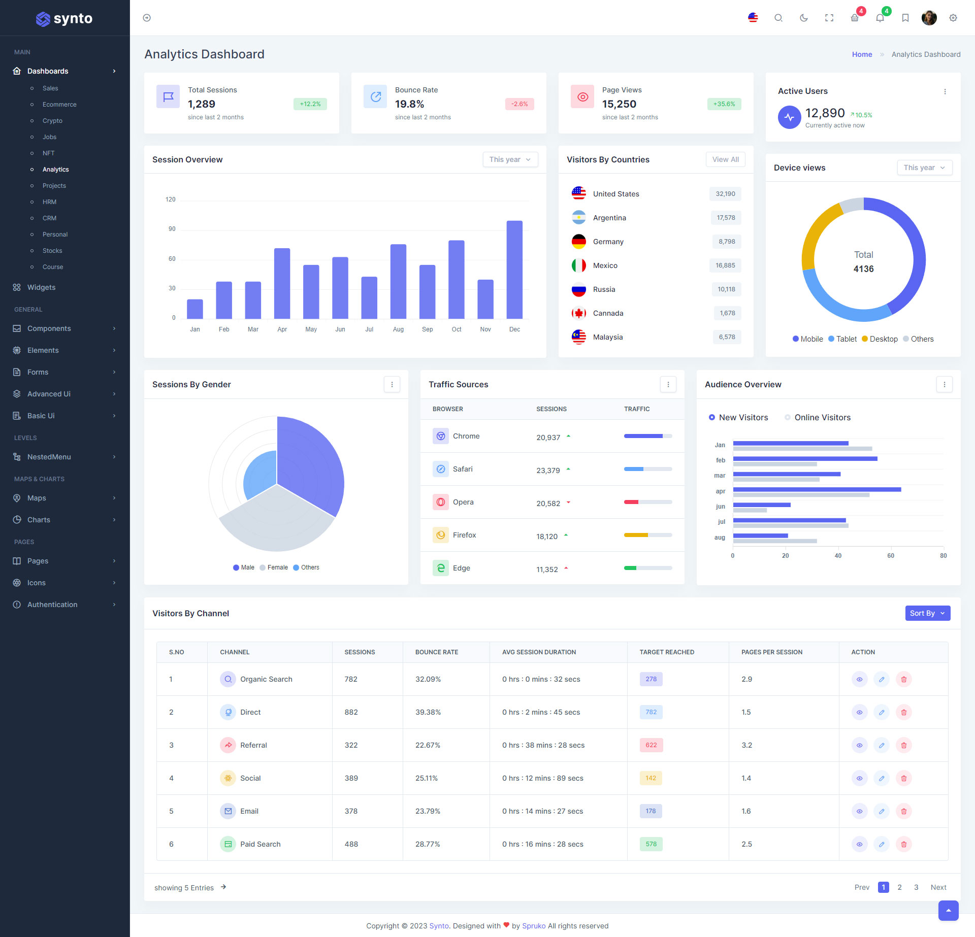 This Synto React TypeScript Admin template comes with 12 beautiful dashboards and different types of themes. So that users can choose their best theme and customize the template according to their choice.