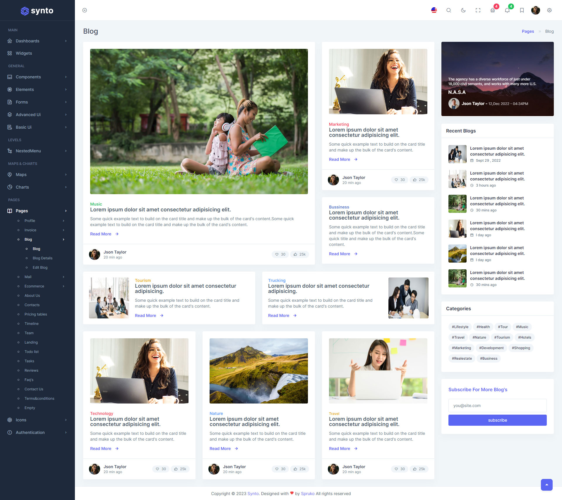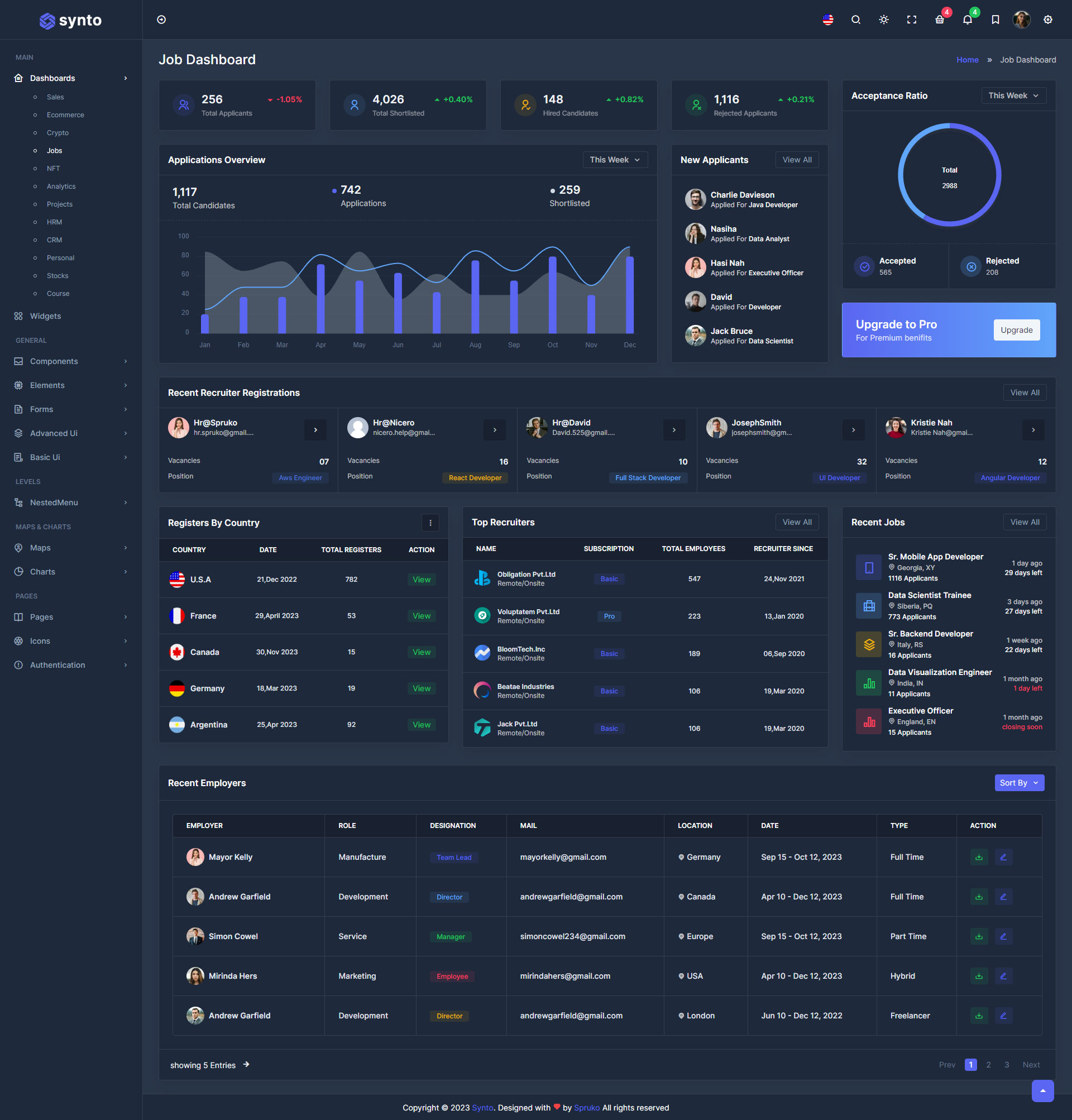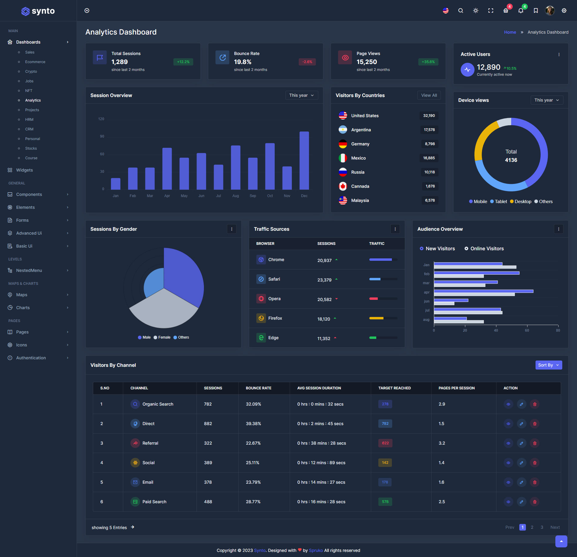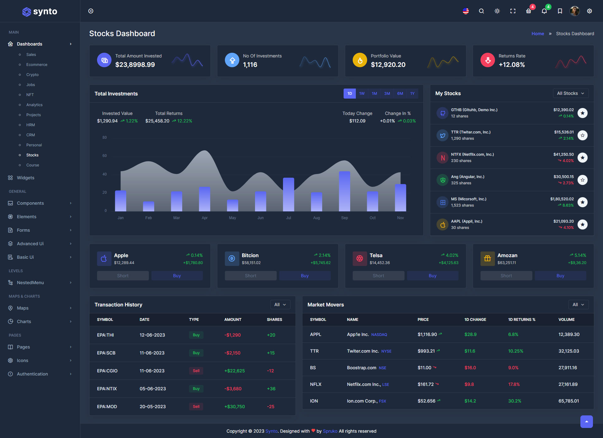 This Synto React TypeScript Admin template comes with 12 beautiful dashboards and different types of themes. So that users can choose their best theme and customize the template according to their choice.