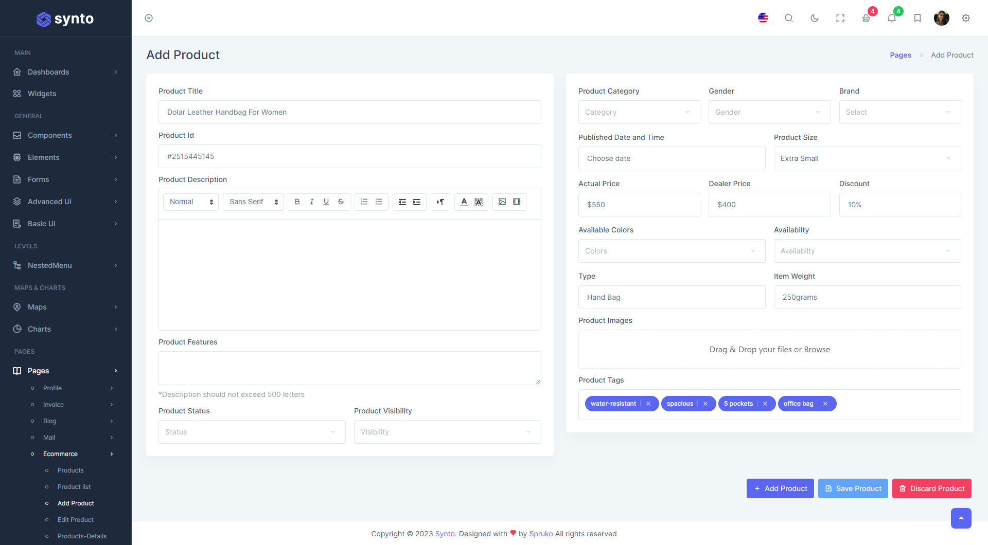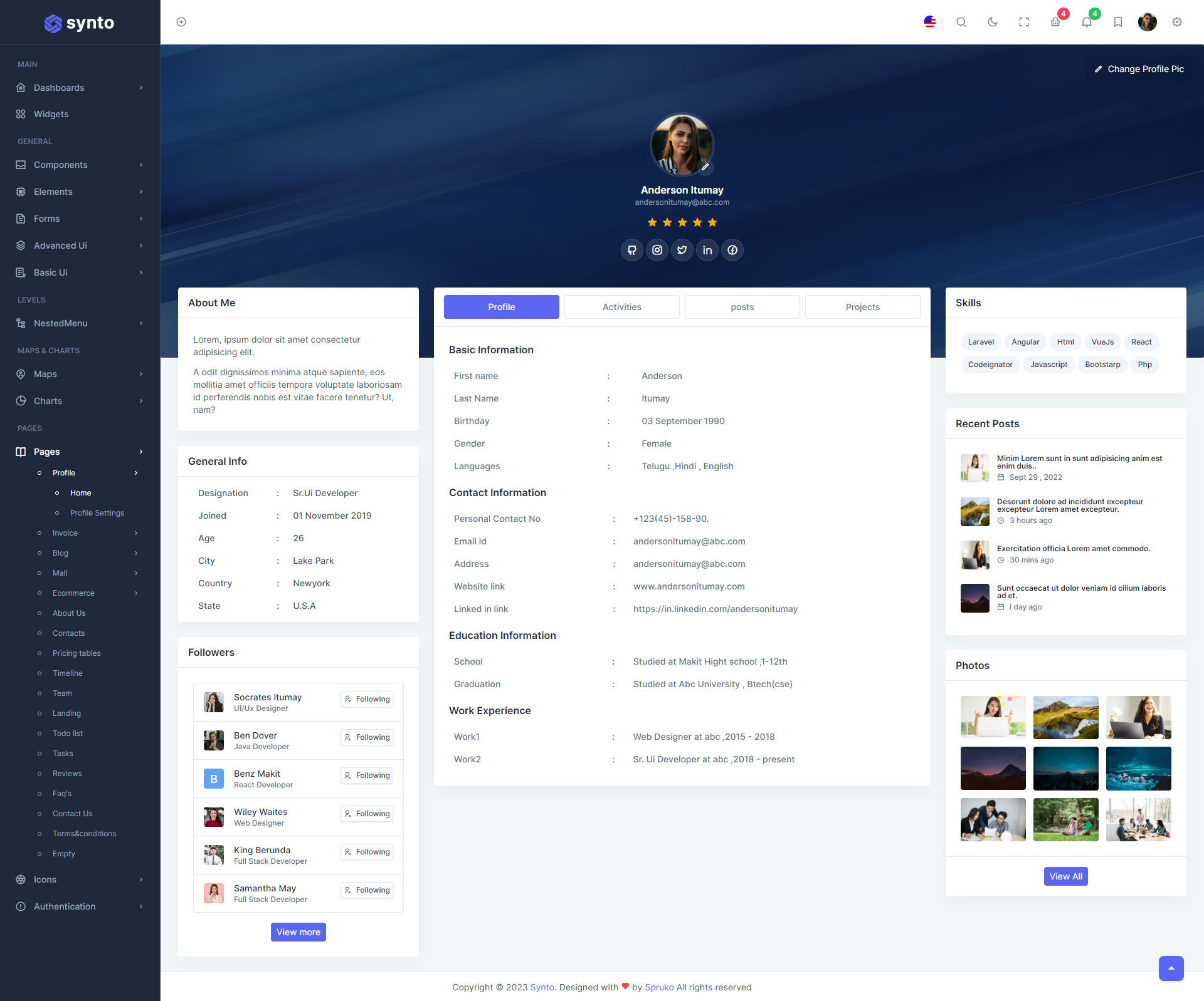 This is a basic information related to “Synto React JavaScript Admin & Dashboard Template”.