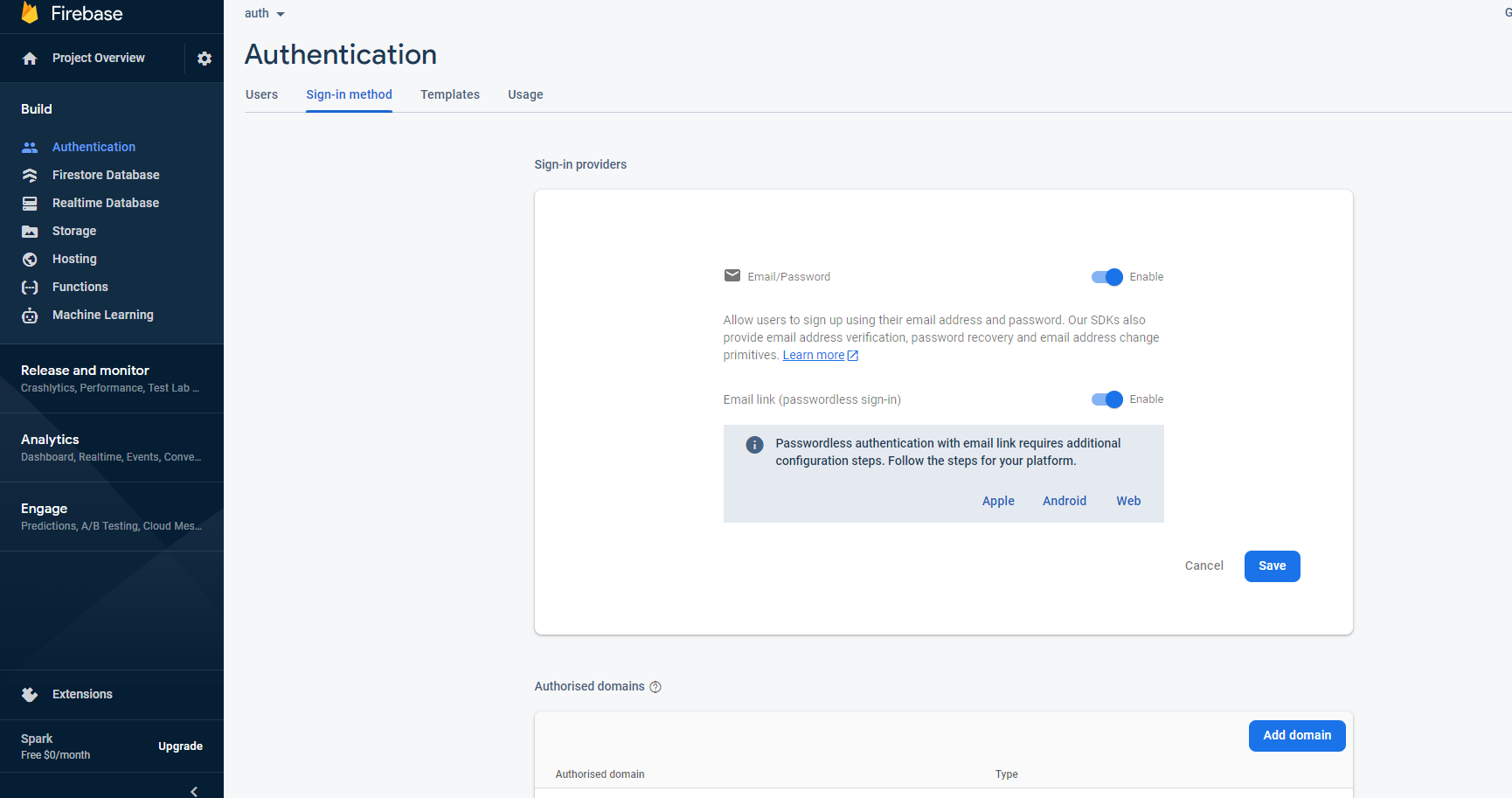 step-2: Add firebase API configuration details(create database on firebase) to the firebase Auth Component refer the path (syntoJS/src/layout/firebase/firebase.tsx component)