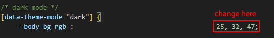 Also Change the following variable colors to the desired theme background accordingly in [data-theme-mode="dark"]
