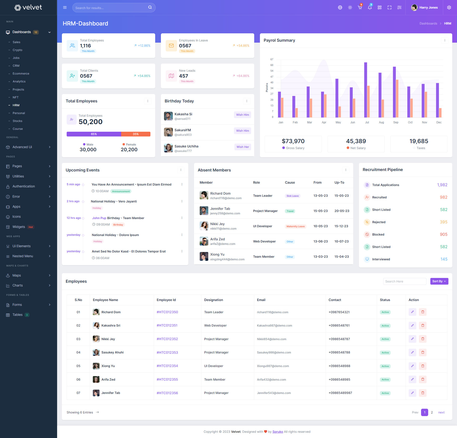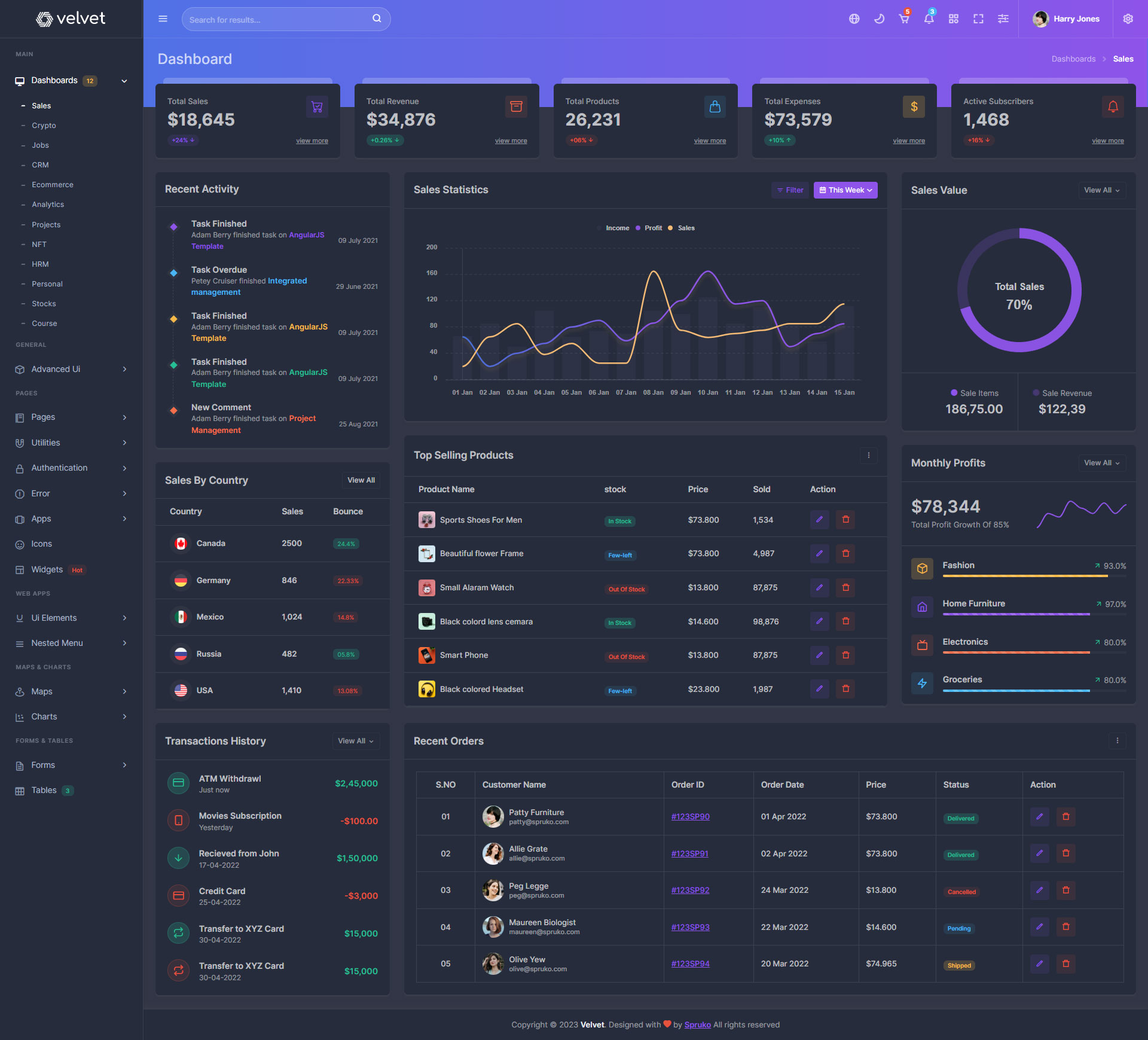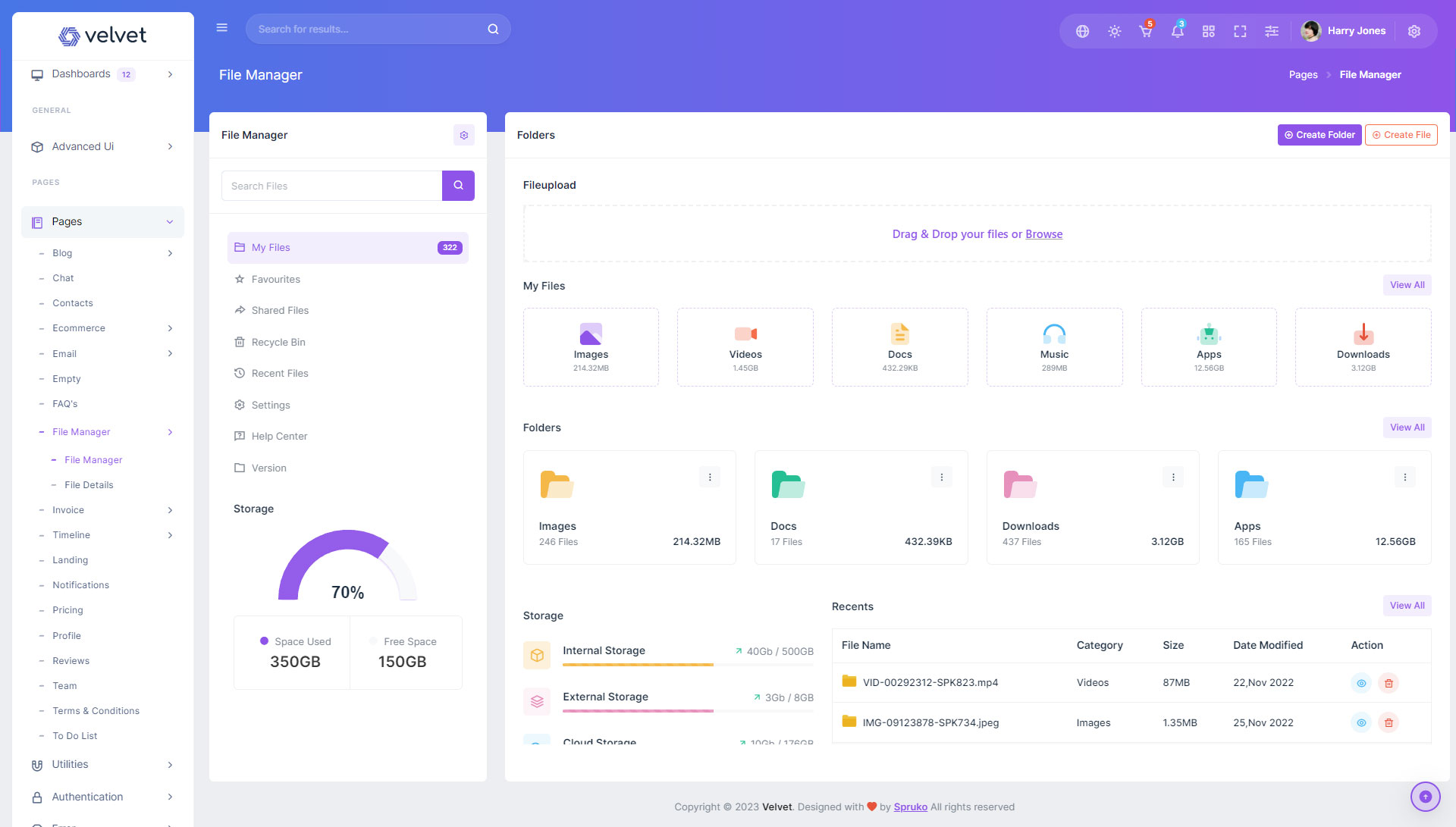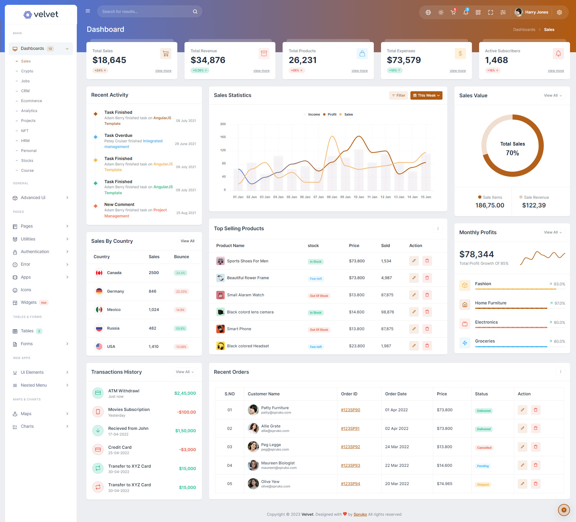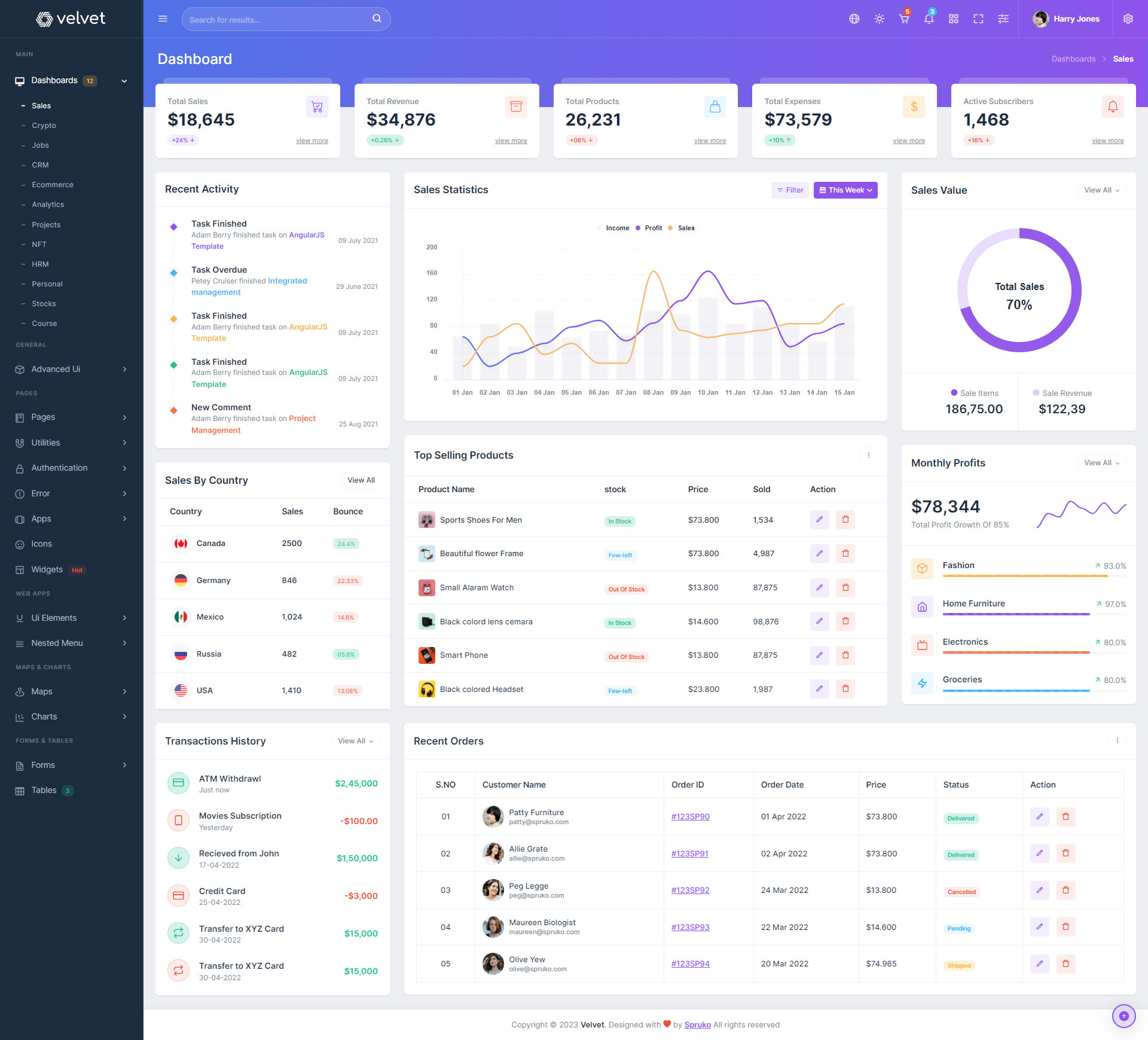 Velvet admin template comes with ready to use features. It has lots of ready-made features saves more time for developers.