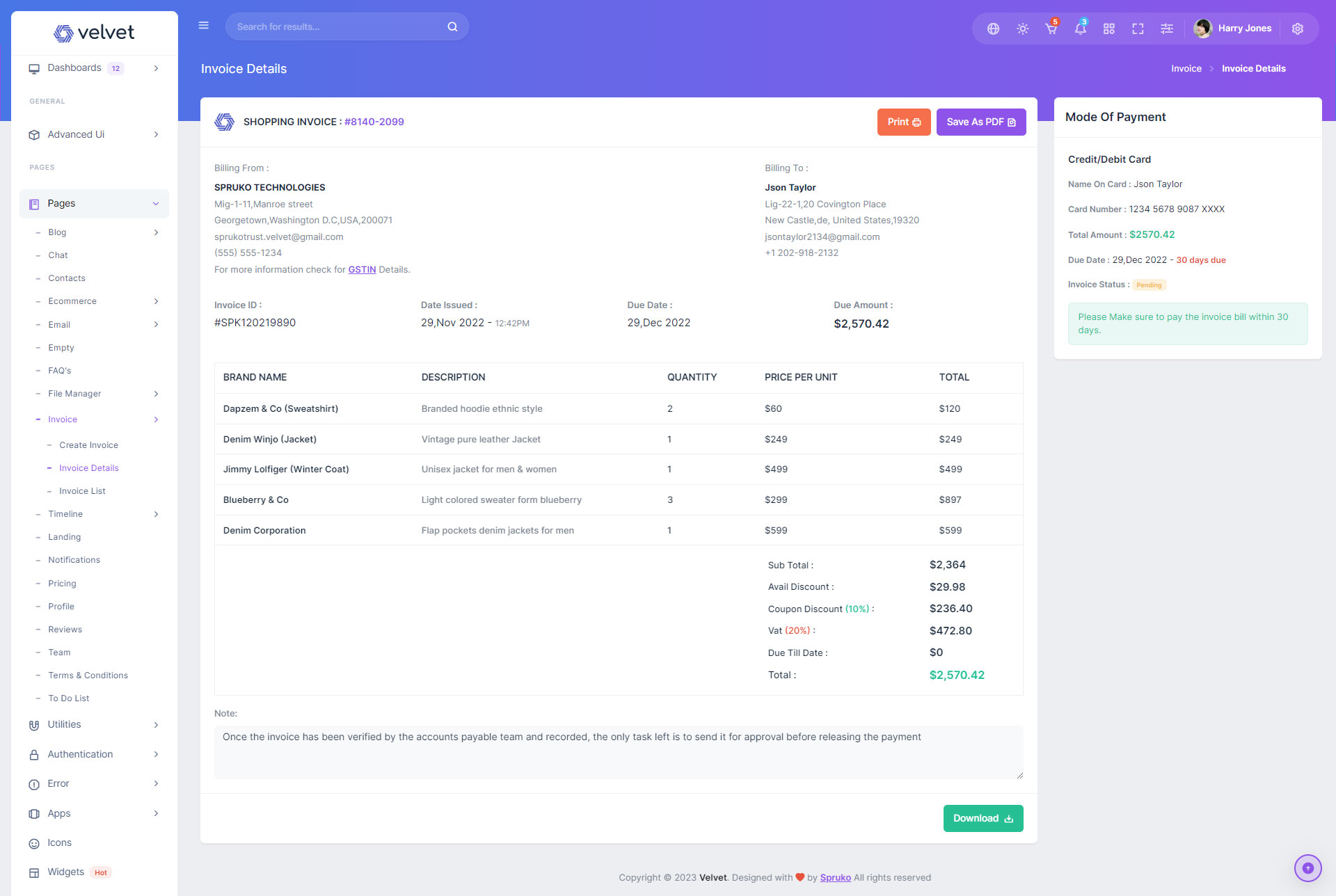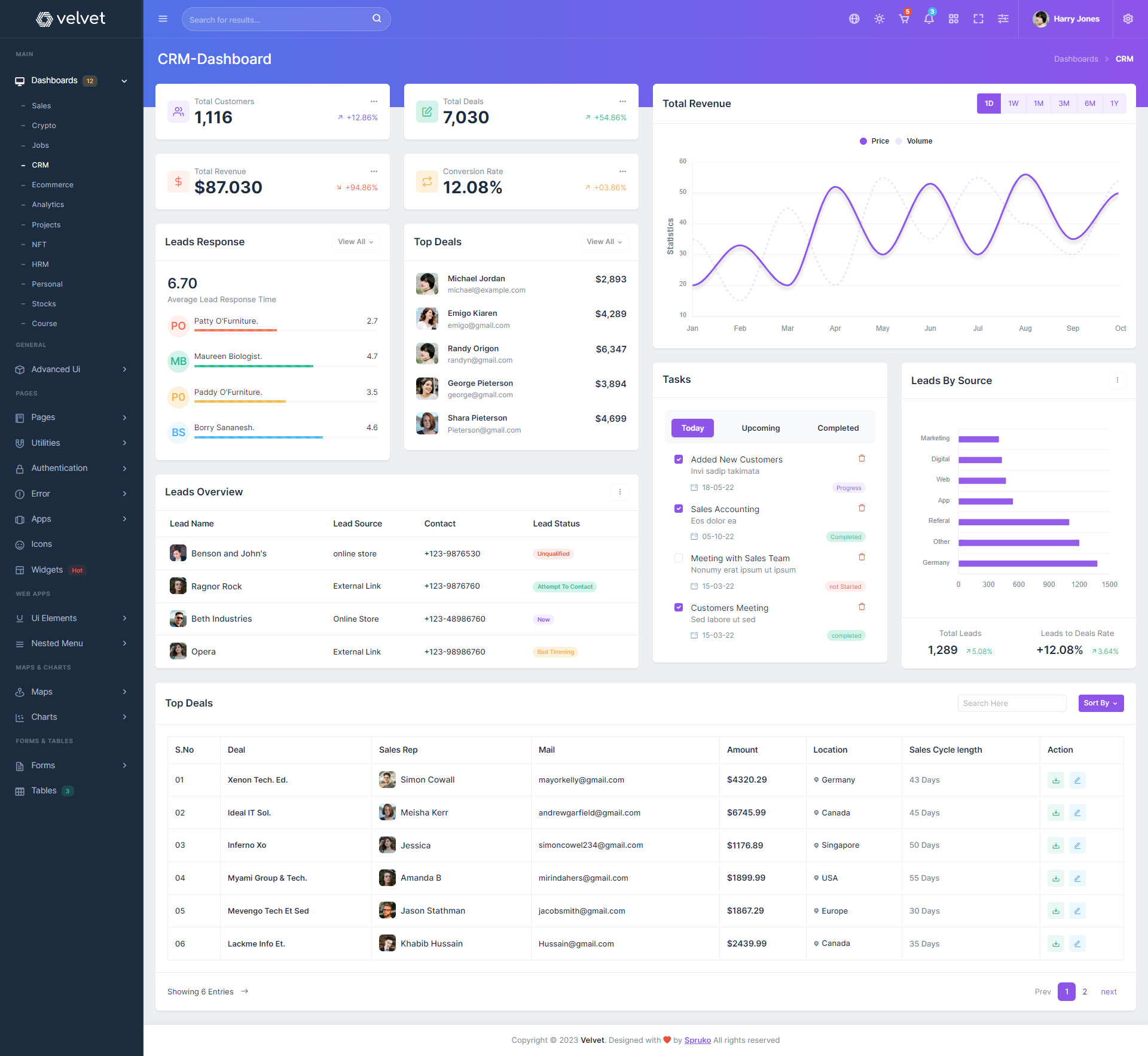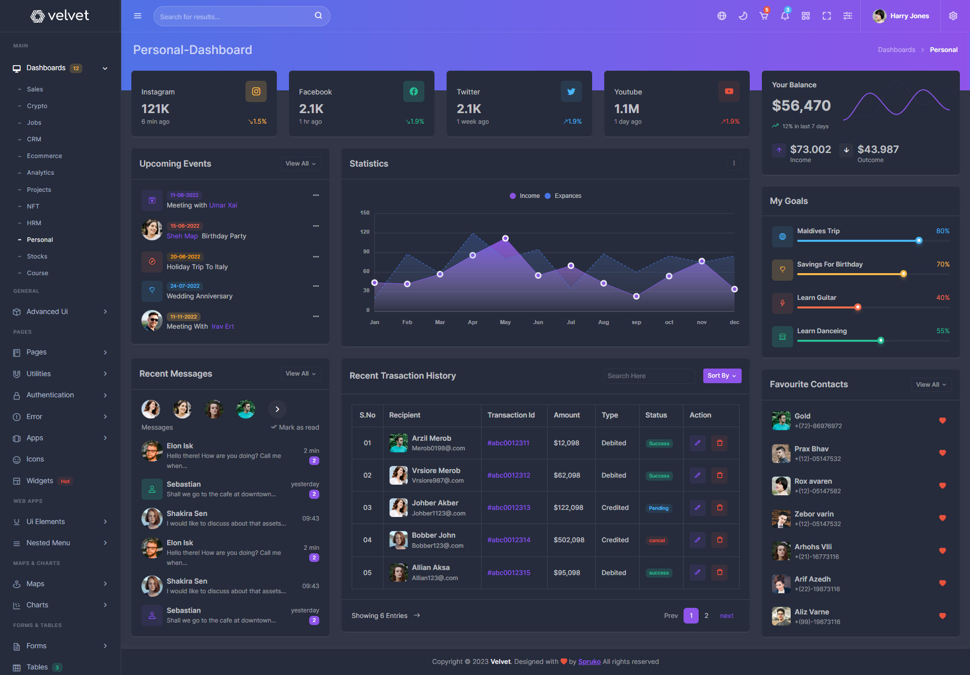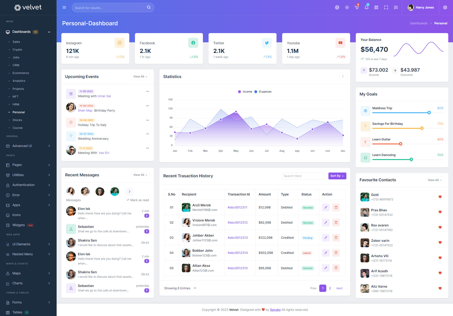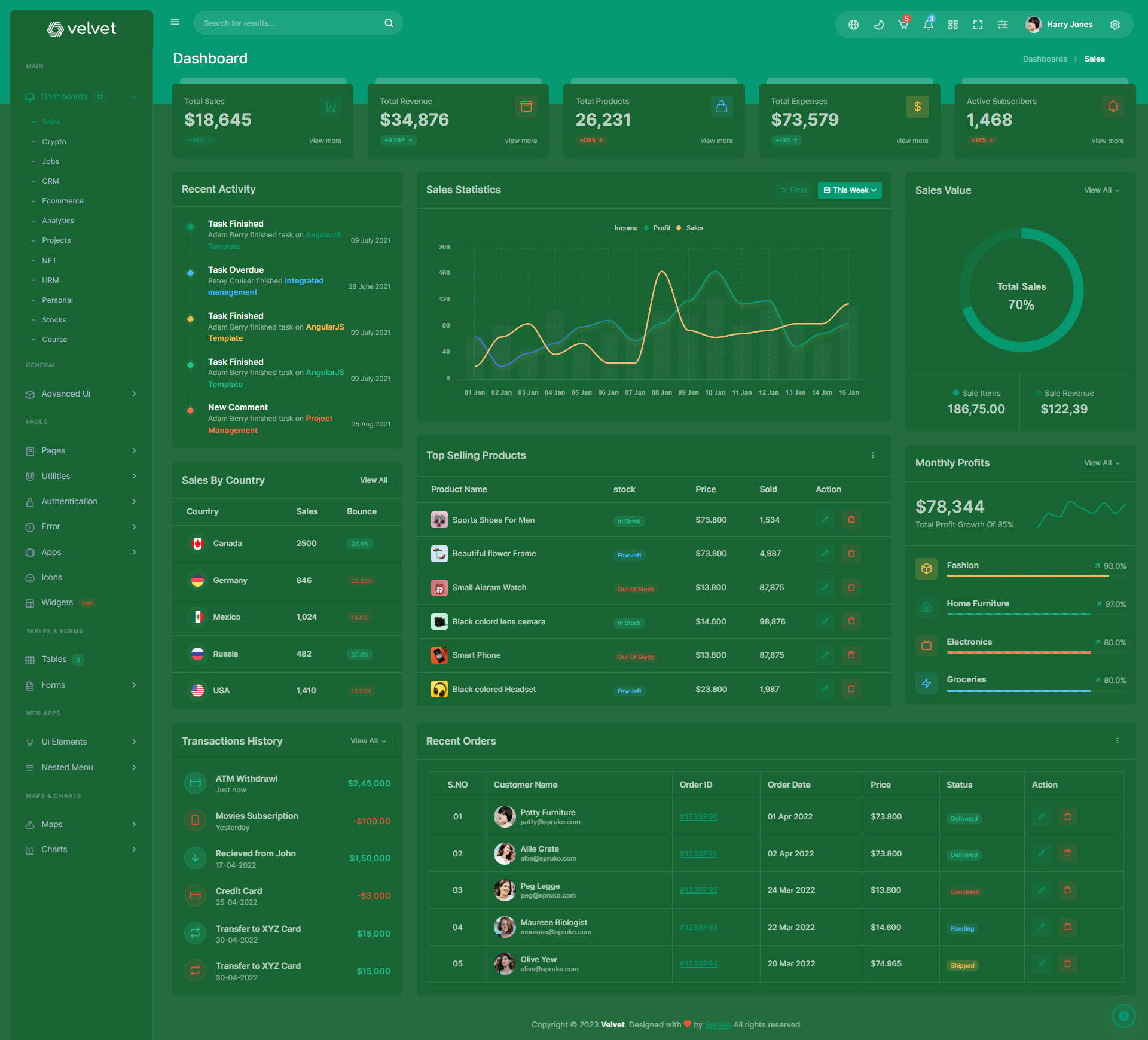 Velvet admin template comes with ready to use features. It has lots of ready-made features saves more time for developers.