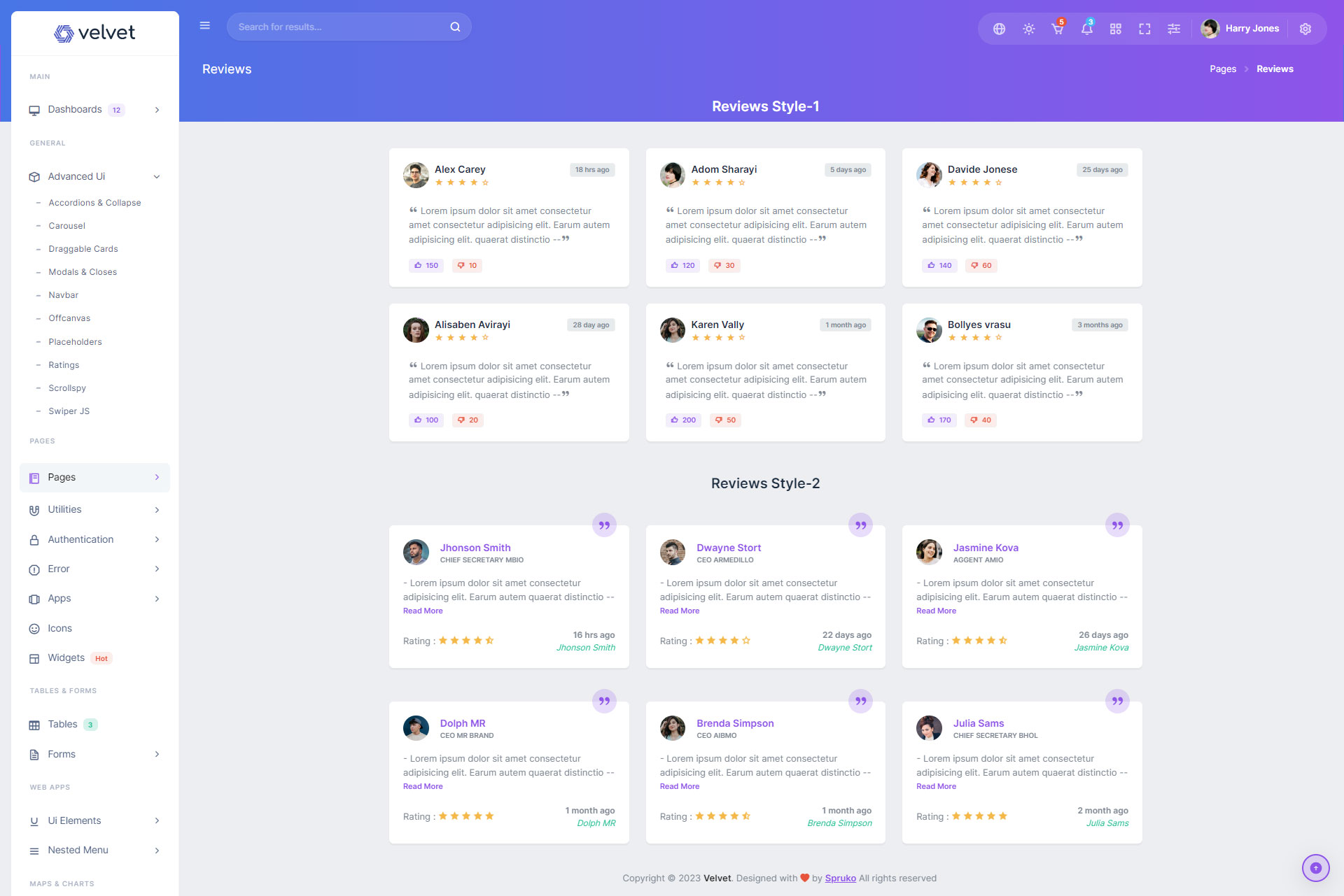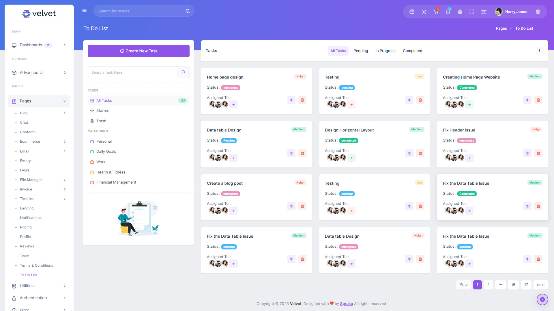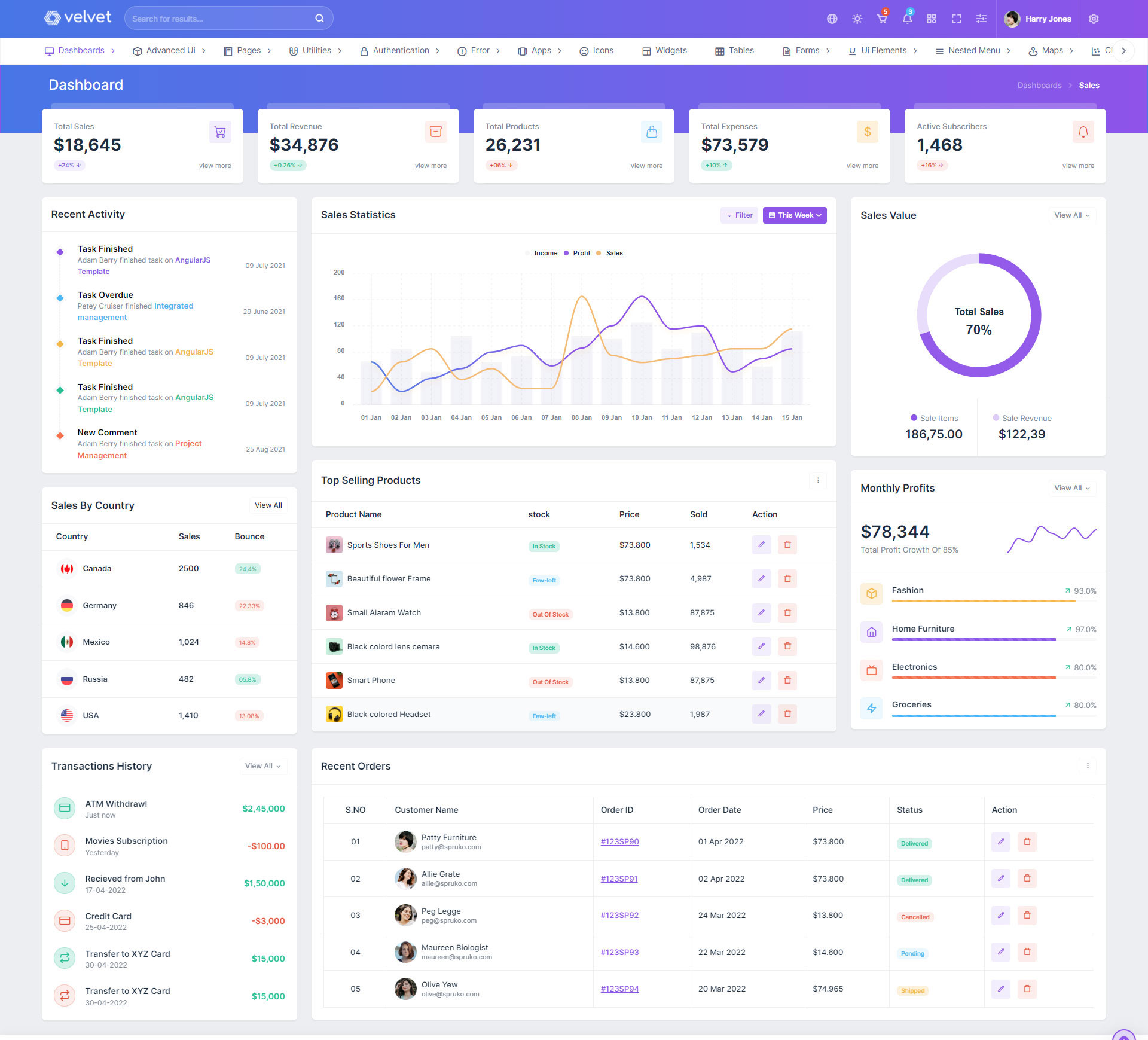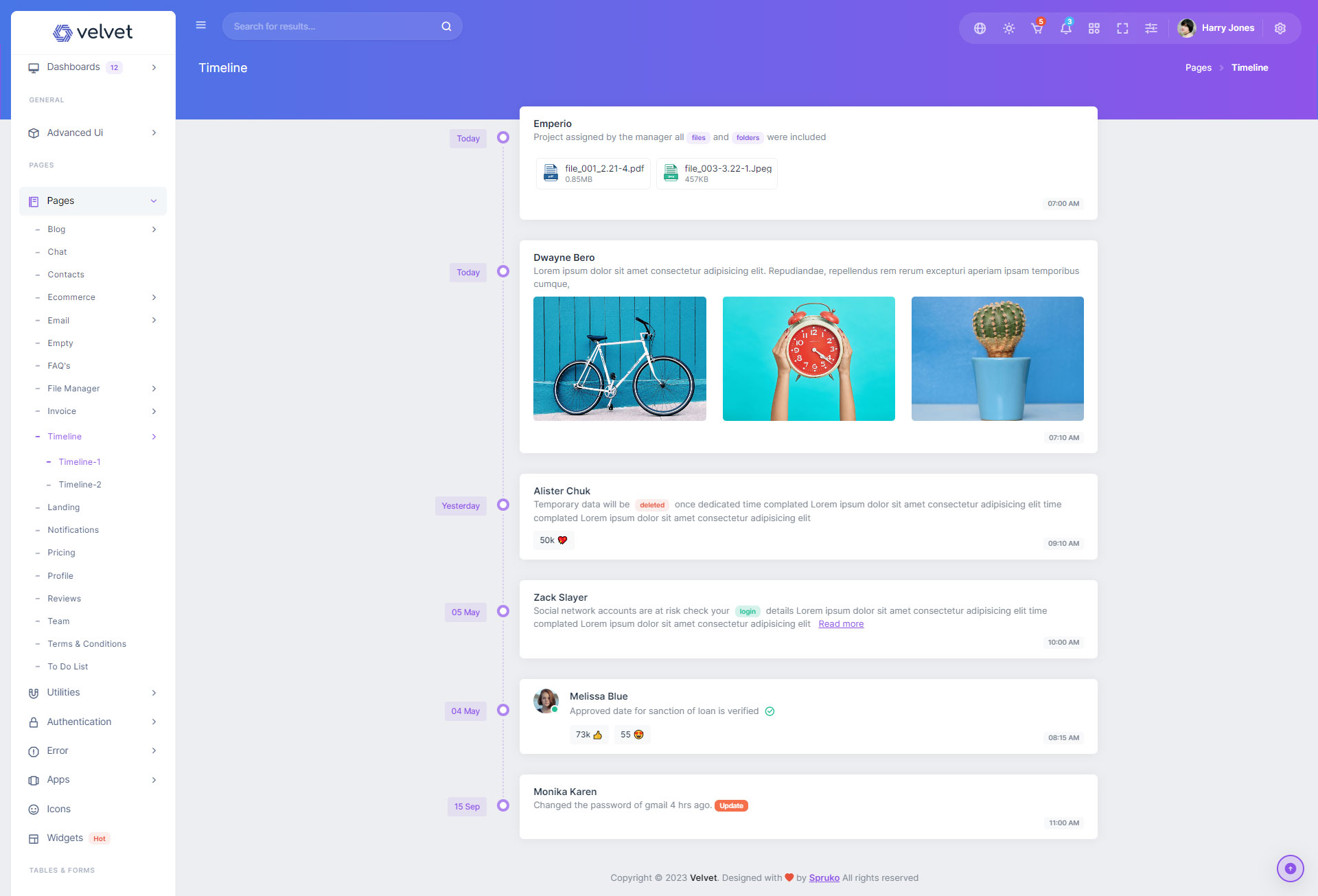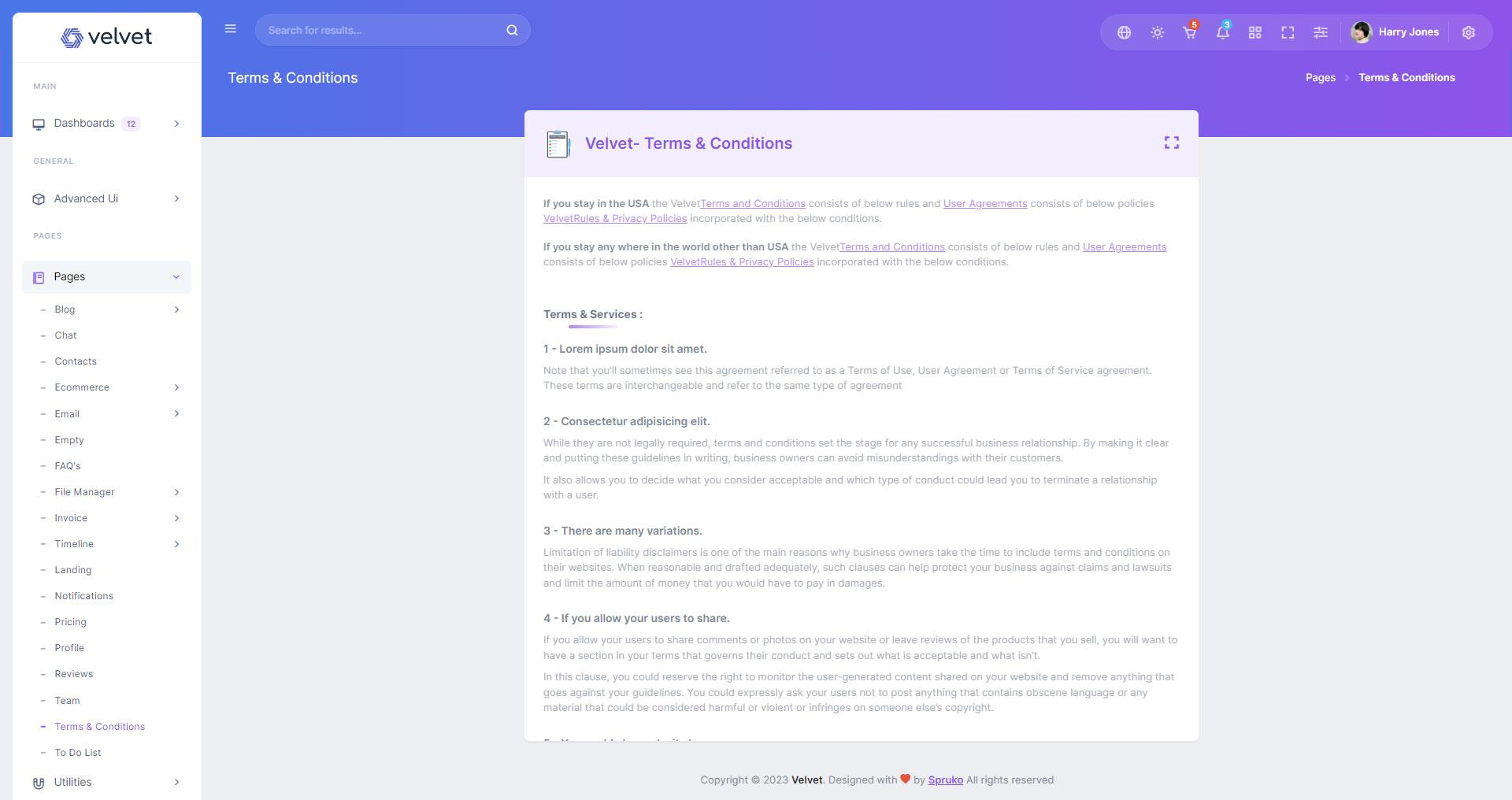 Here are some of the pages in Velvet admin template ui design, no need of additional customization required, designed perfectly for ready to use template.