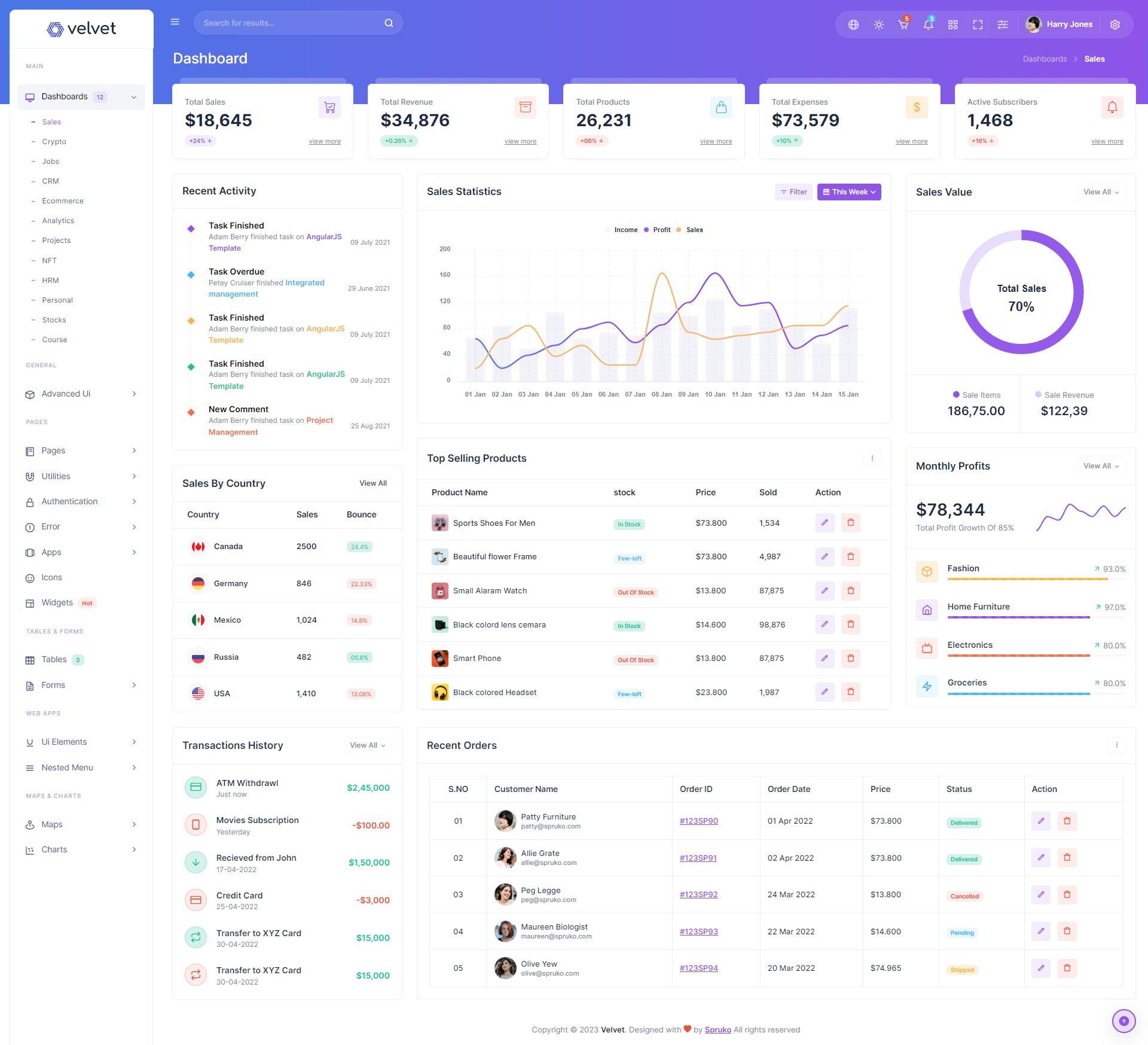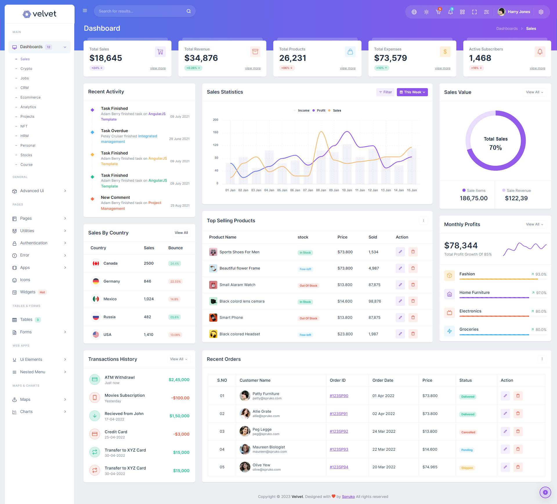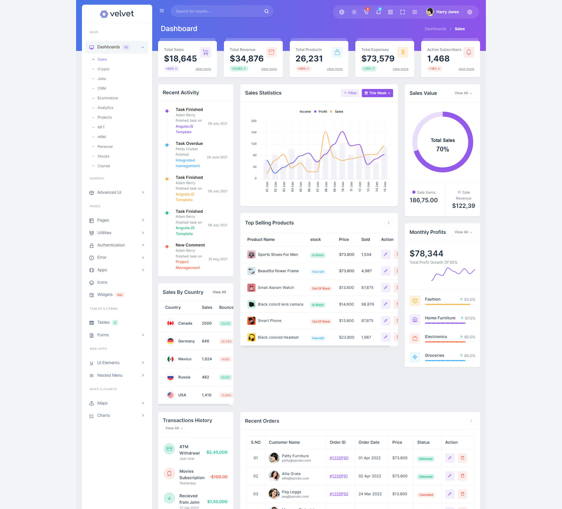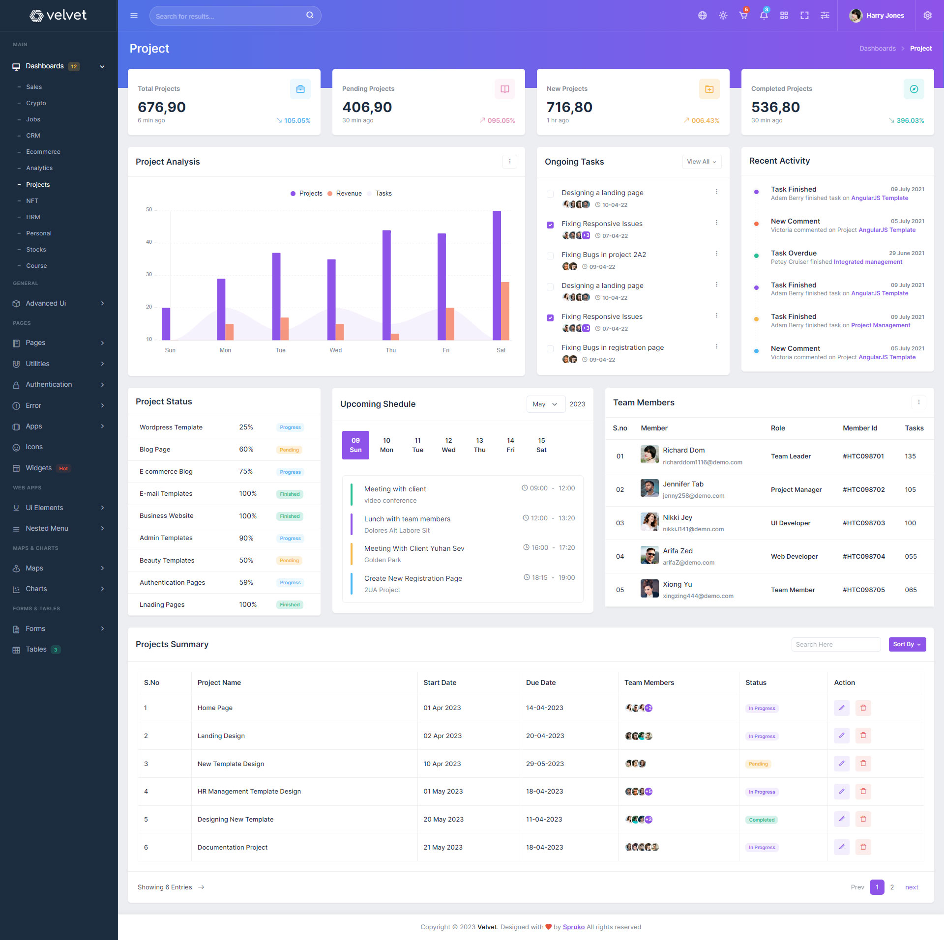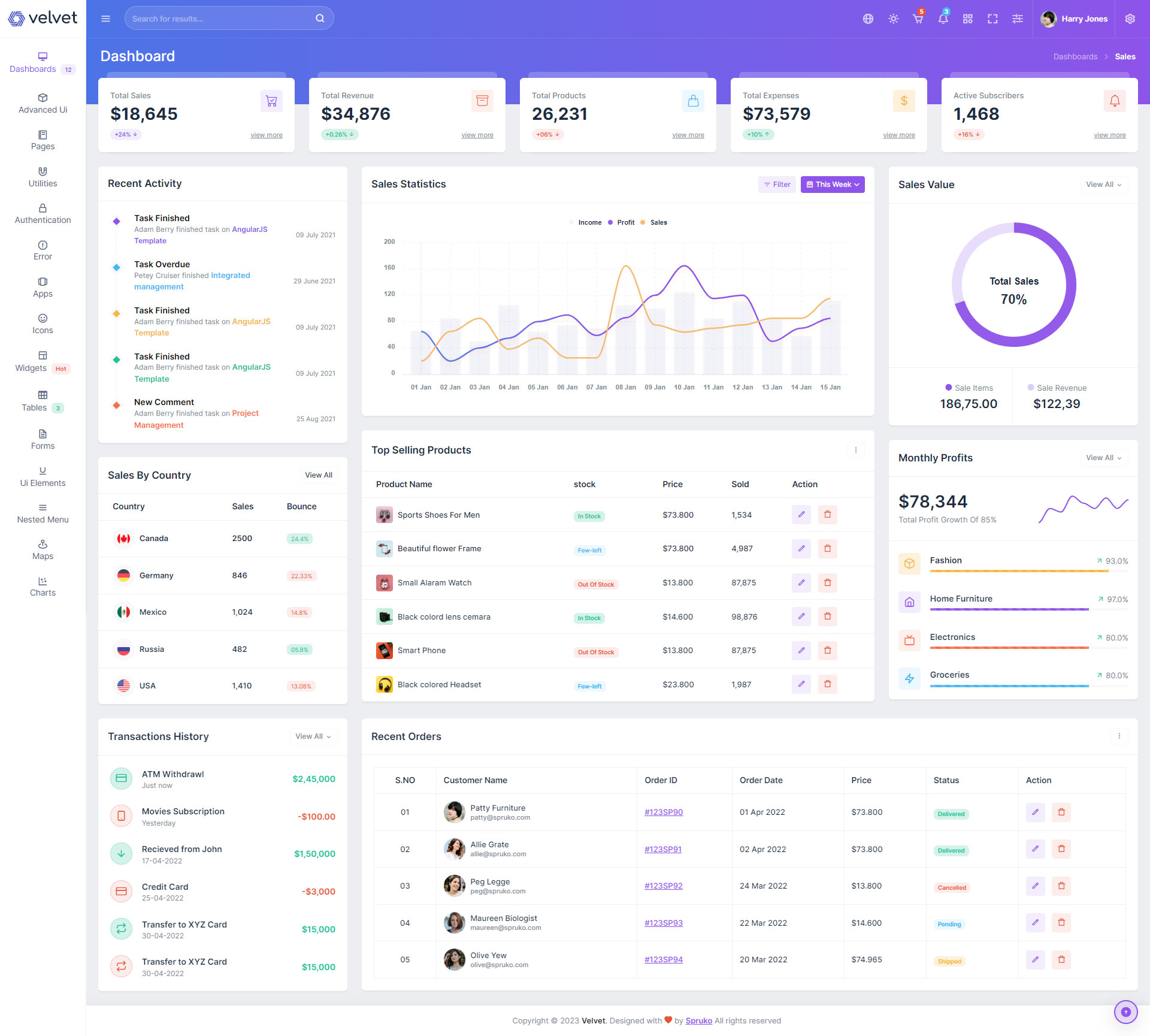 Here are some of the pages in Velvet admin template ui design, no need of additional customization required, designed perfectly for ready to use template.