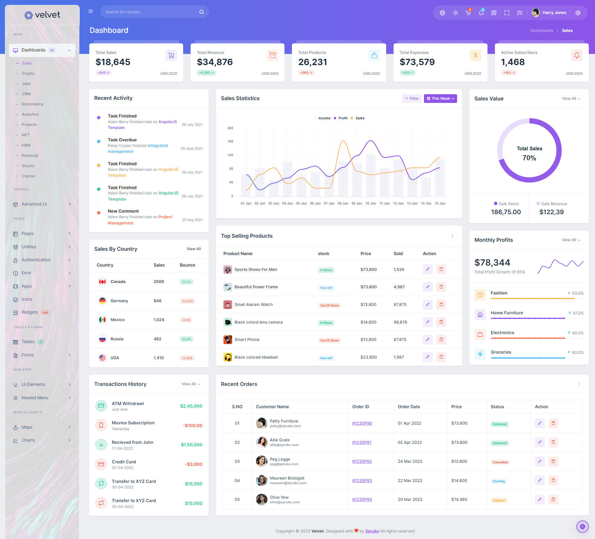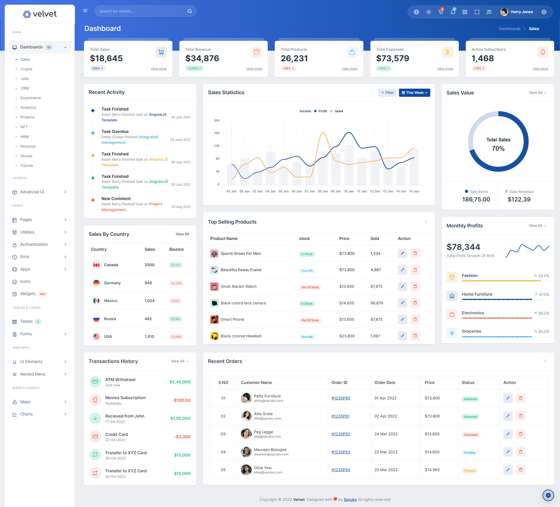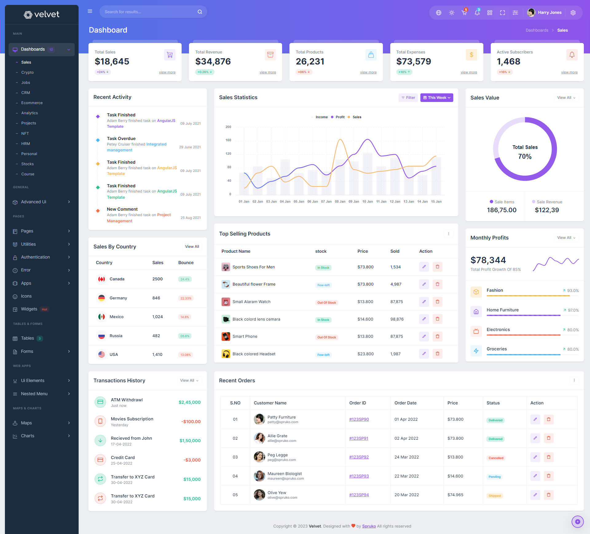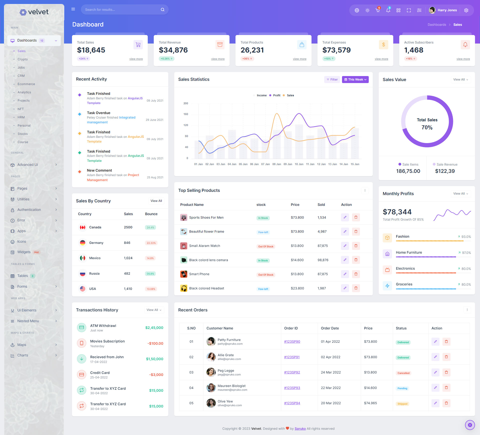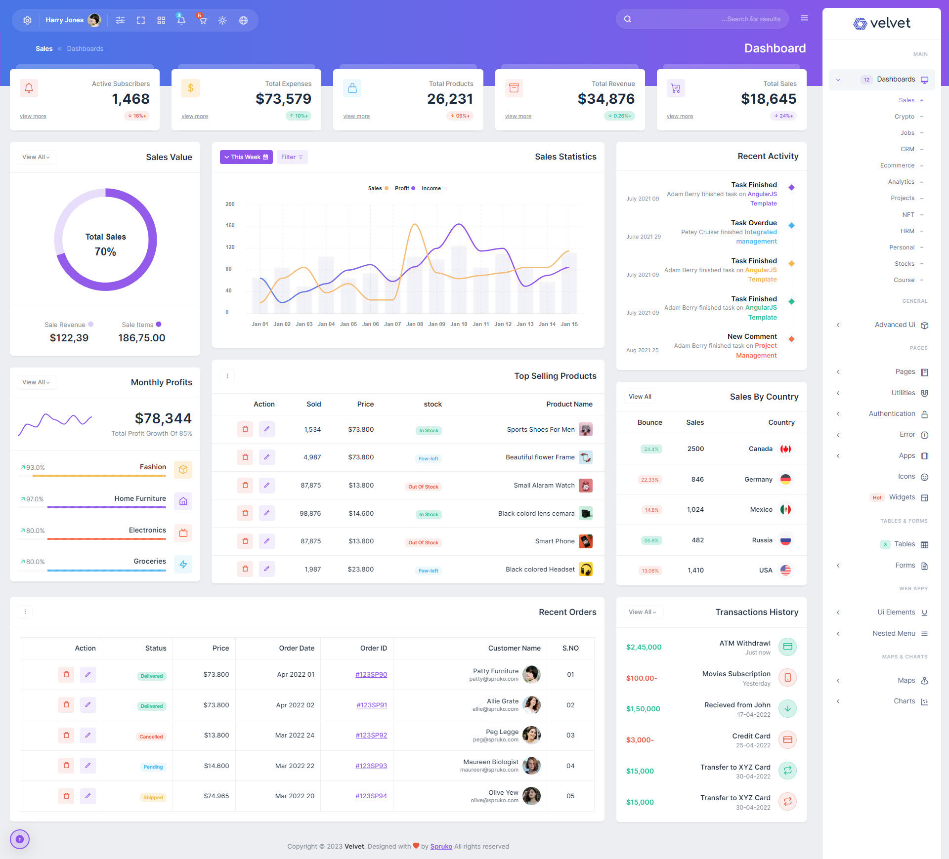 Here are some of the pages in Velvet admin template ui design, no need of additional customization required, designed perfectly for ready to use template.