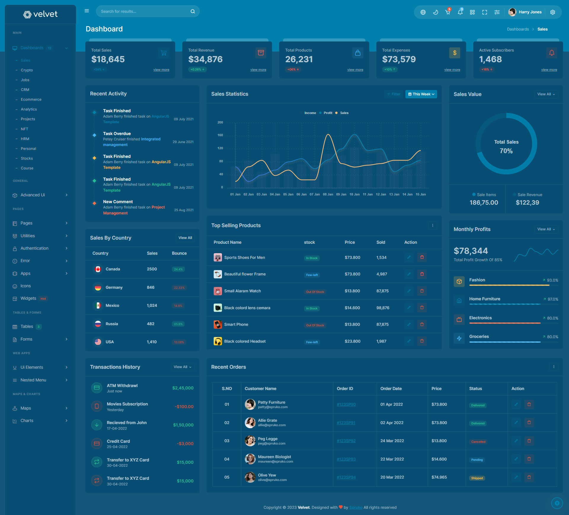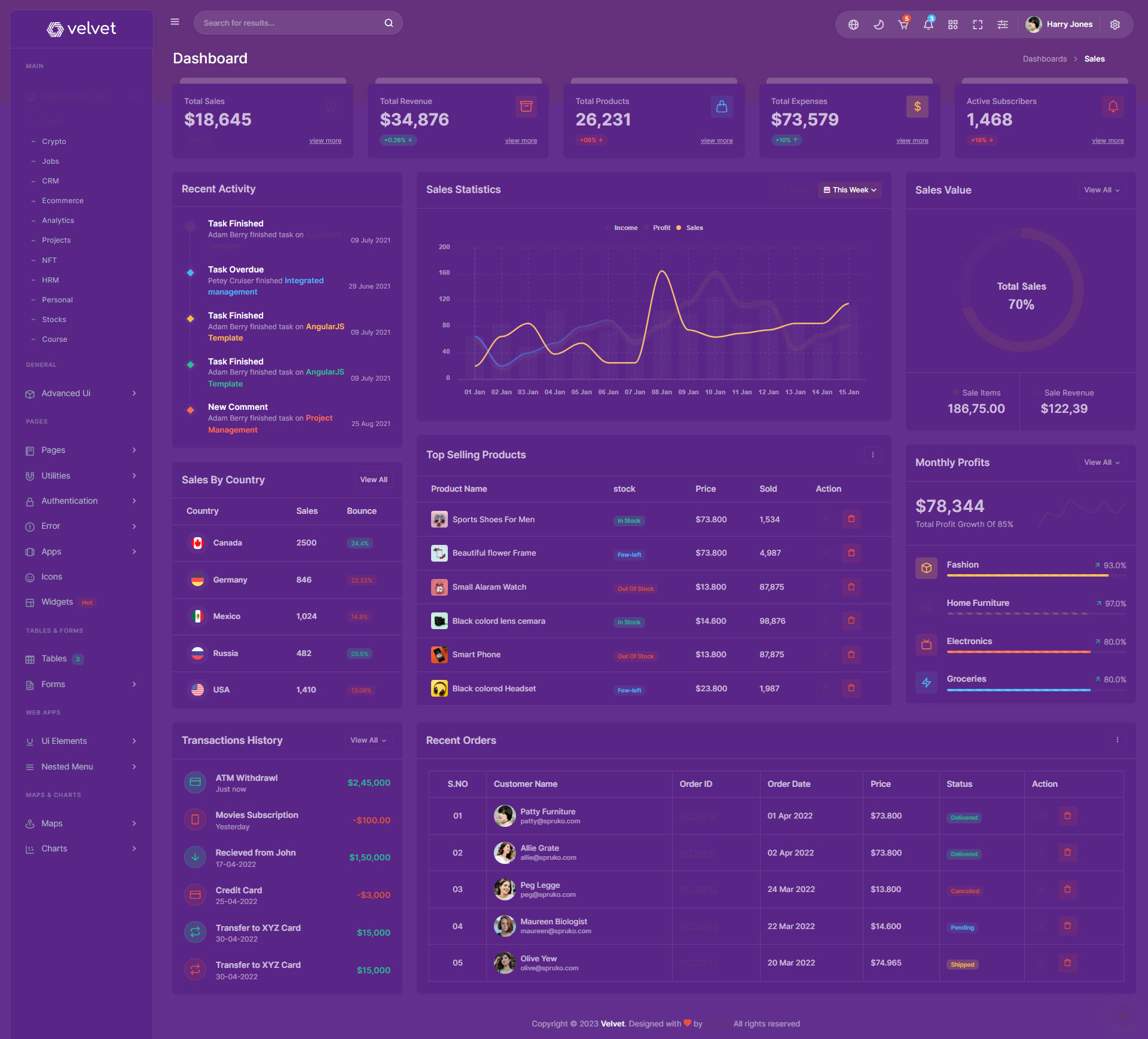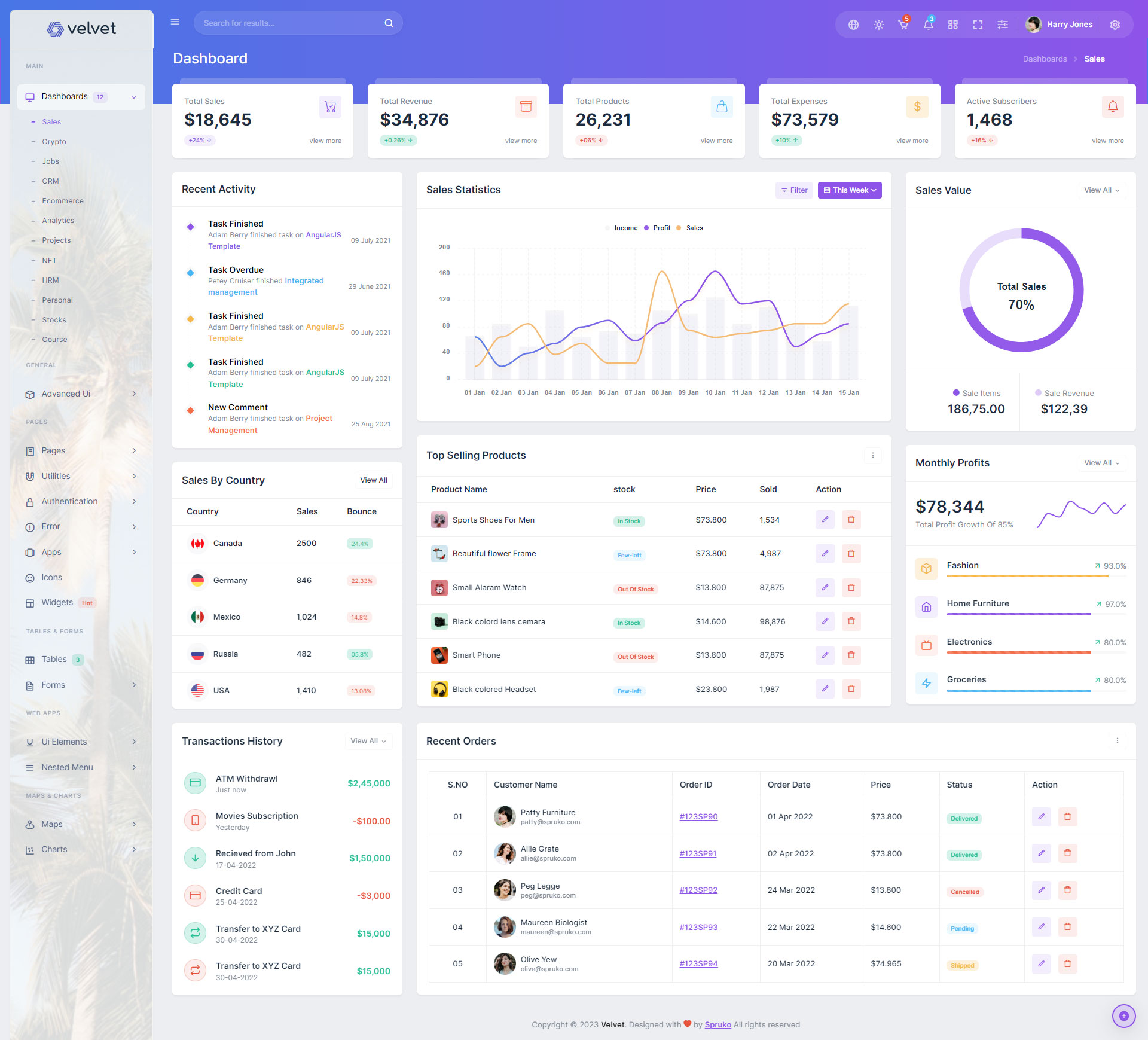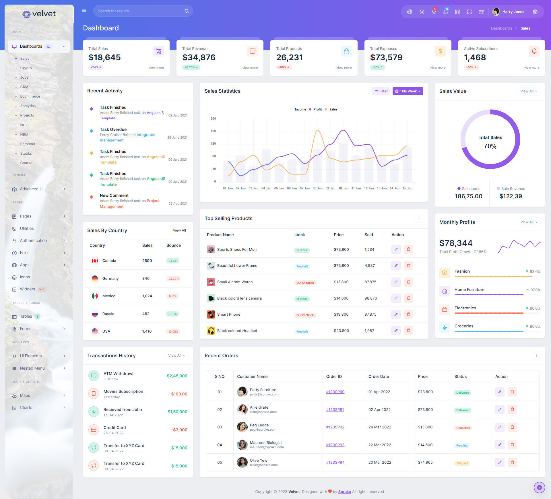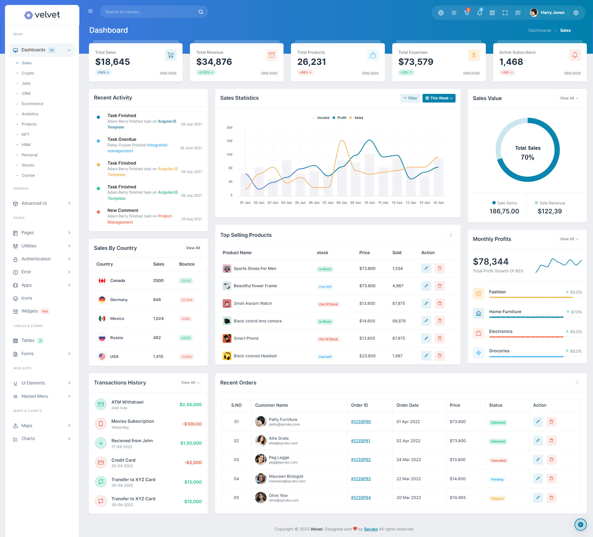 Here are some of the pages in Velvet admin template ui design, no need of additional customization required, designed perfectly for ready to use template.