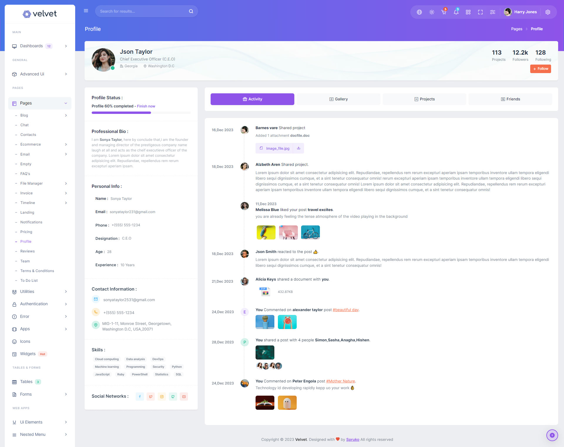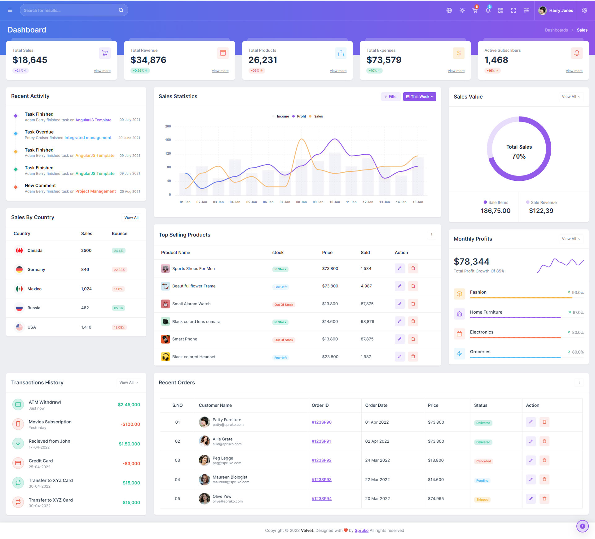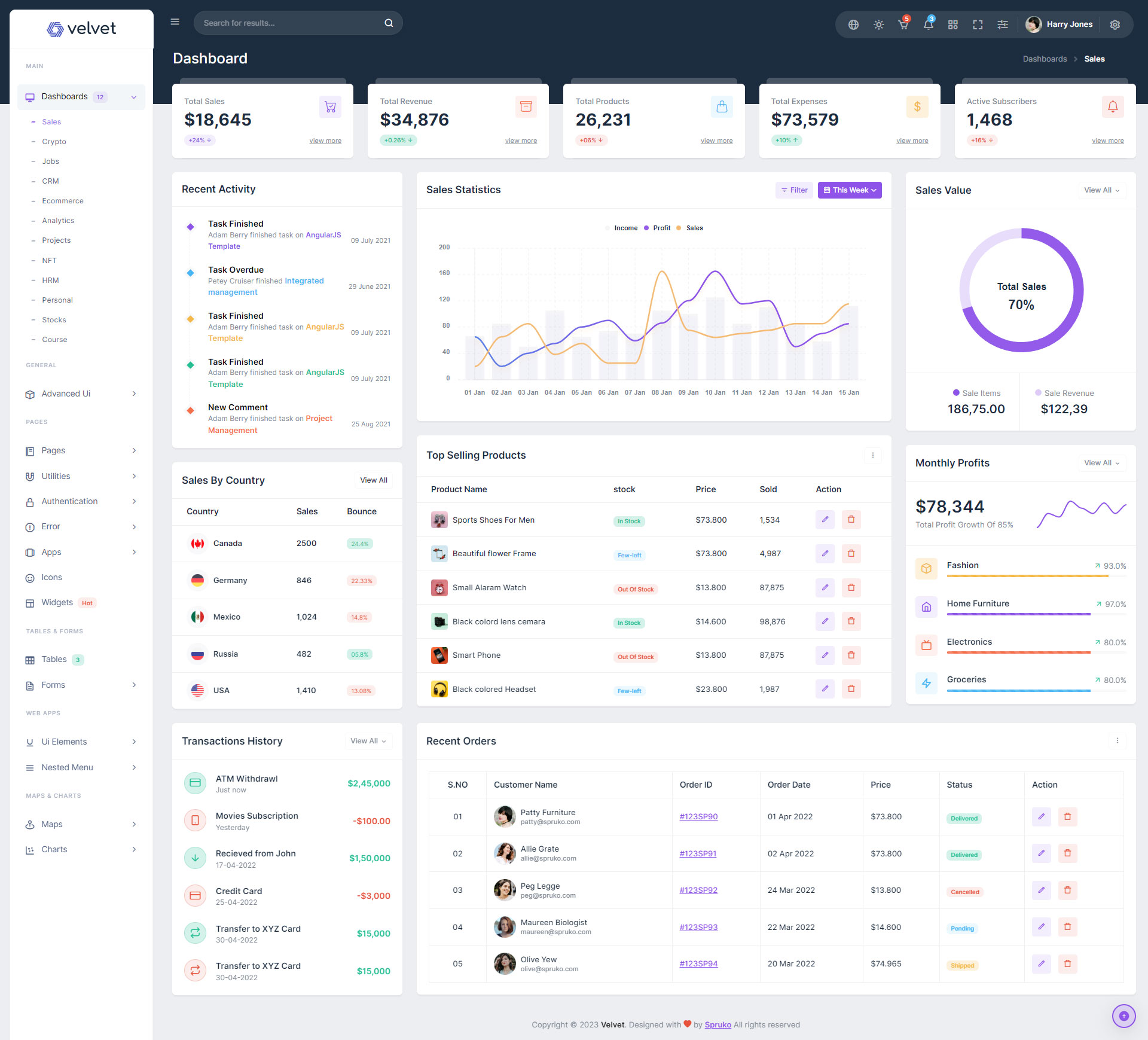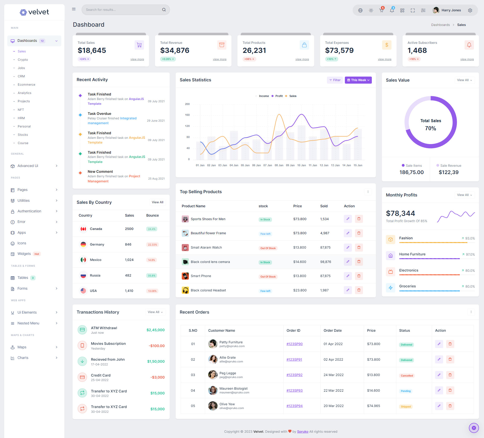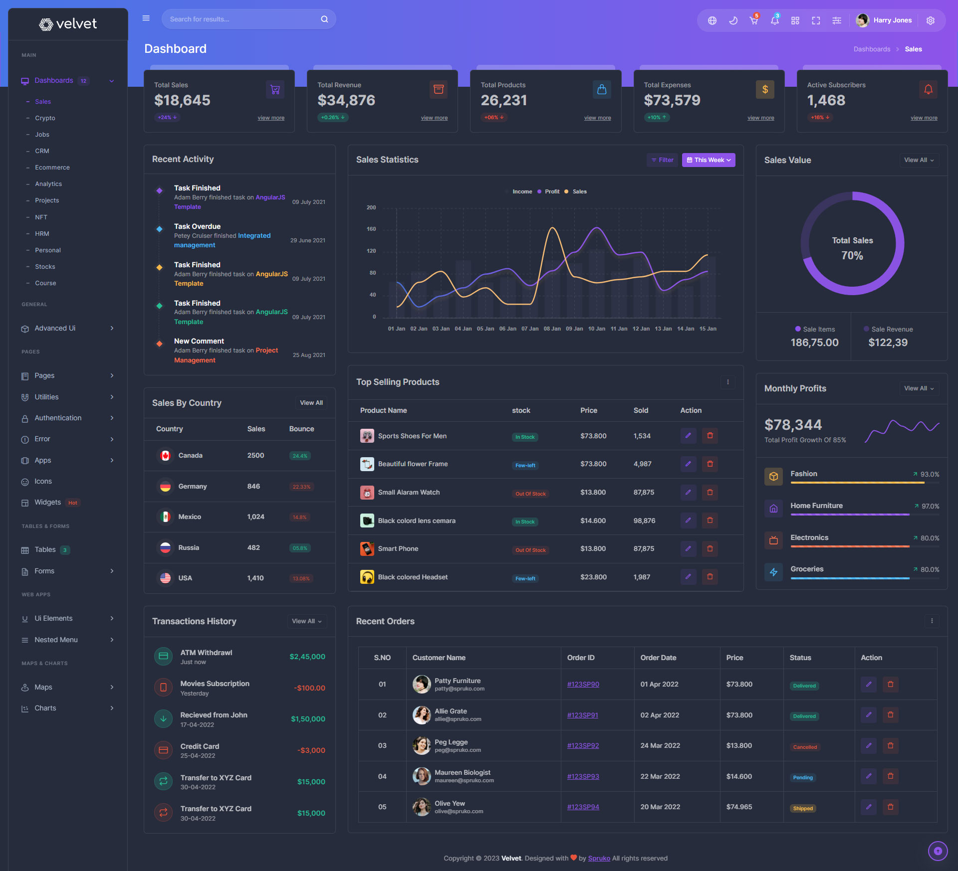 Here are some of the pages in Velvet admin template ui design, no need of additional customization required, designed perfectly for ready to use template.