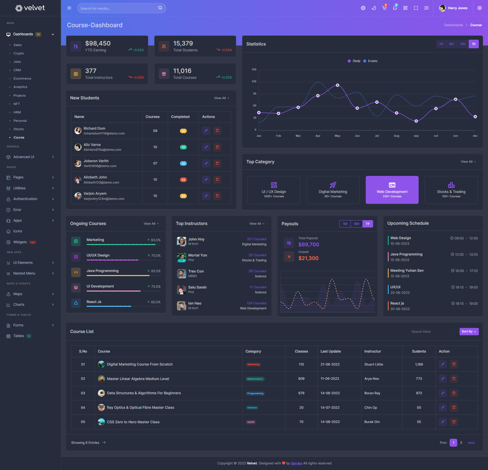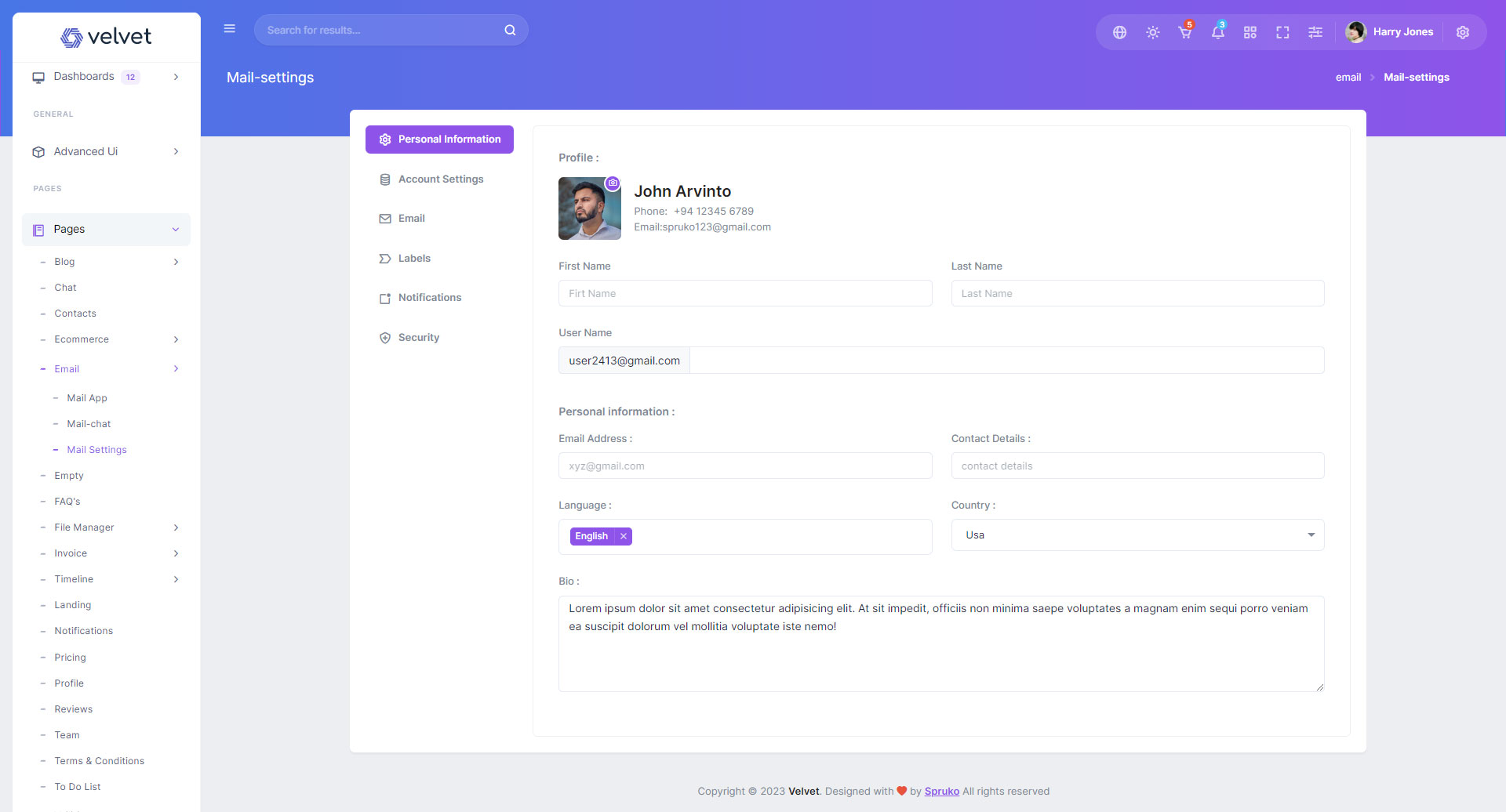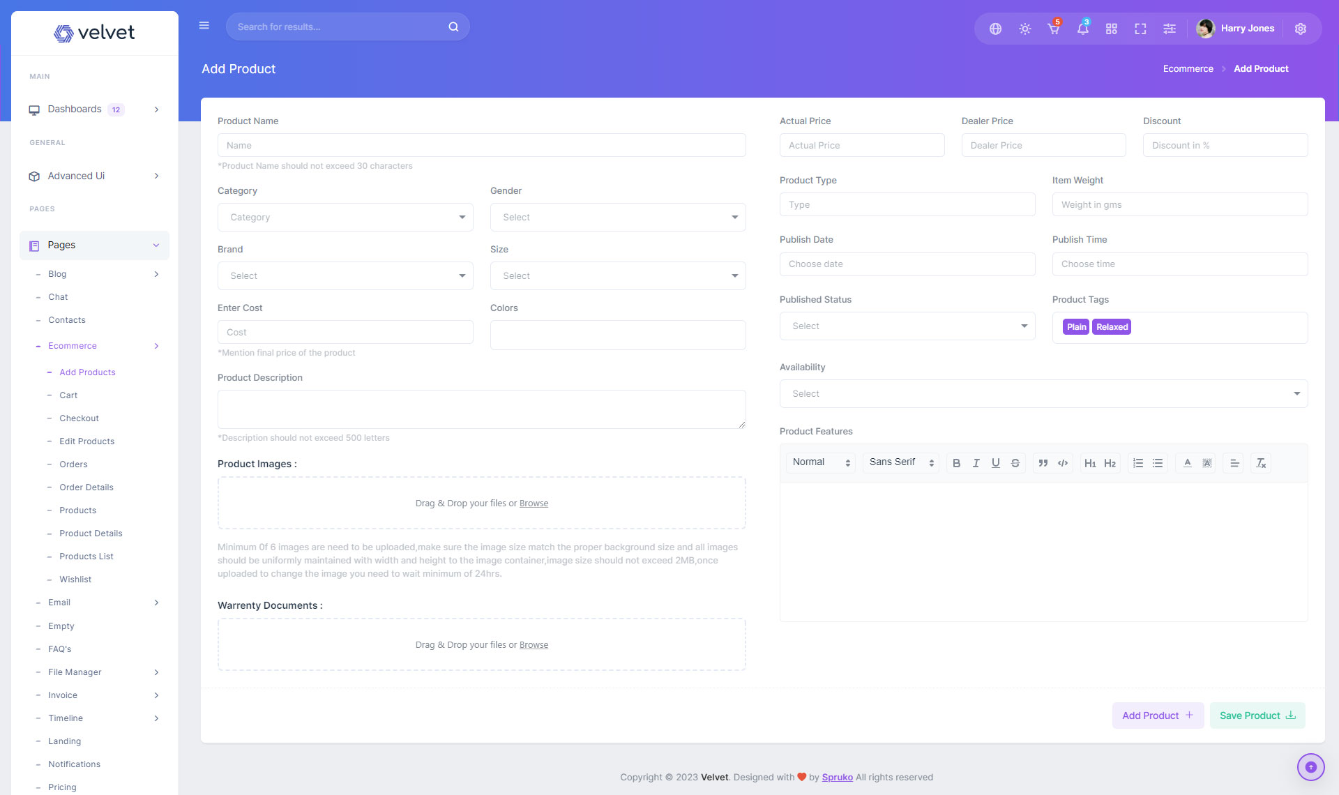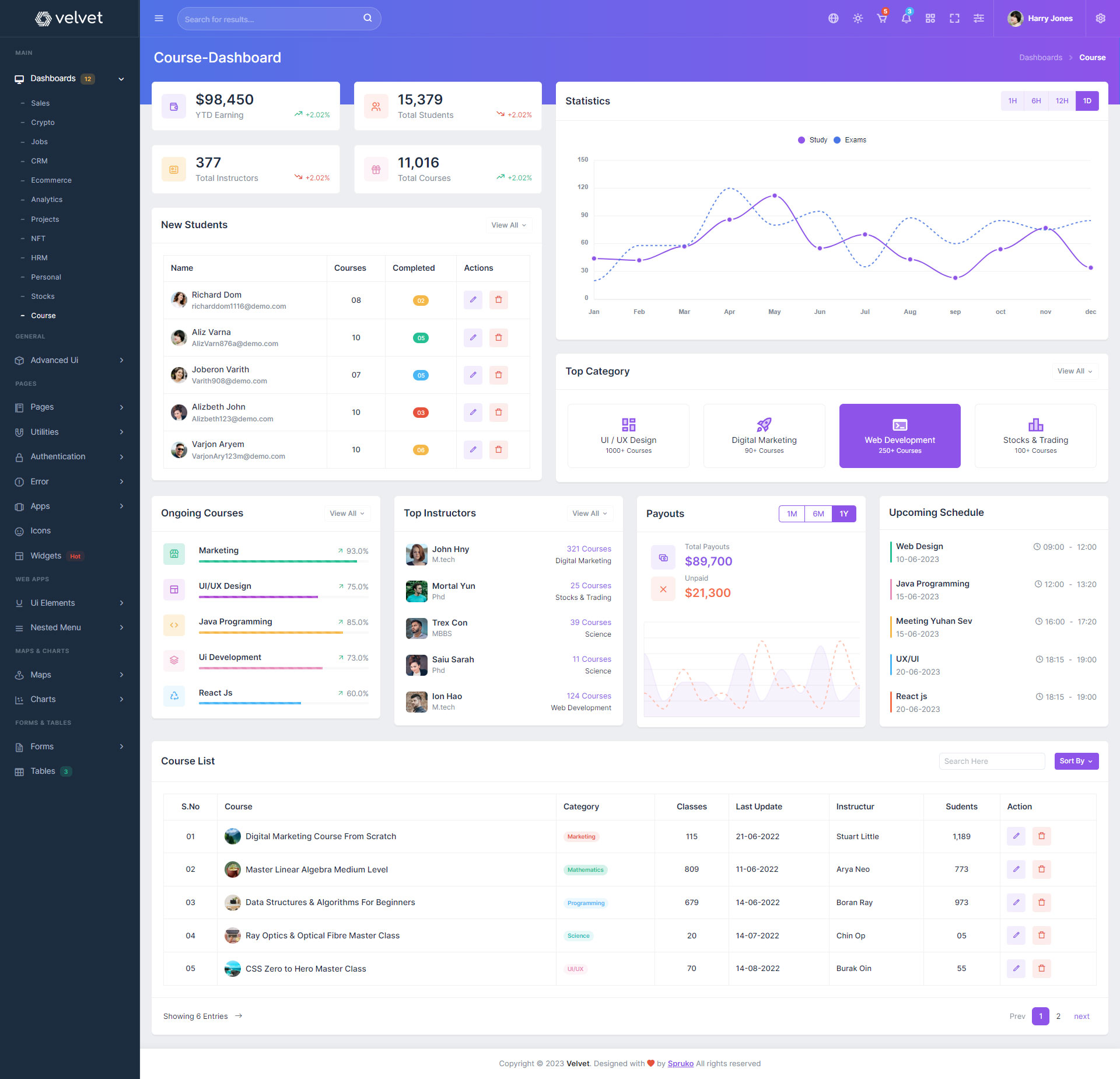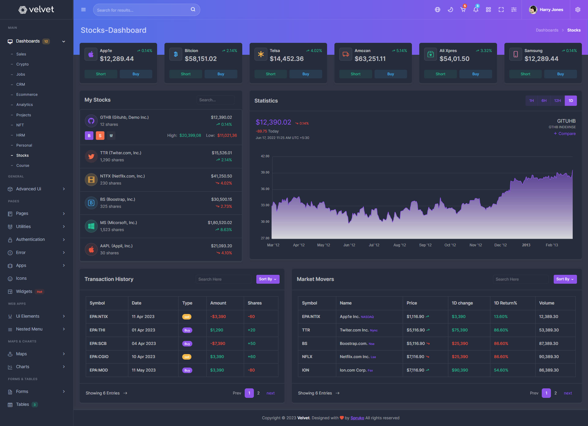 Here are some of the pages in Velvet admin template ui design, no need of additional customization required, designed perfectly for ready to use template.