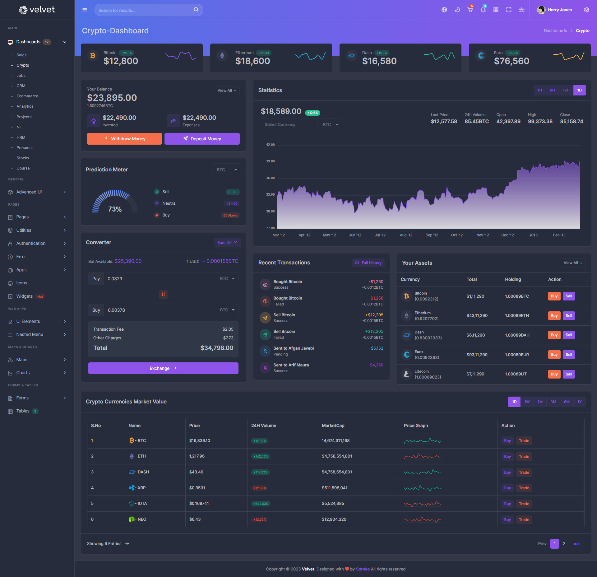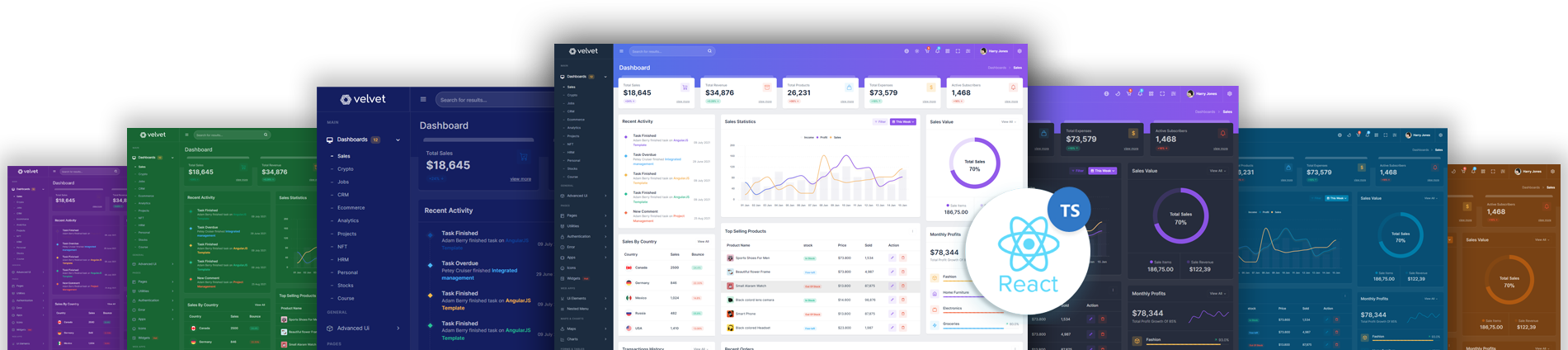 Here, Velvet 12 beautiful dashboards and comes with different types of themes. So that users can choose their best theme and customize the Velvet - React-Typescript Admin Template according to their choice.