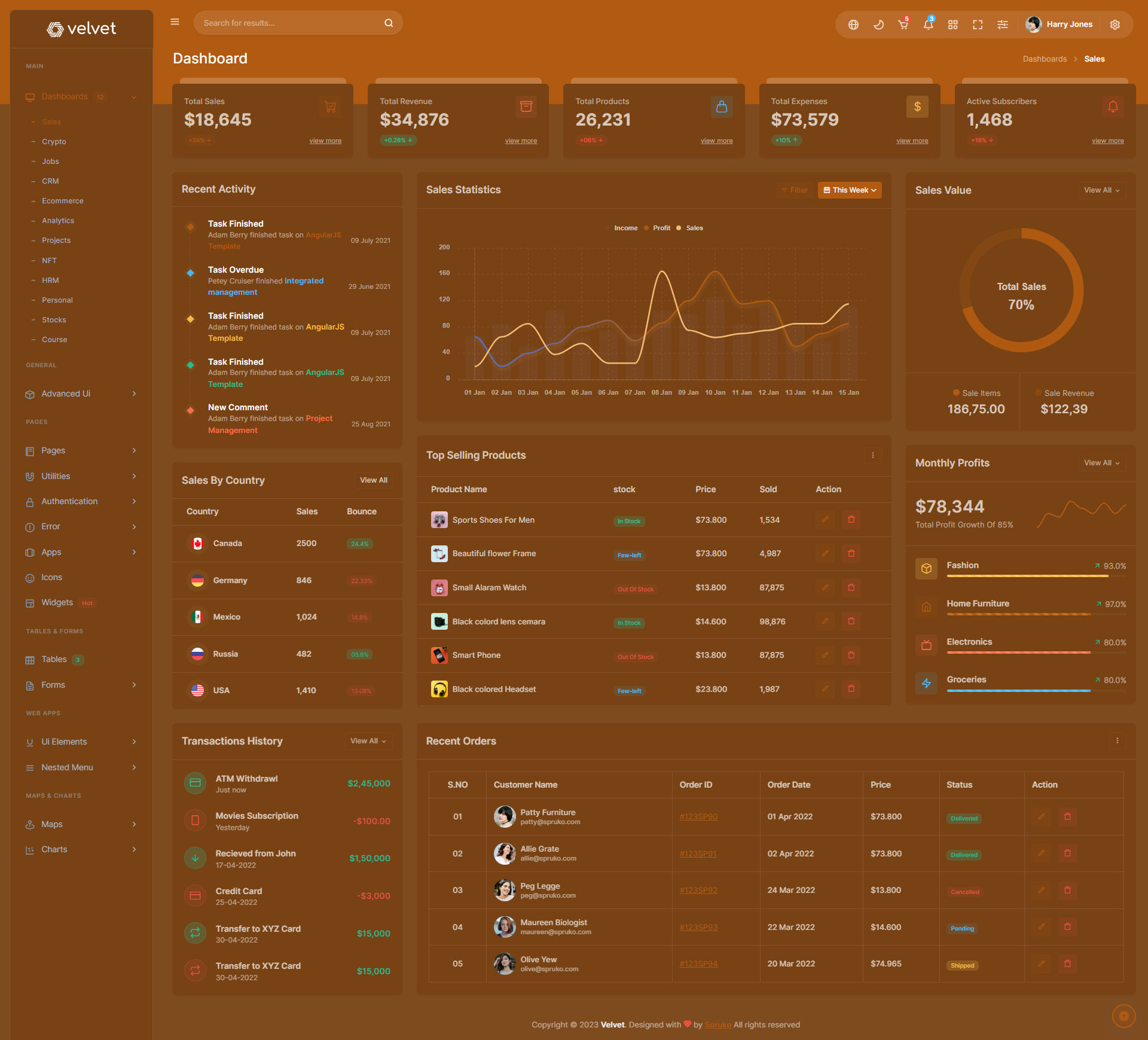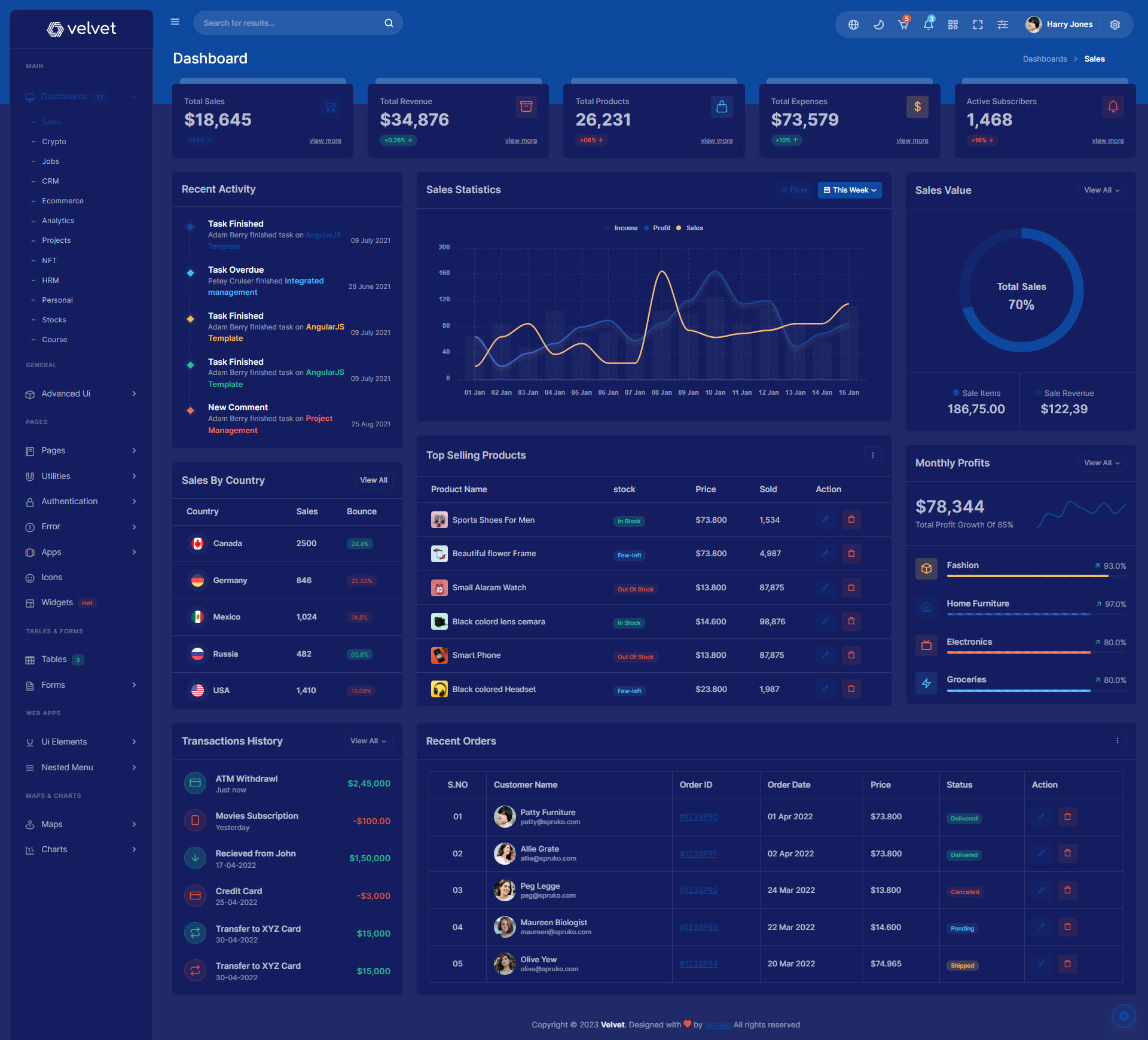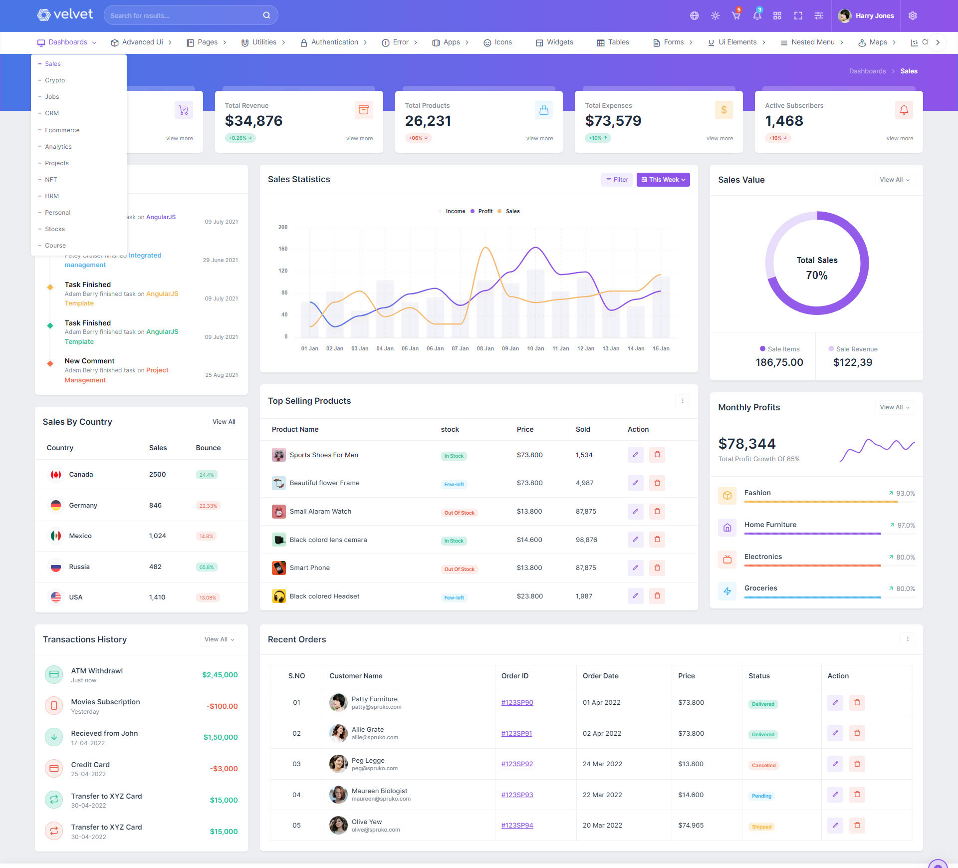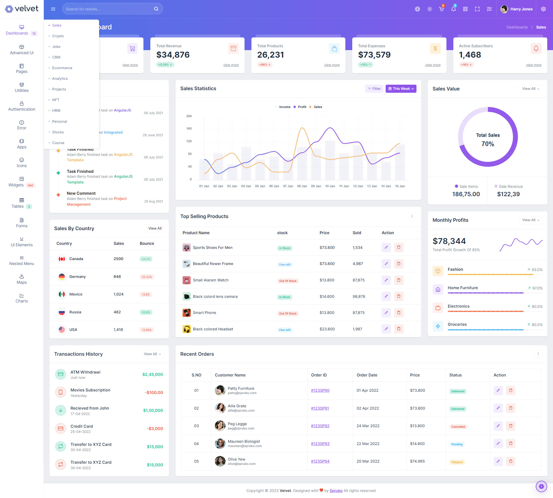 Velvet Admin Template Main Features