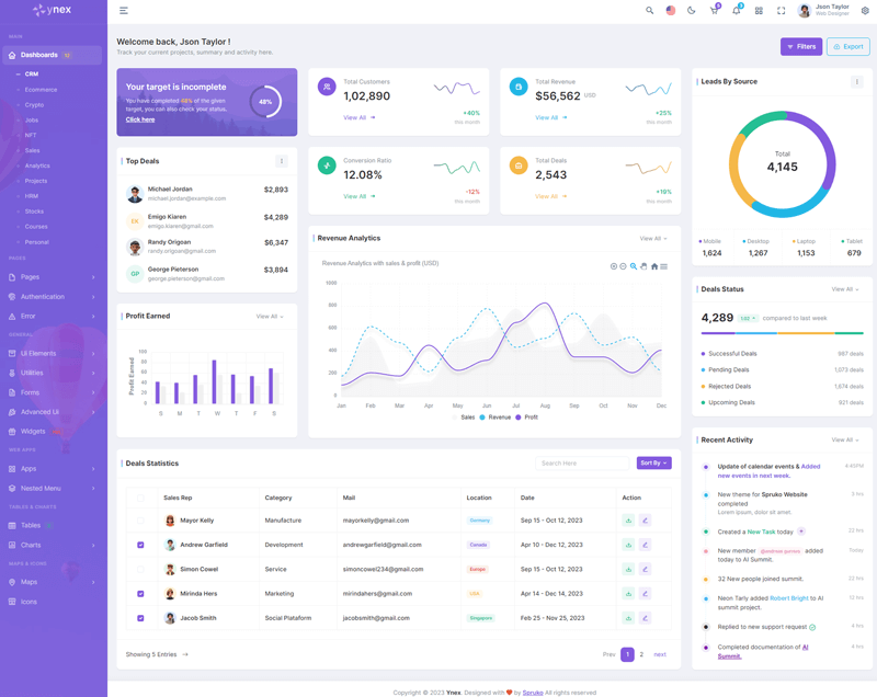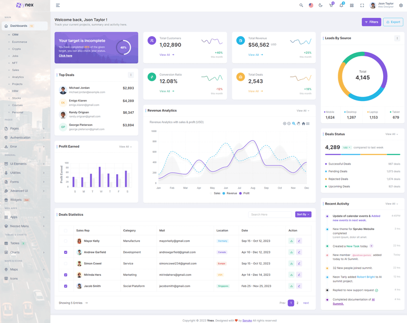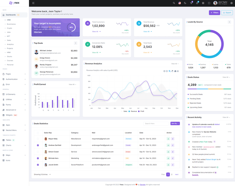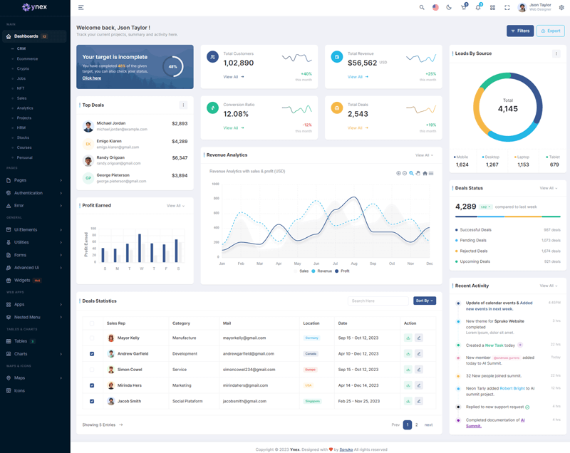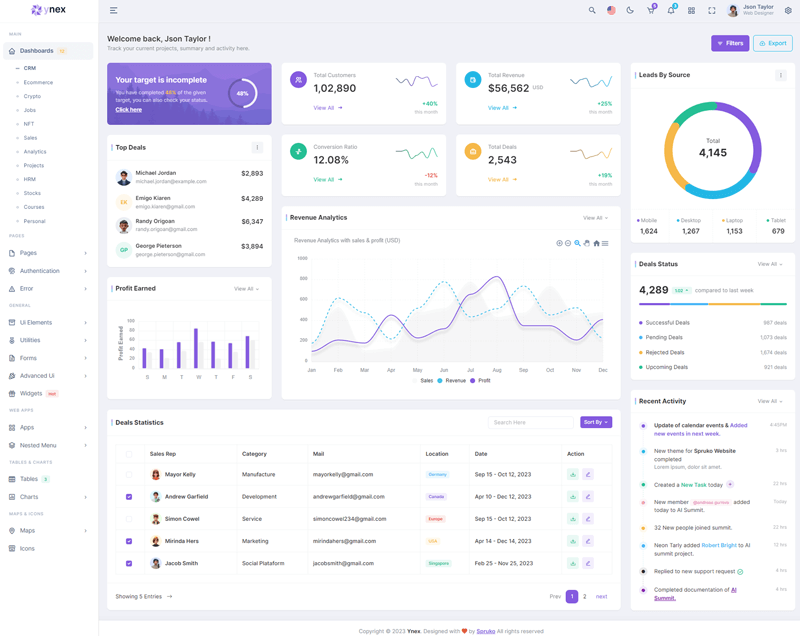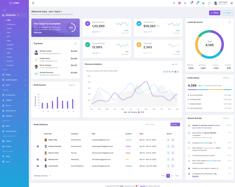 The Ynex React Javascript Dashboard Template comes with a wealth of ready-to-use features, saving developers significant time with its array of pre-built functionalities.