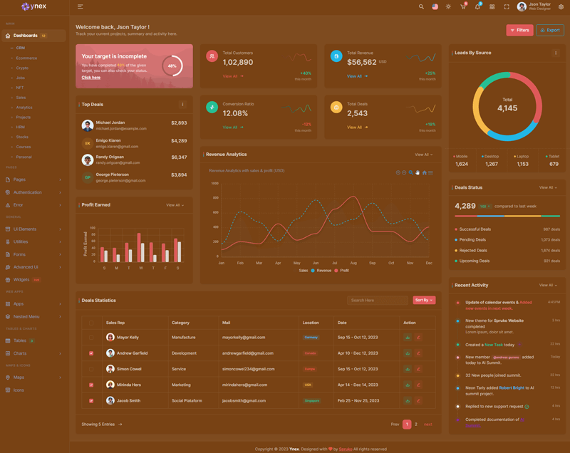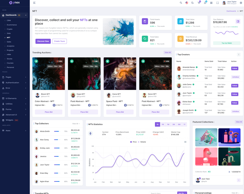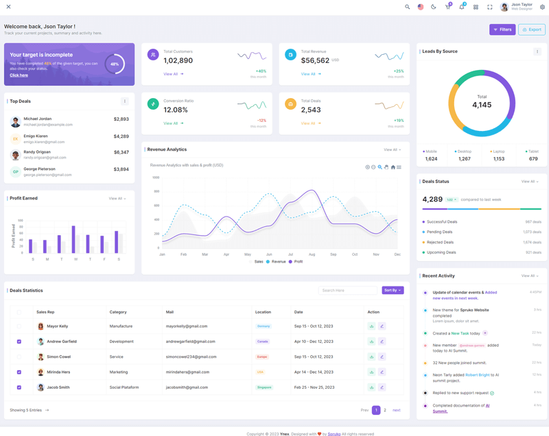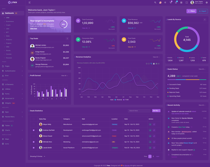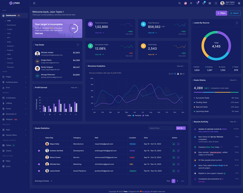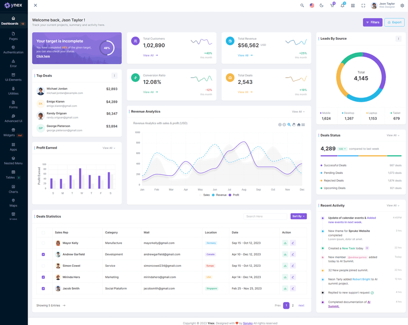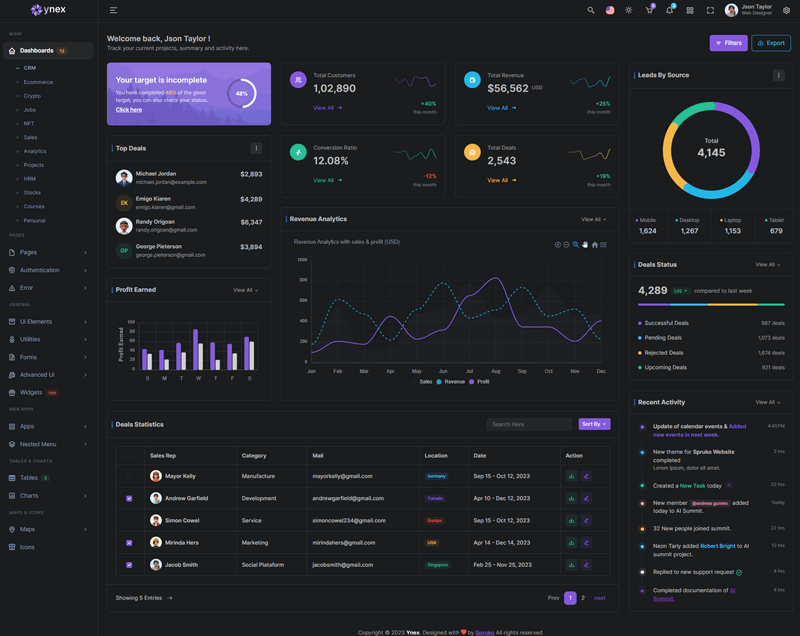 The Ynex React Javascript Dashboard Template comes with a wealth of ready-to-use features, saving developers significant time with its array of pre-built functionalities.
