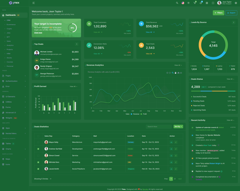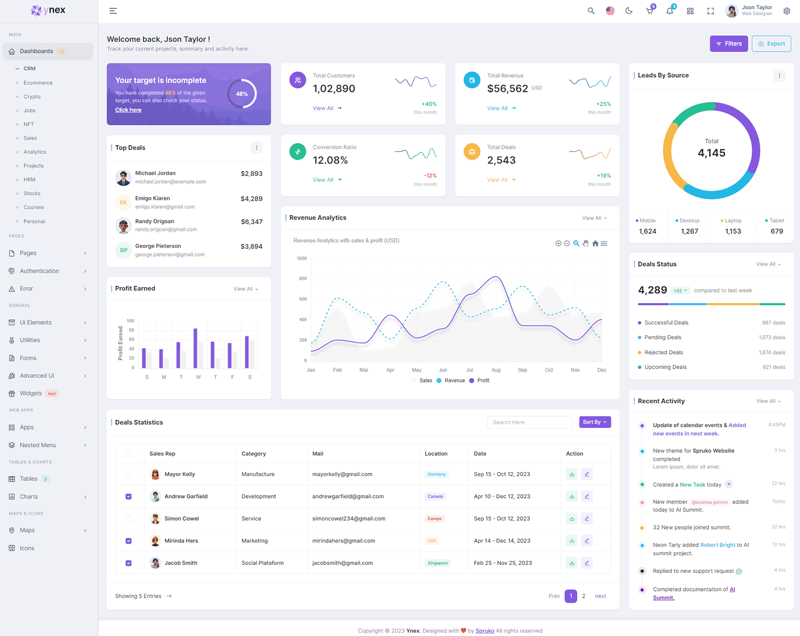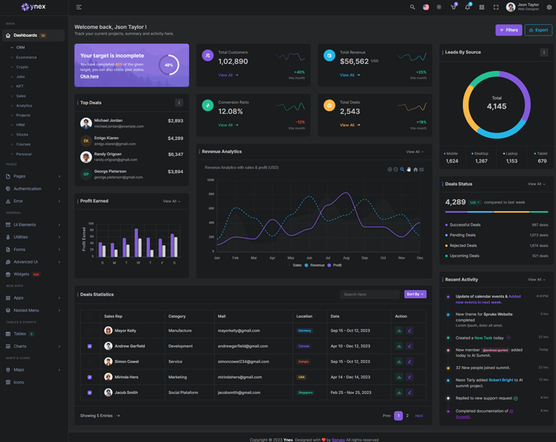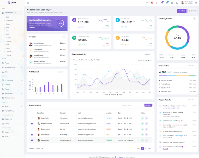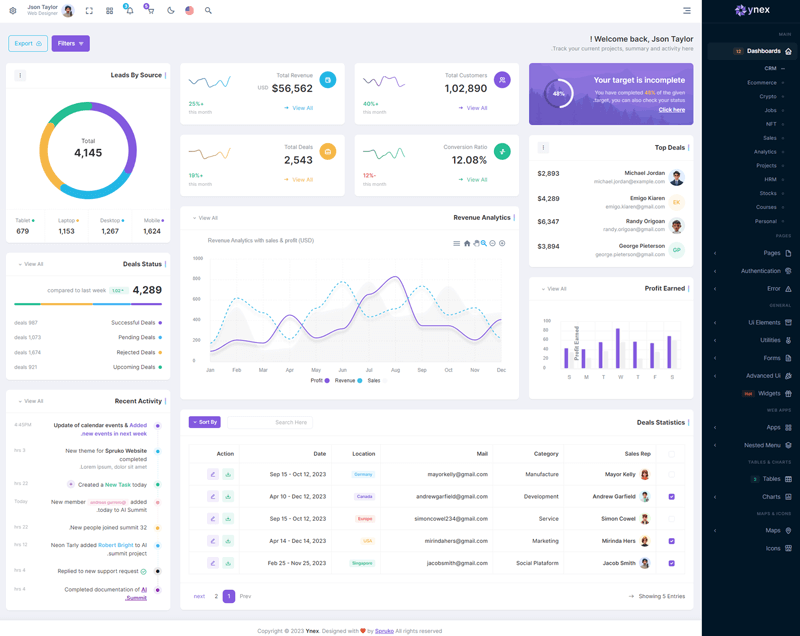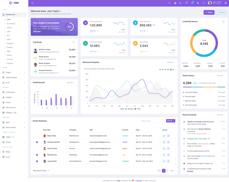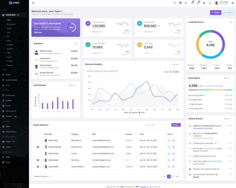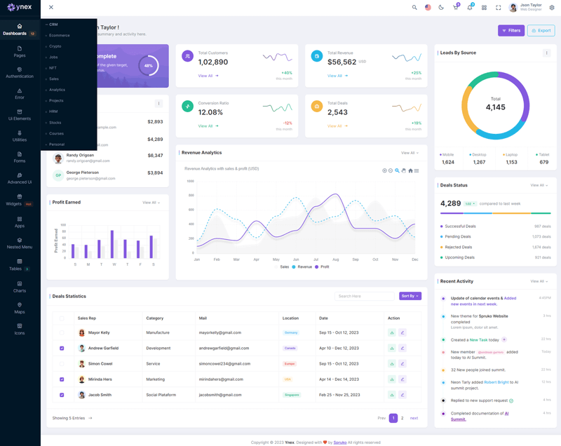 The Ynex React Javascript Admin Dashboard Template comes with a wealth of ready-to-use features, saving developers significant time with its array of pre-built functionalities.