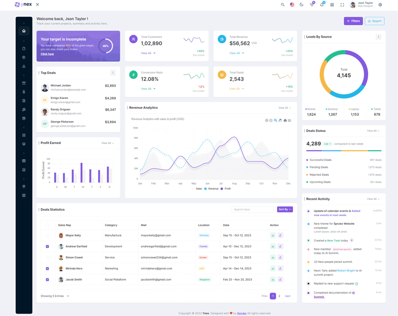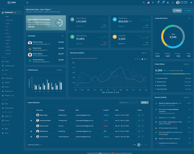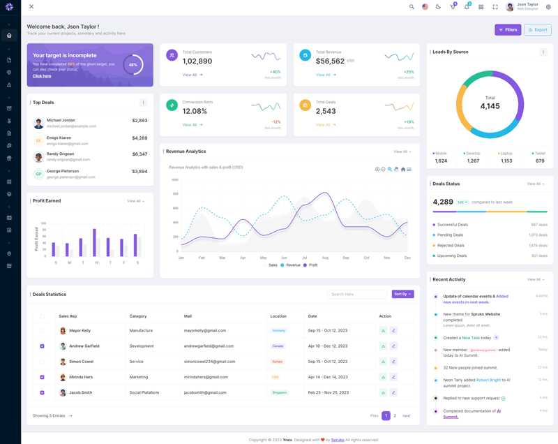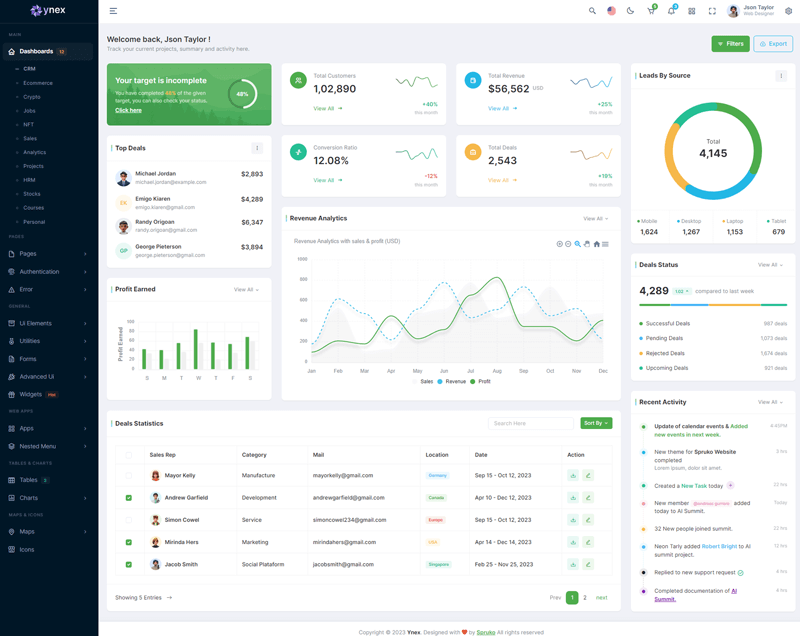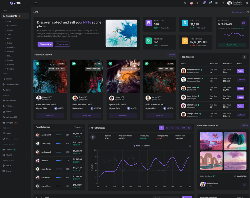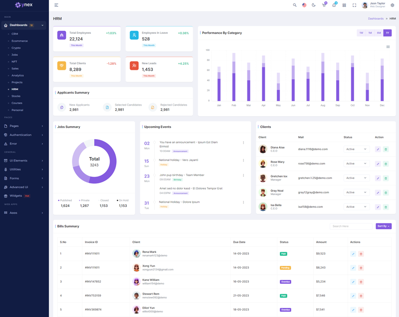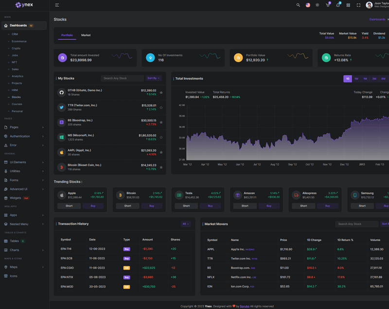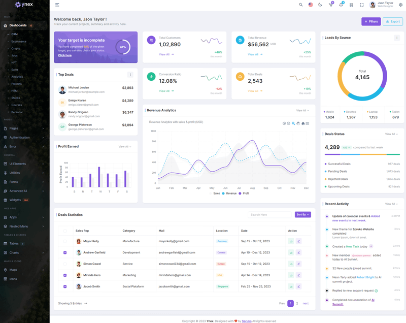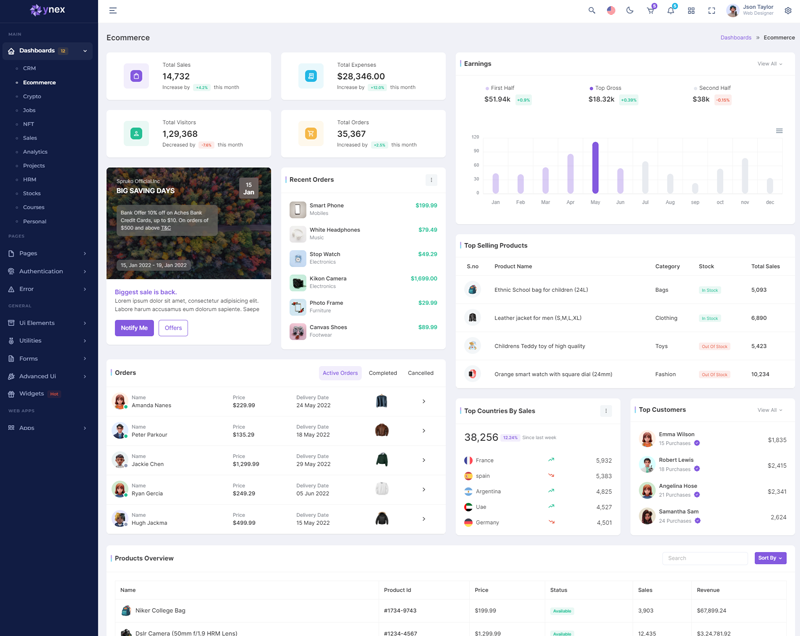 Here, Ynex 12 beautiful dashboards and comes with different types of themes. So that users can choose their best theme and customize the Ynex - Premium Bootstrap Admin Template according to their choice.