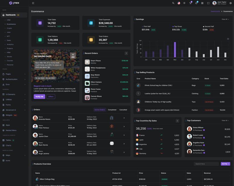 Here, Ynex 12 beautiful dashboards and comes with different types of themes. So that users can choose their best theme and customize the Ynex React Typescript Admin Template according to their choice.
