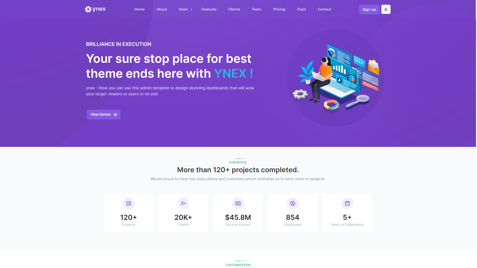 Have a look at the numerous versions we integrated in Ynex React Typescript admin and dashboard template,where you can customize theme in unlimited ways.