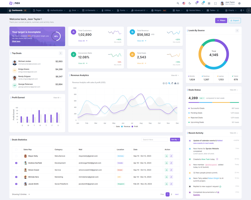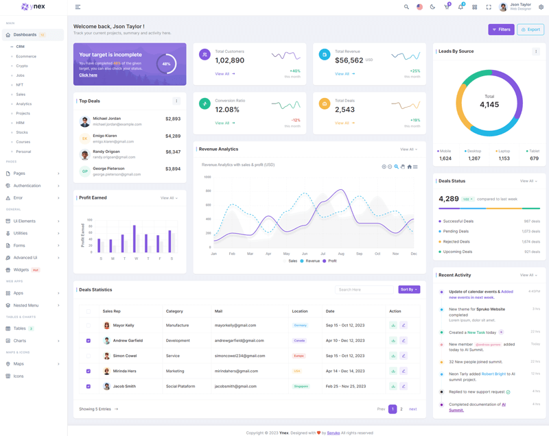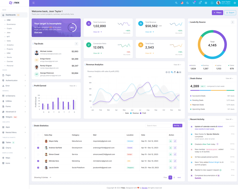 The Ynex React Type Admin Dashboard Template comes with a wealth of ready-to-use features, saving developers significant time with its array of pre-built functionalities.